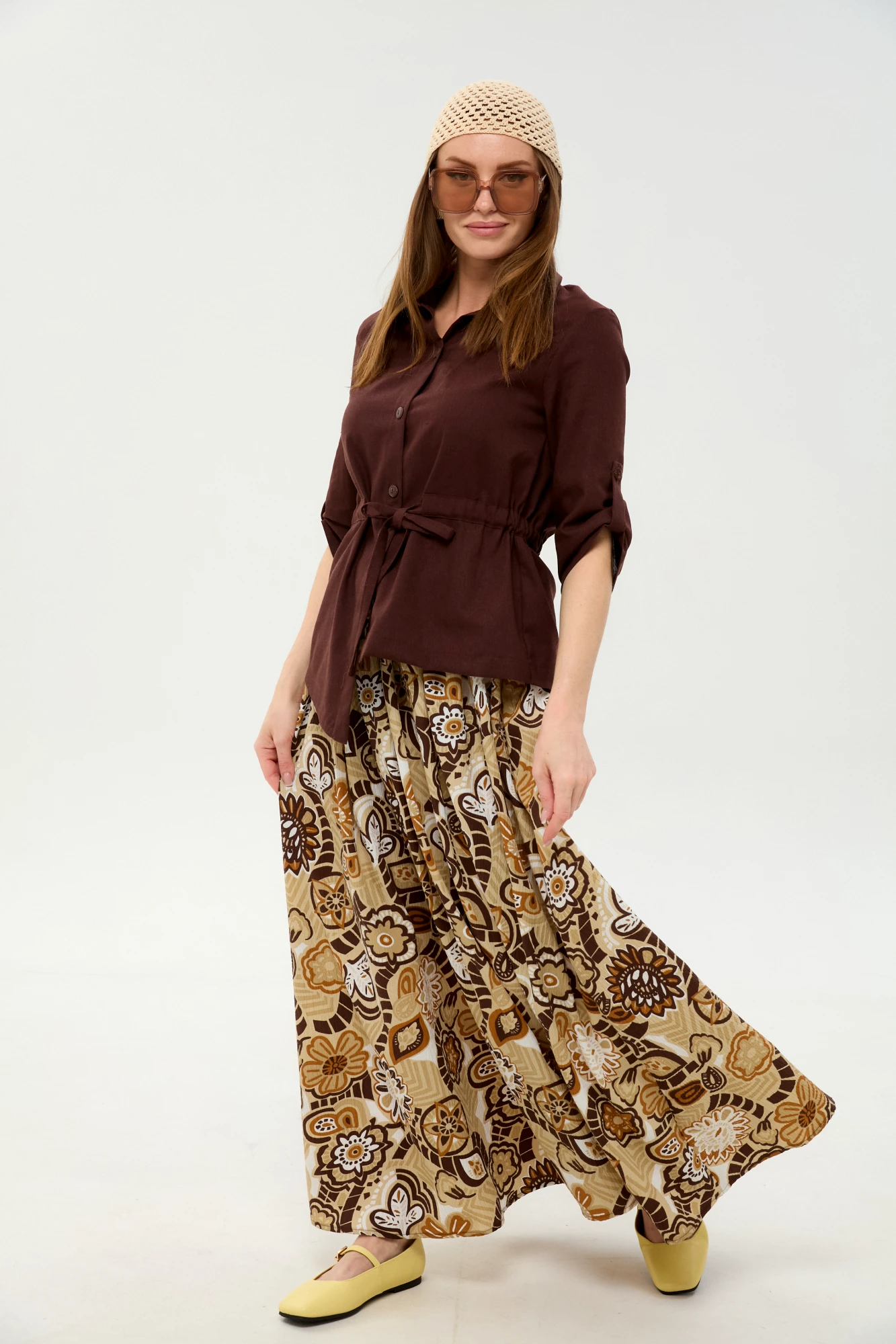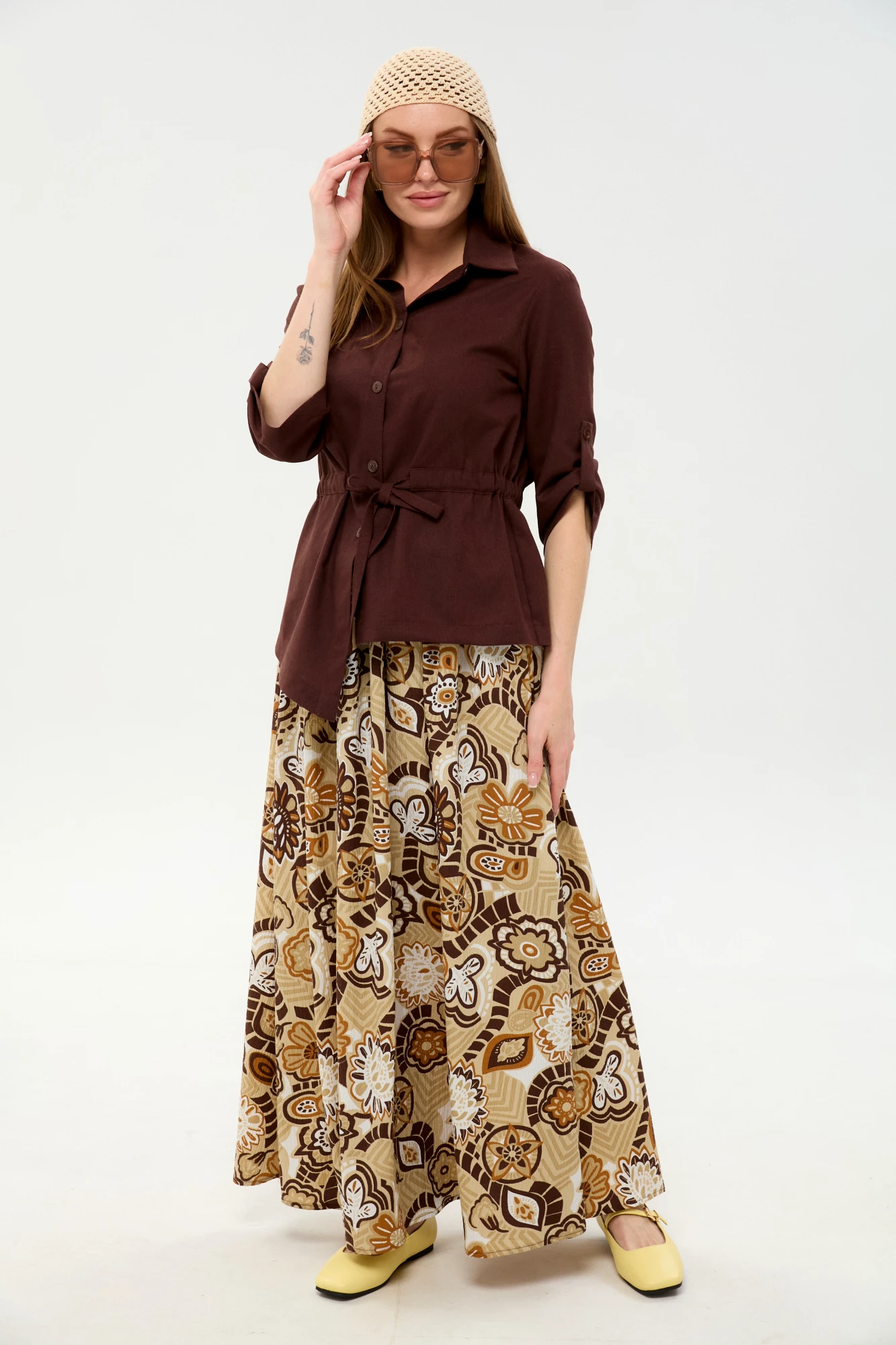 Юбочный костюм NikVa н917 двойка -11 шоколадный мультиколор