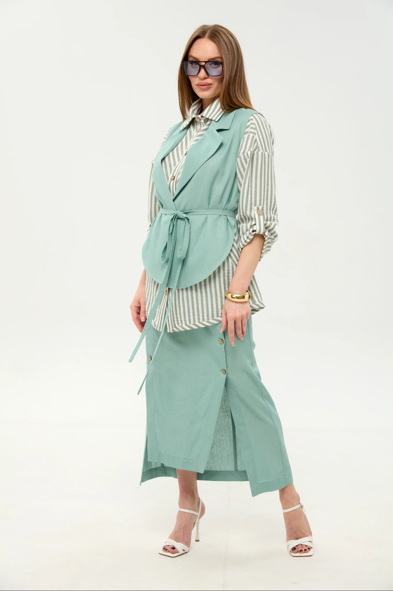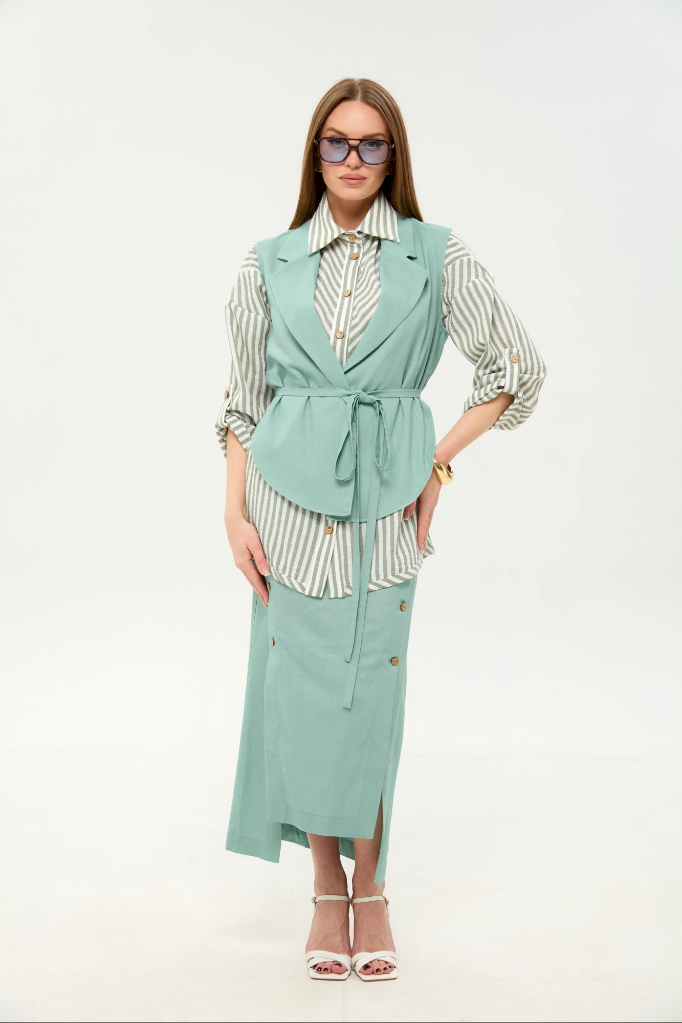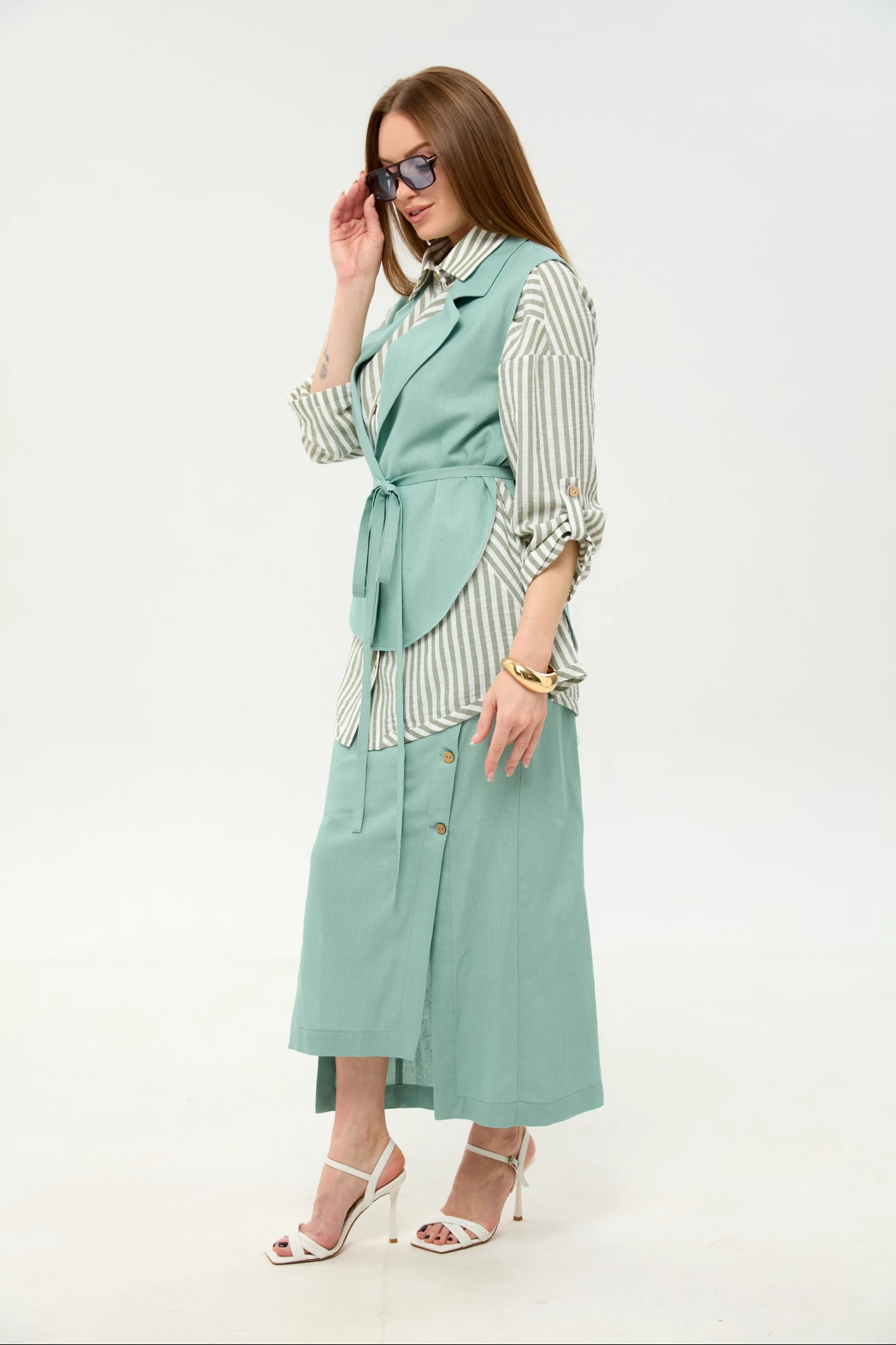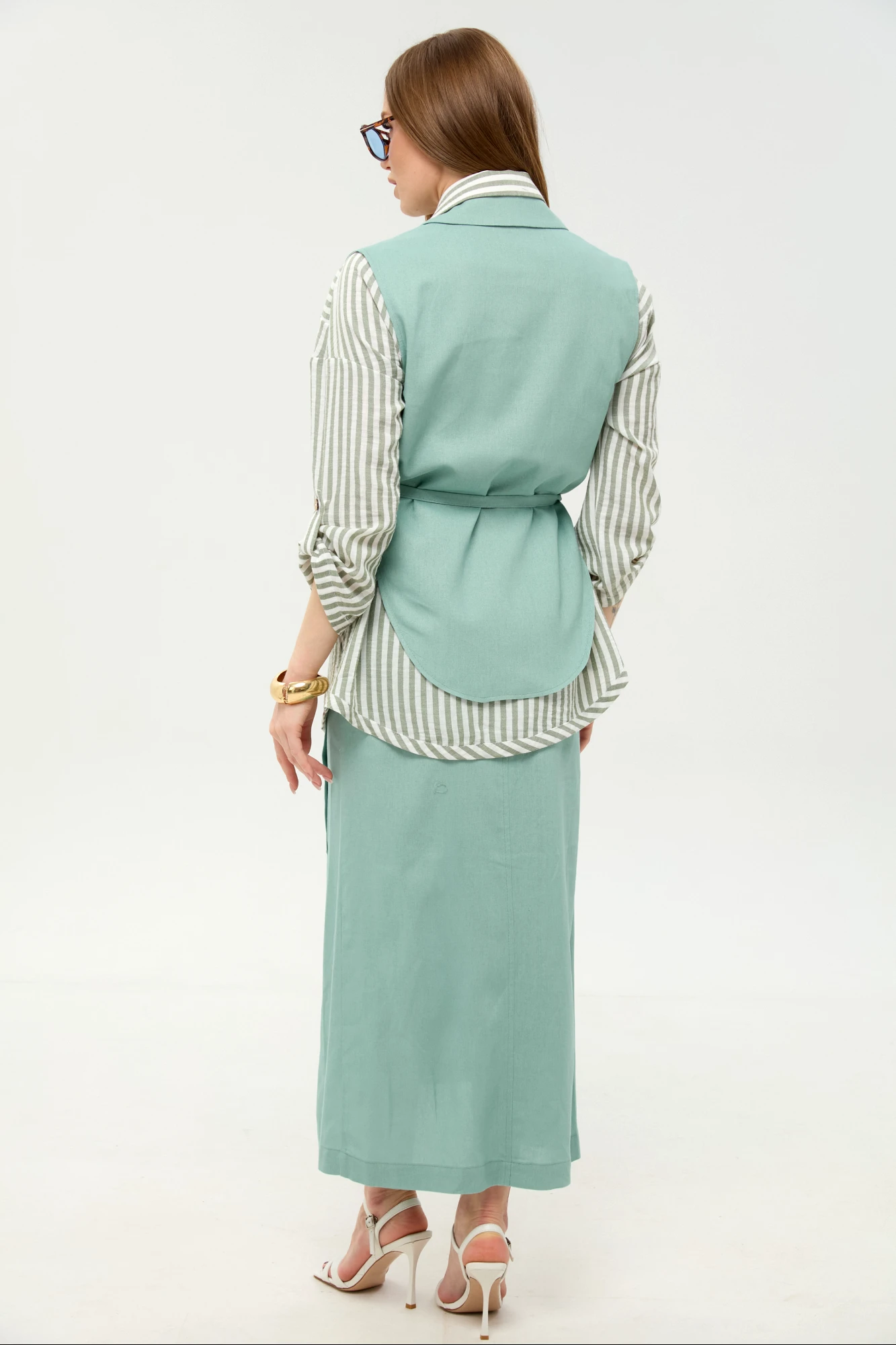 Рубашка -100% хлопок. Жилет и юбка - 28% лён, 49% вискоза, 23% хлопок
