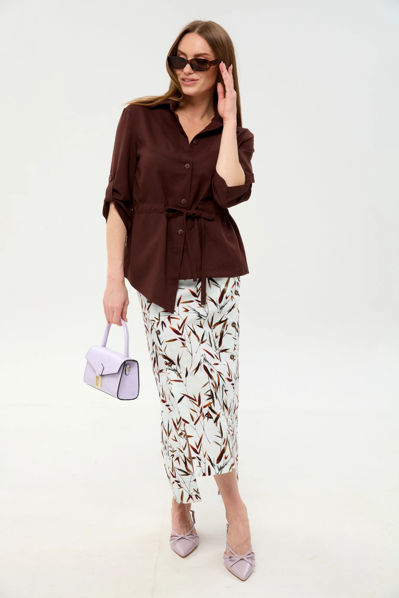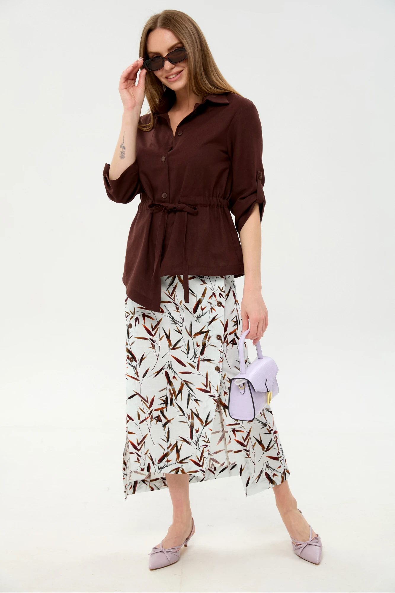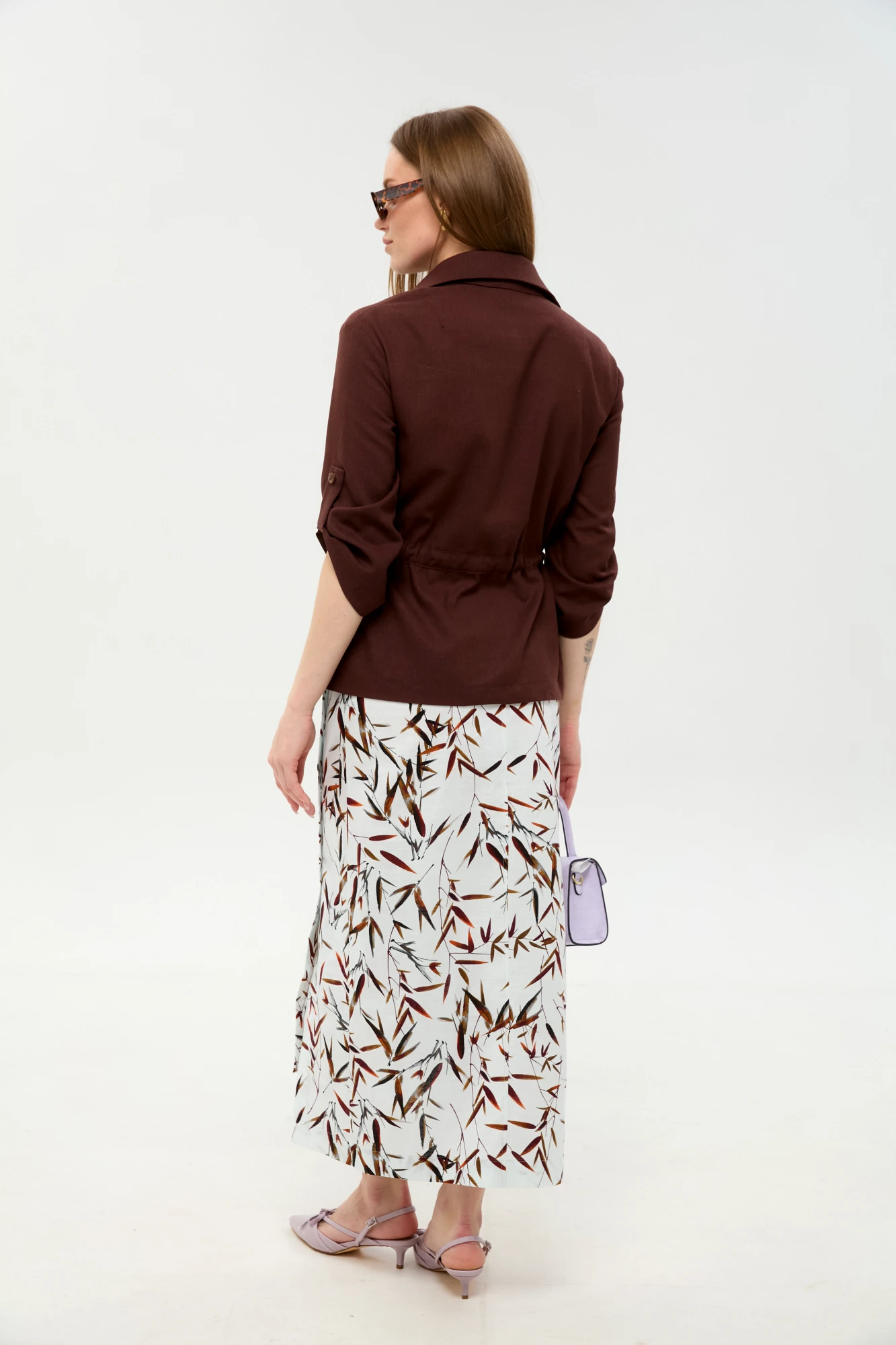 Юбочный костюм NikVa н980 двойка -6 шоколадный, листья