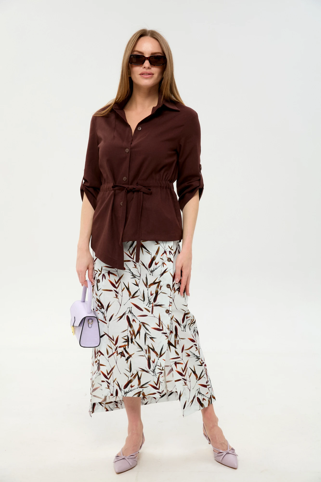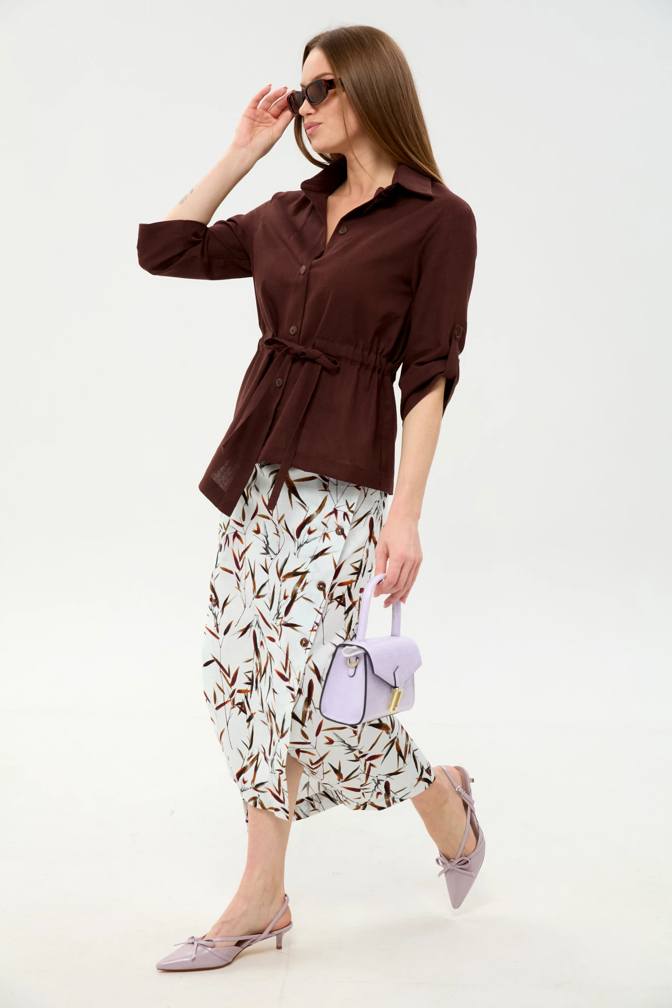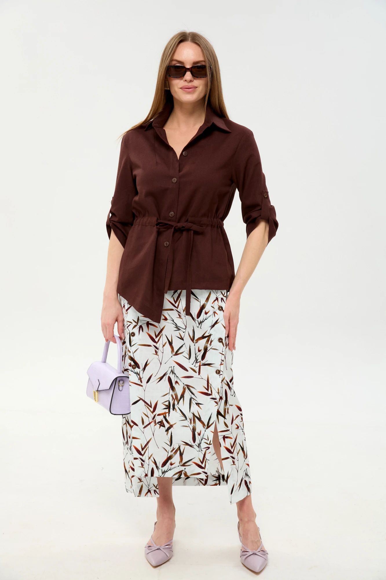 Юбочный костюм NikVa н980 двойка -6 шоколадный, листья
