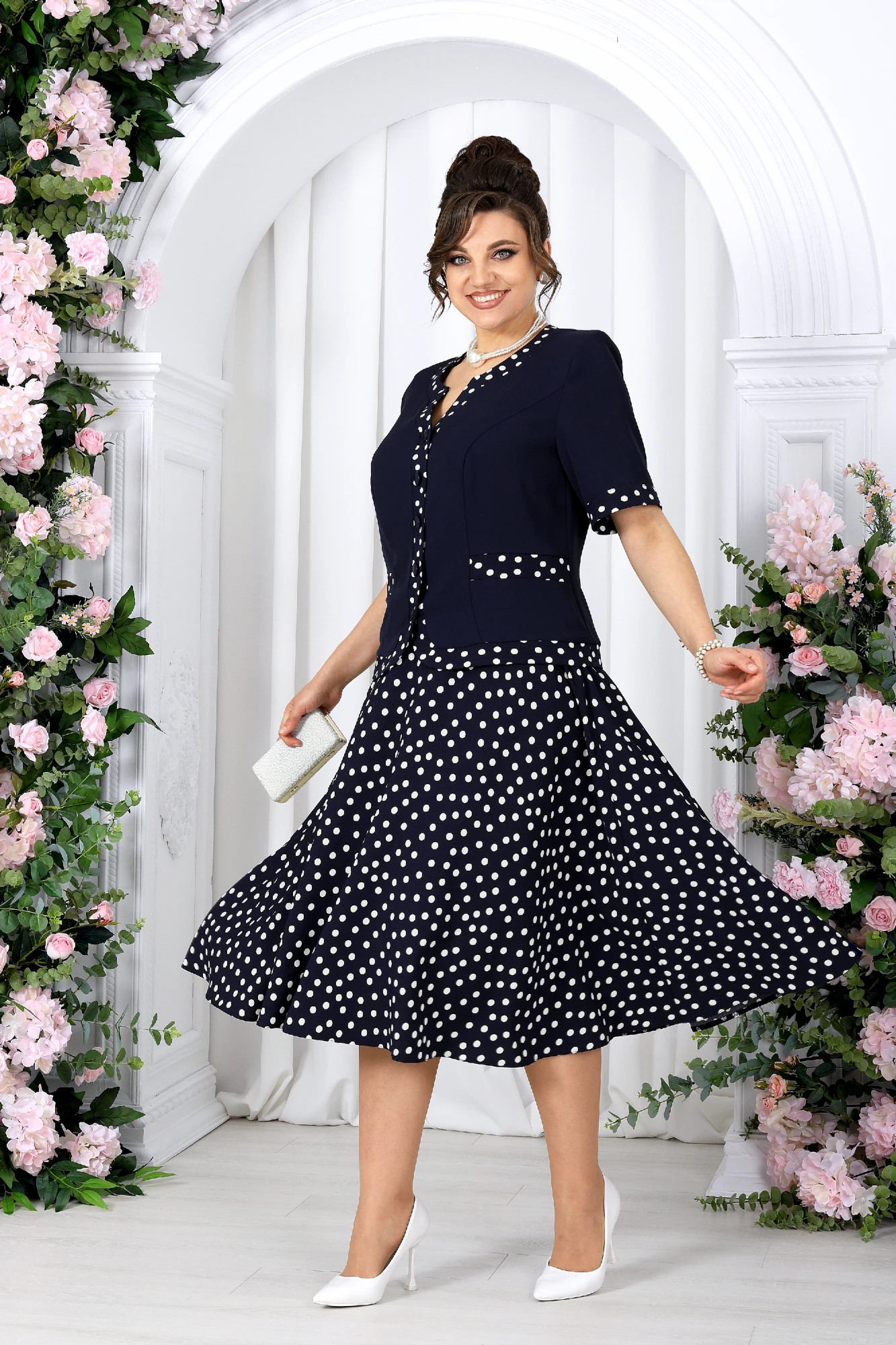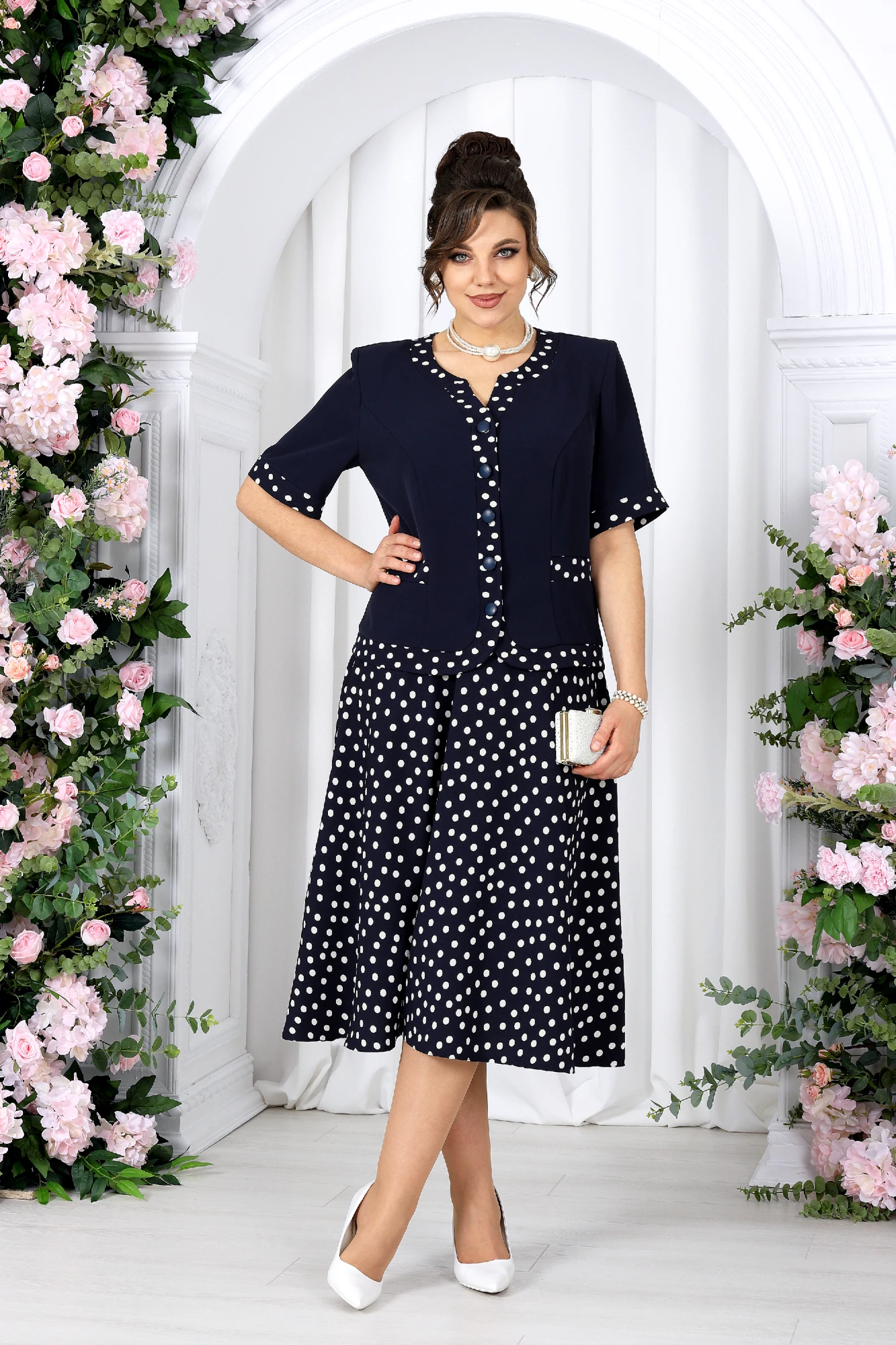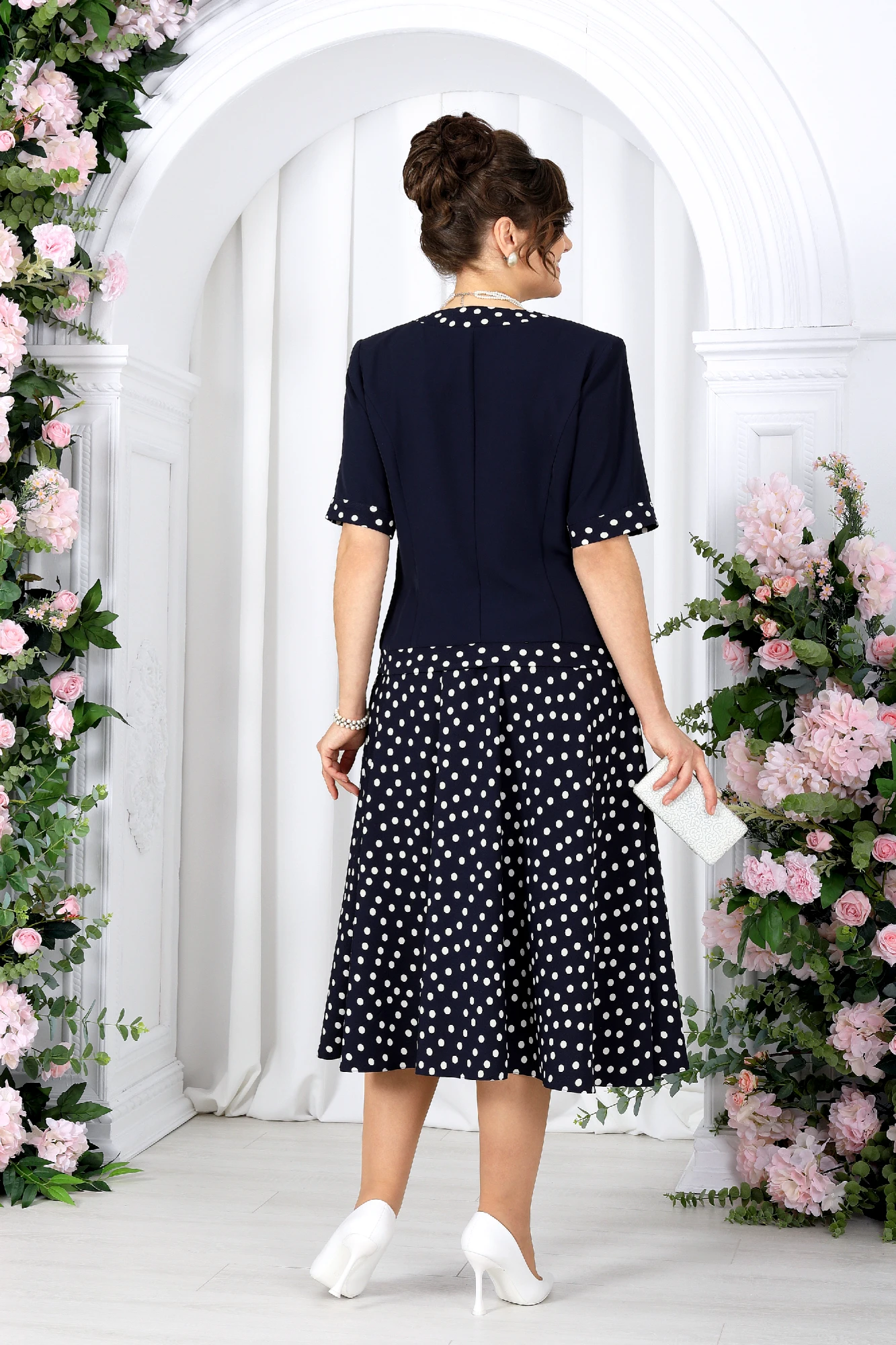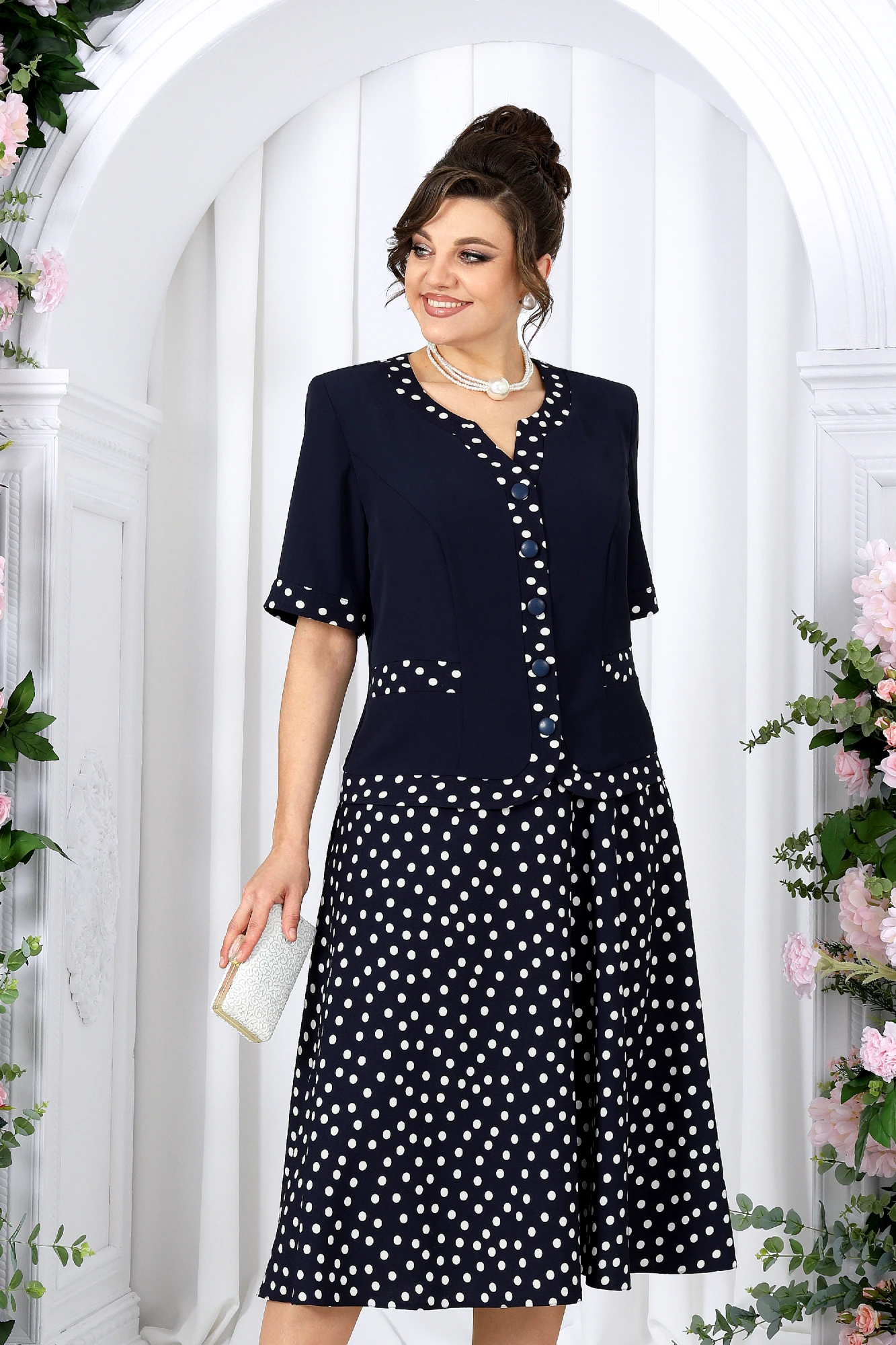 Юбочный костюм NINELE 5992 двойка синий, горох