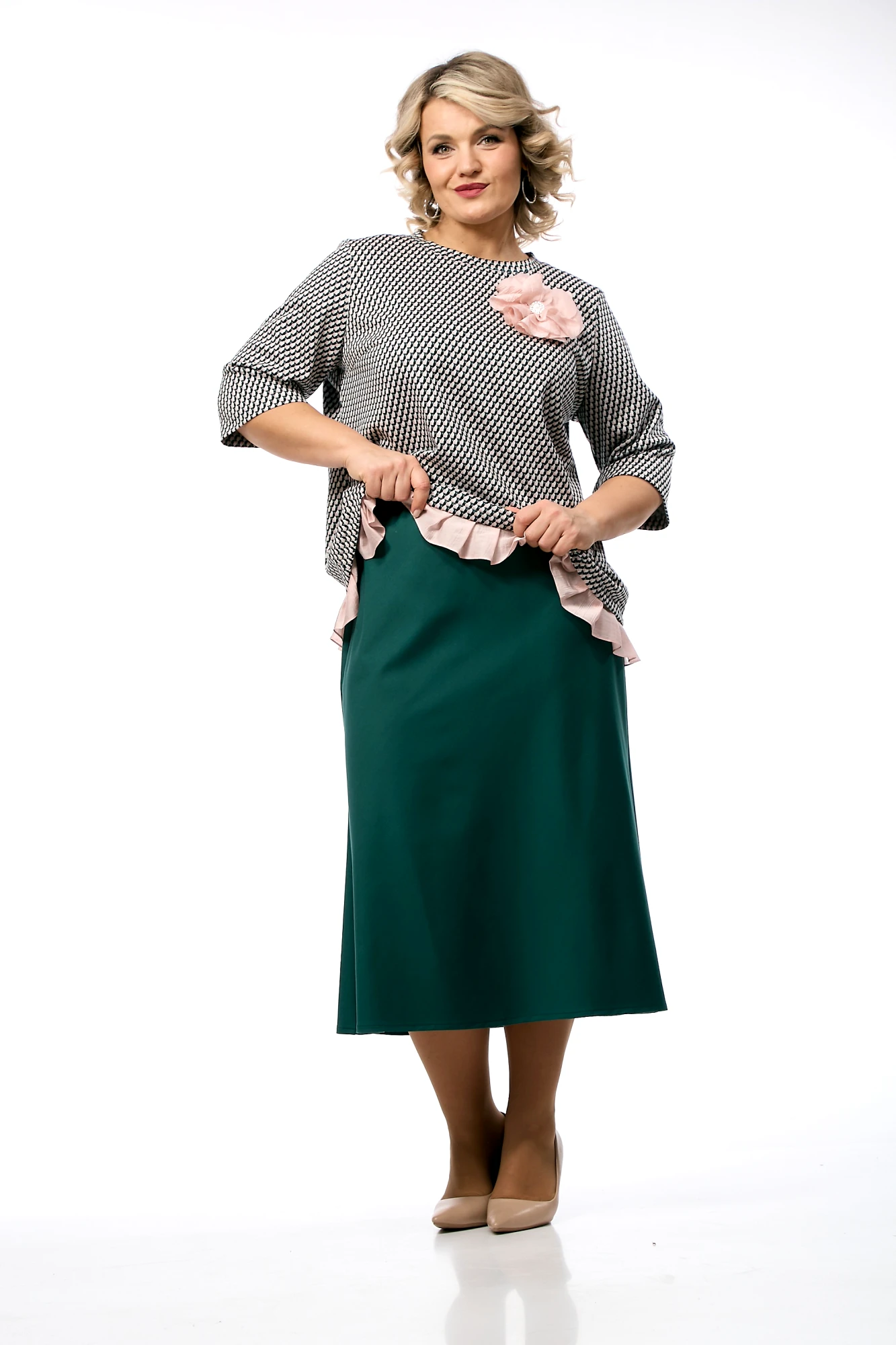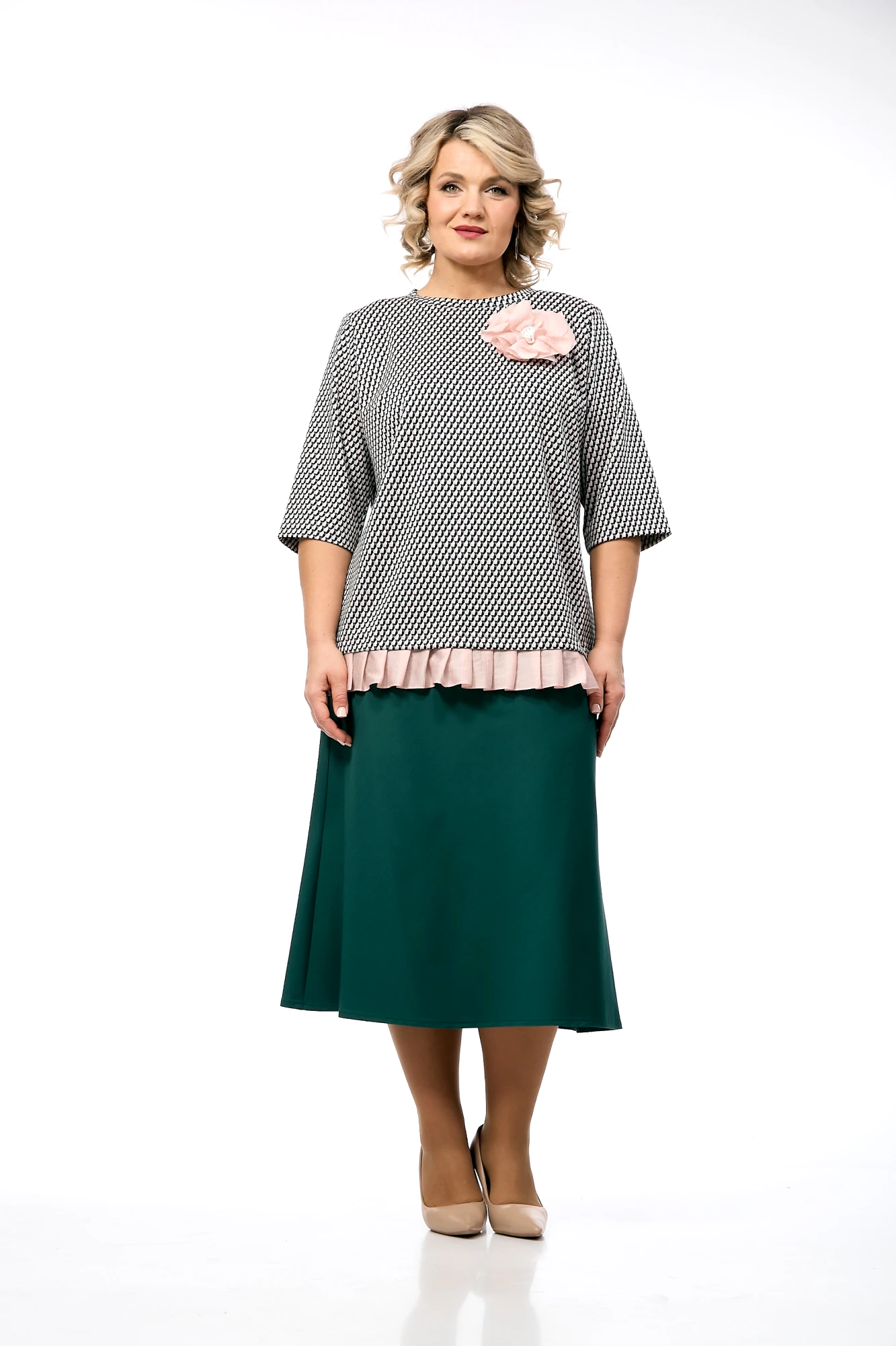 Юбочный костюм OVERYOU 236 мультиколор, изумруд