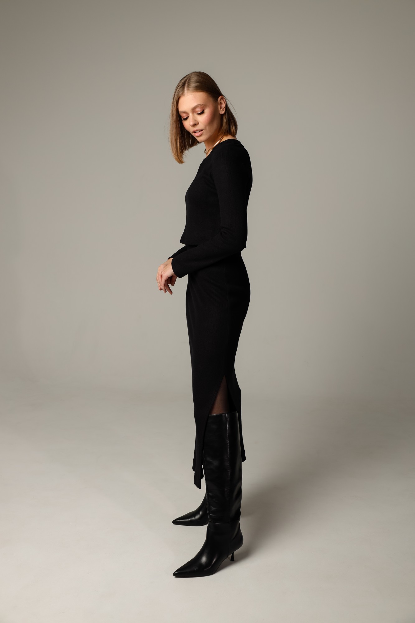 Комплект женский 2-х предметный ( джемпер, юбка) из трикотажного полотна. Джемпер с длинным рукавом, прямой. Юбка прямого кроя, пояс на широкой резинке, хорошо тянется, с одного бока неглубокий разрез. Ткань очень приятная на ощупь, теплая.