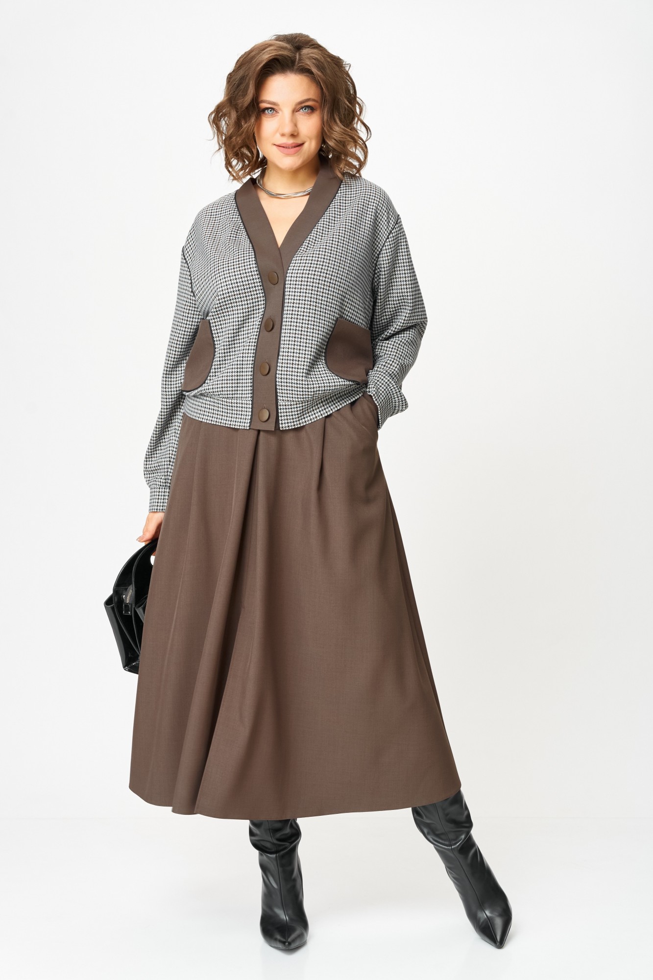 Юбочный костюм Aira Style 24131 -1 двойка шоколадный