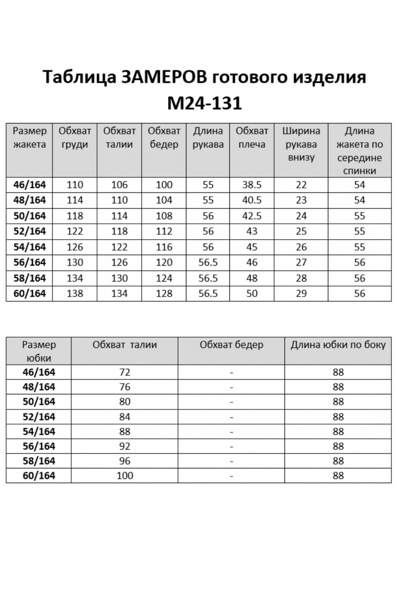 Таблица размеров