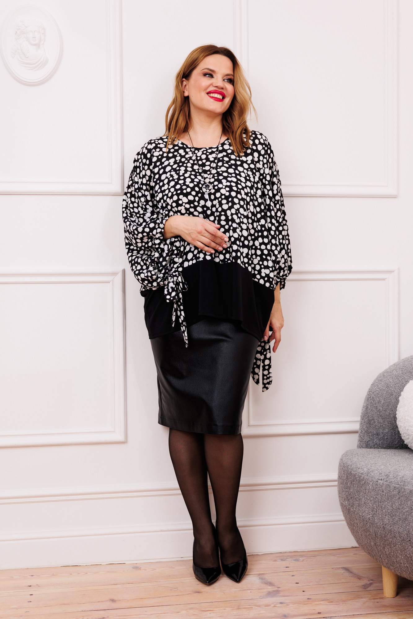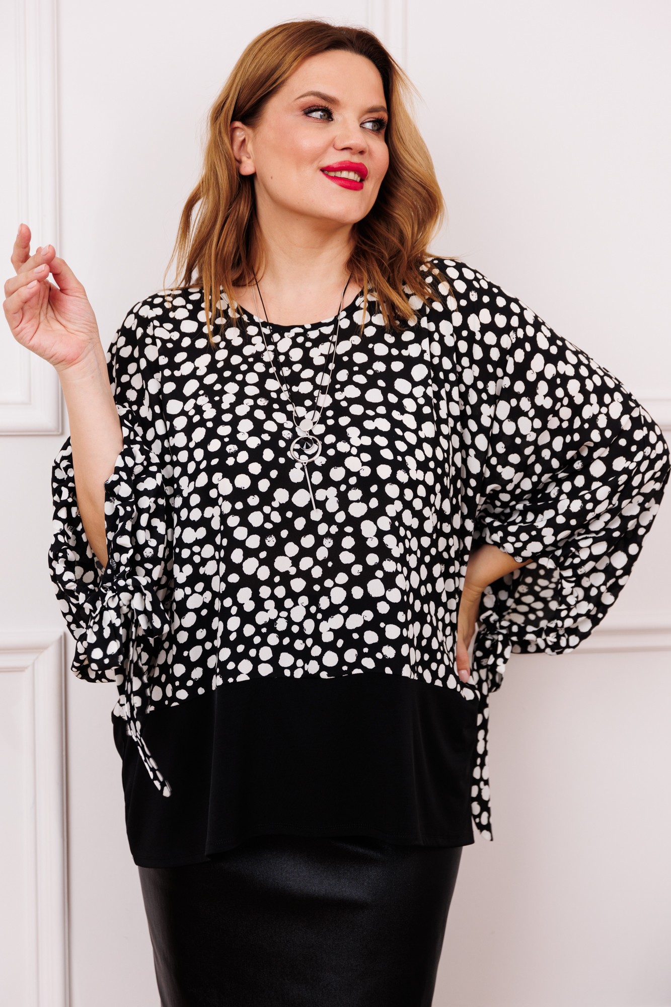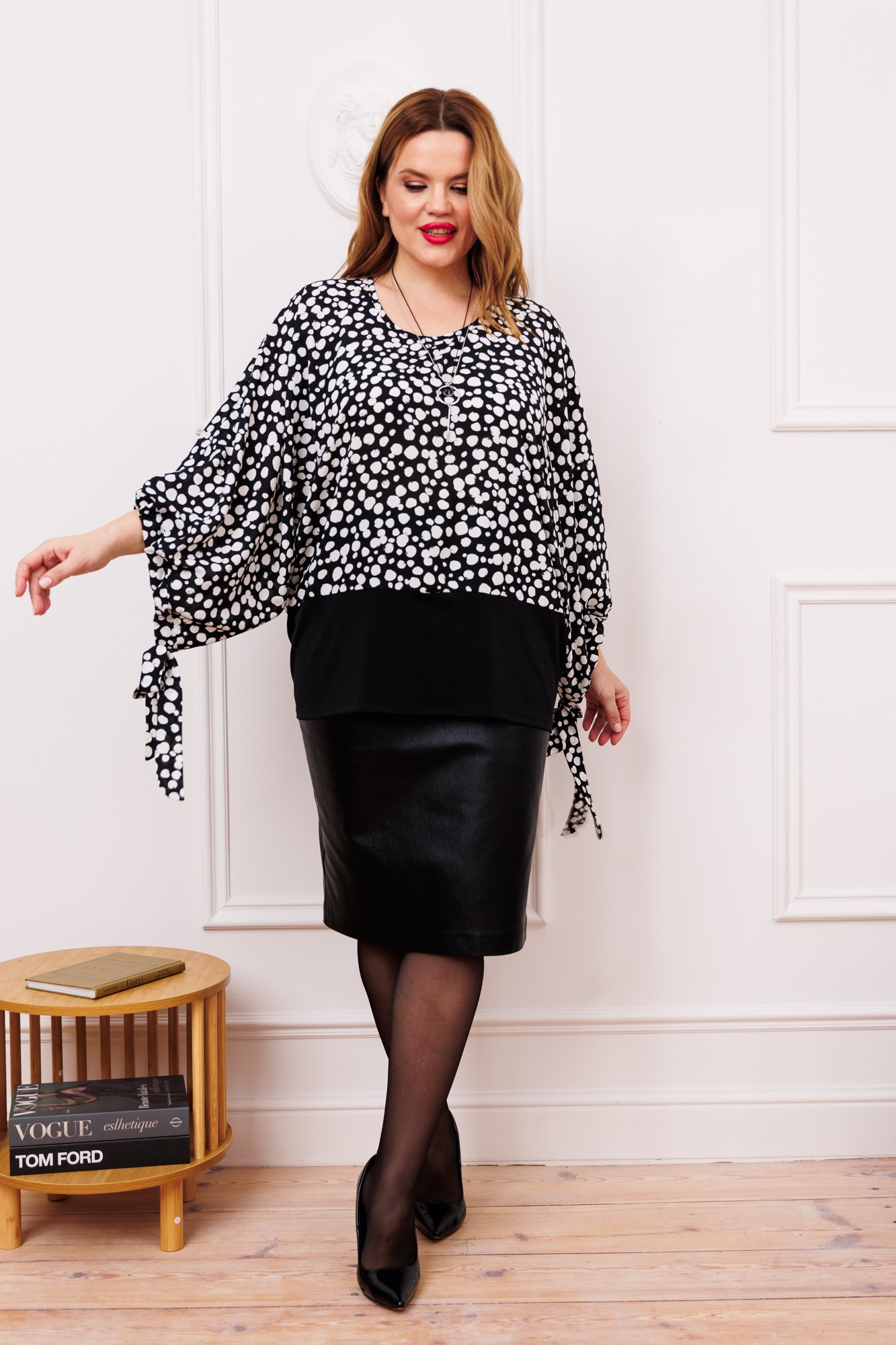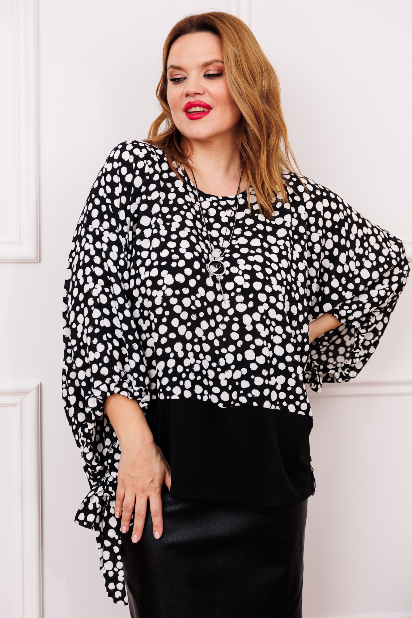 Бренд белорусской женской одежды больших размеров Anastasia представляет чудо- комплект двойку, который подходит для любого типа фигуры (особенно на тип фигуры треугольник). Он станет отличным дополнением к Вашему гардеробу. Подойдет для повседневной носки (работа, офис, прогулки), так и на торжественное мероприятие, корпоратив. Комплкет женский 2-х предметный (блузка и юбка). Блузка, из двух видов ткани: верх блузочная ткань и масло, в виде туники с цельнокроеным рукавом, по низу рукава идет манжет и завязка. По низу блузы пояс-отделка из масла. Юбка женская кожаная из вискозы. Представляет собой идеальный выбор для женщин, предпочитающих комфорт и стиль. Модель карандаша с миди длиной и шлицей по спинке добавляет уникальный акцент вашему образу. Застегивание на молнию обеспечивает легкость и удобство в использовании. Это чудо юбка-корректор идеально подтянет ваш животик, таким образом подчеркнет вашу талию. Для тех, кто ищет одежду для офиса, школы или подходит большим размерам, эта юбка является отличным выбором. Материал юбки дышащий и натуральный, что делает его идеальным для любого времени года. Для высоких и невысоких, юбка подчеркивает вашу элегантность и грацию. Необыкновенная фактура материала обеспечивает универсальность в сочетании с любыми верхними вещами. Комплект может легко трансформироваться в платье , достаточно заправить блузку в юбку. Одежда для женщин больших размеров и не только, по отличным ценам и высокого качества - это Anastasia! ВНИМАНИЕ! при выборе размера, ориентируйтесь на размер юбки.