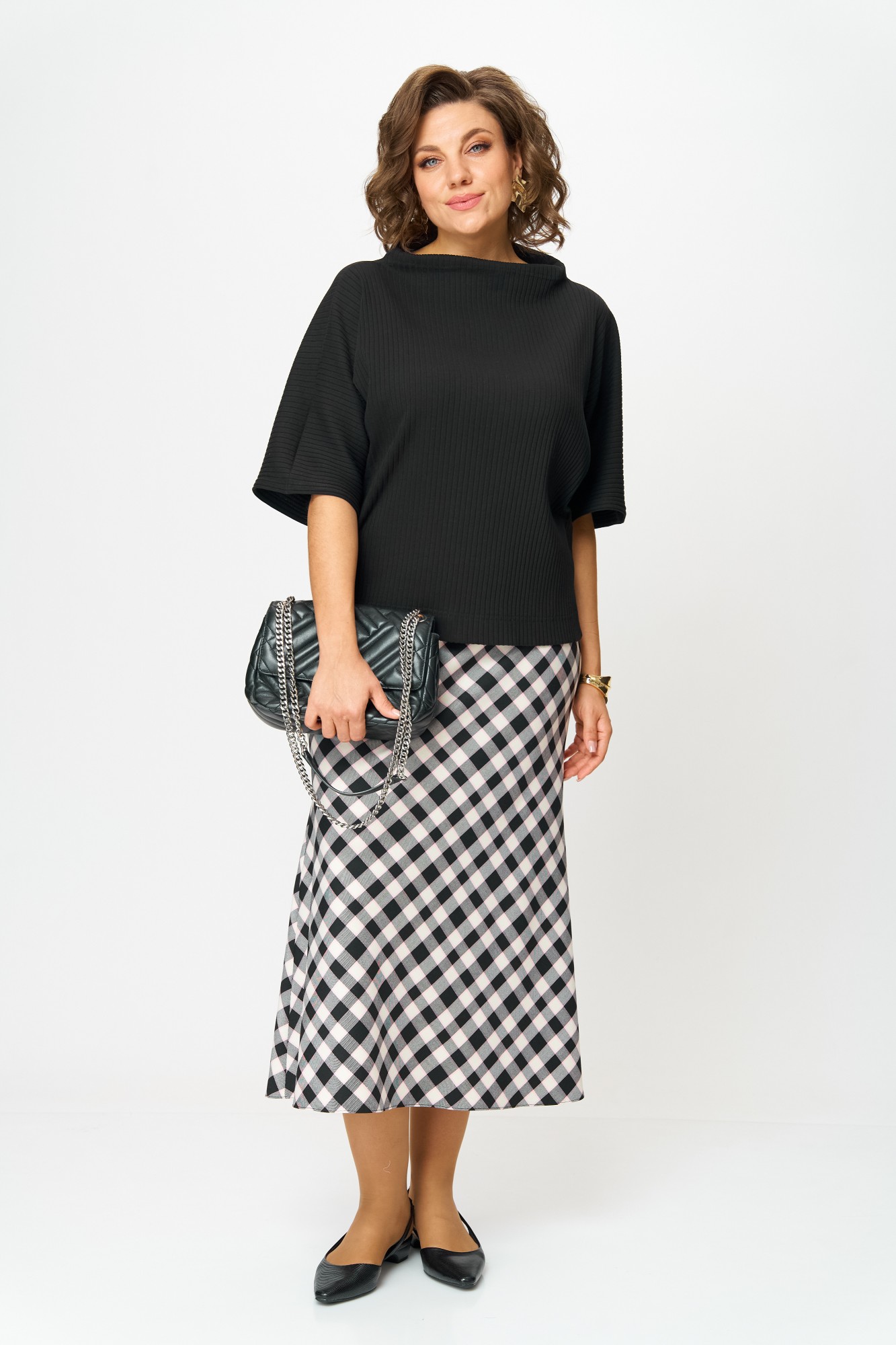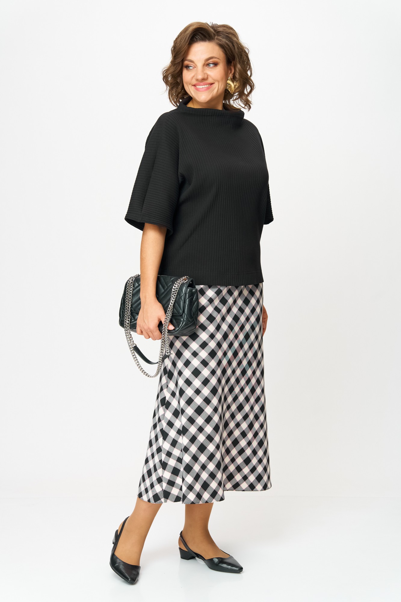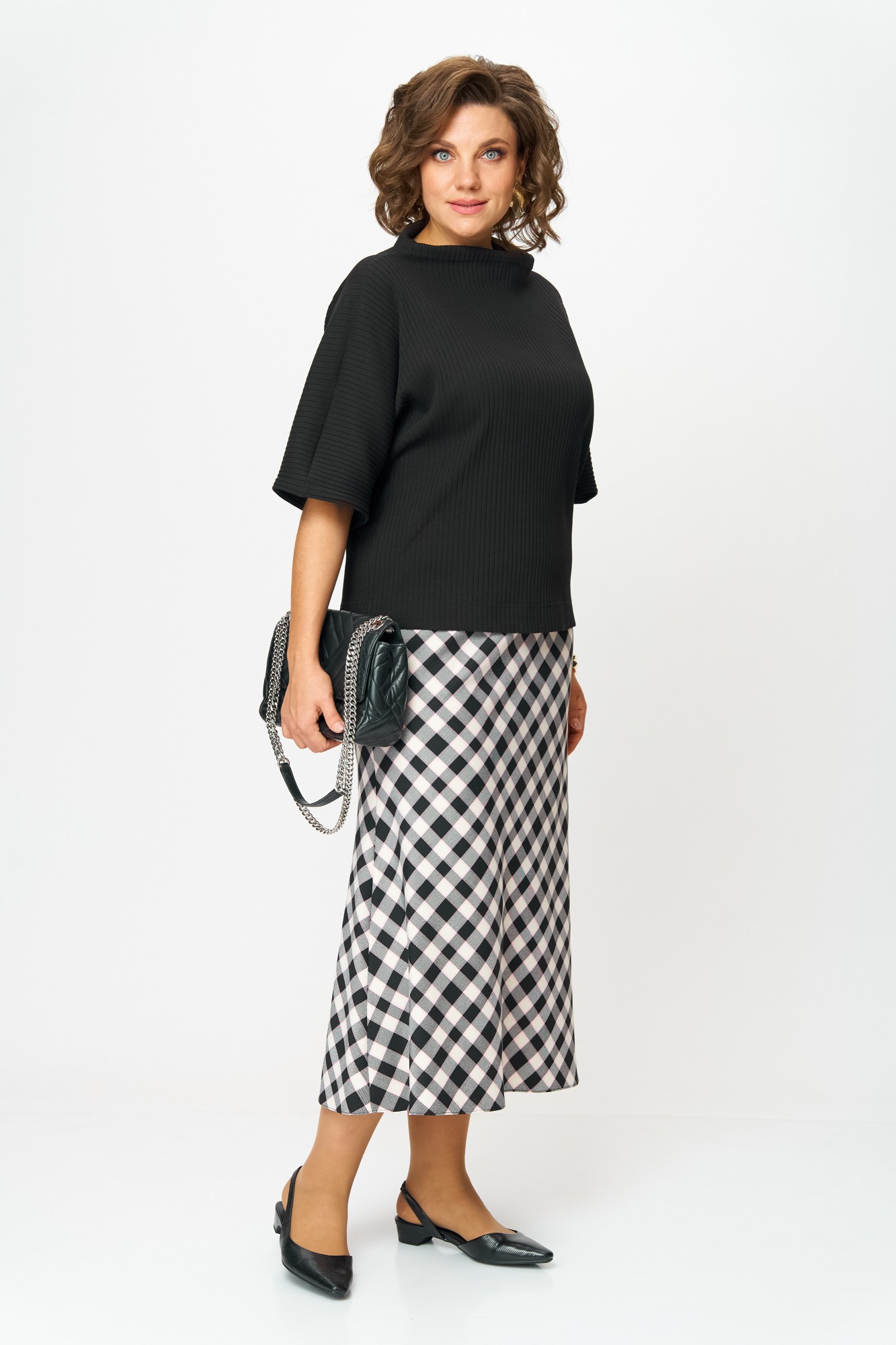 Юбочный костюм Anastasia м-1267 черный, клетка