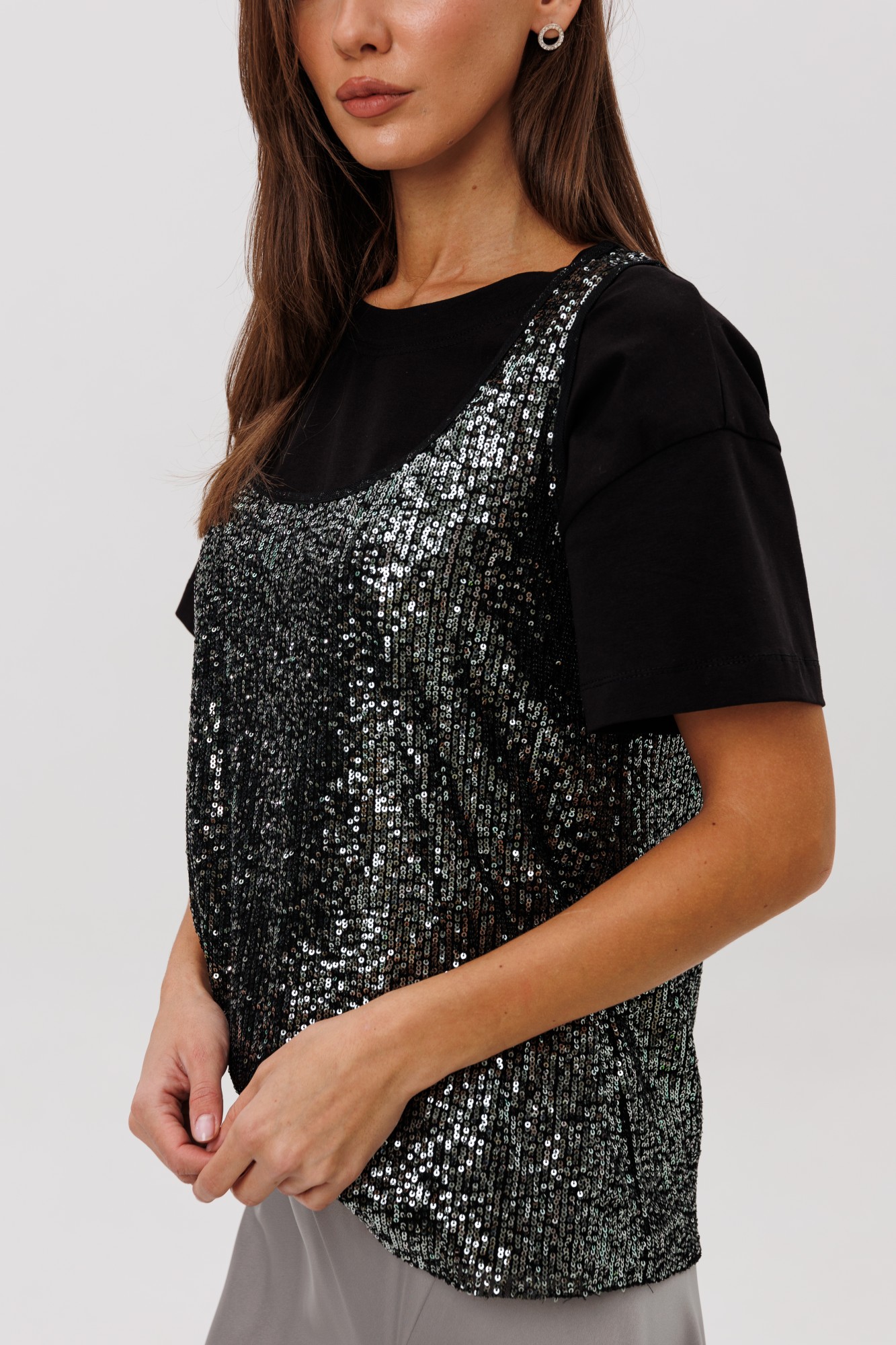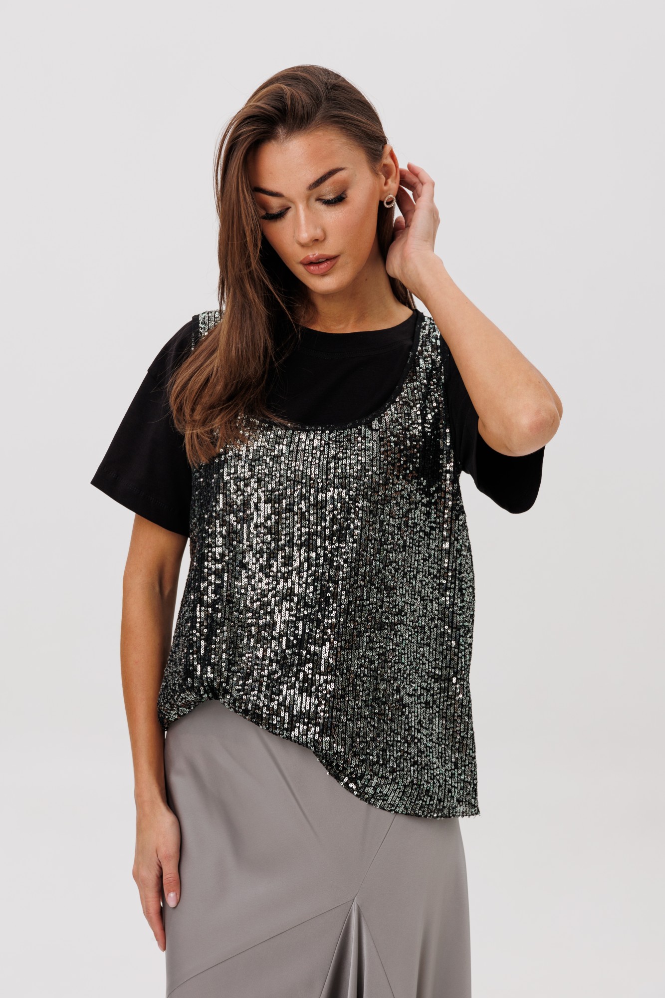 Юбочный костюм Fantazia Mod 5308 тройка черный, серебро