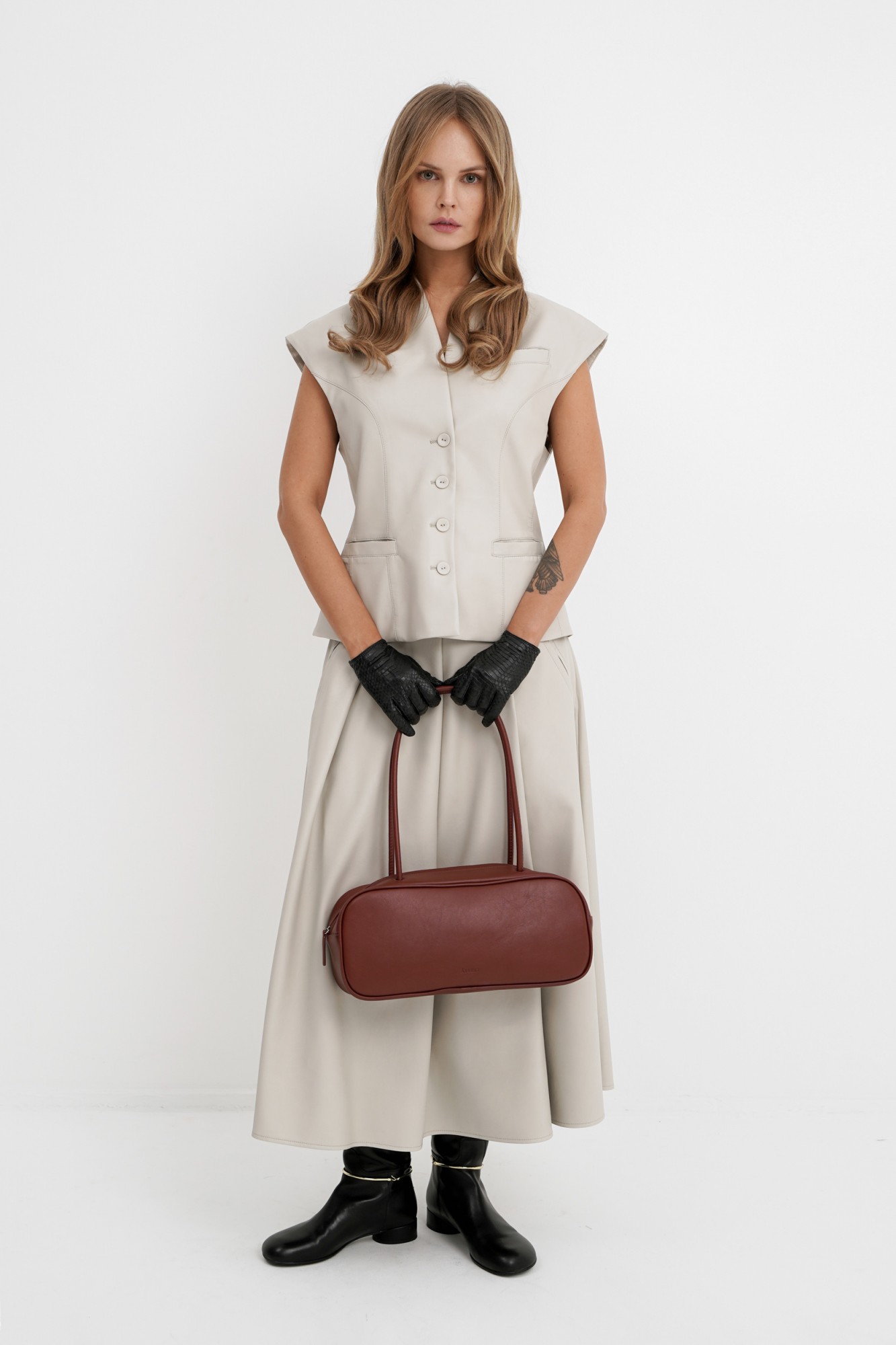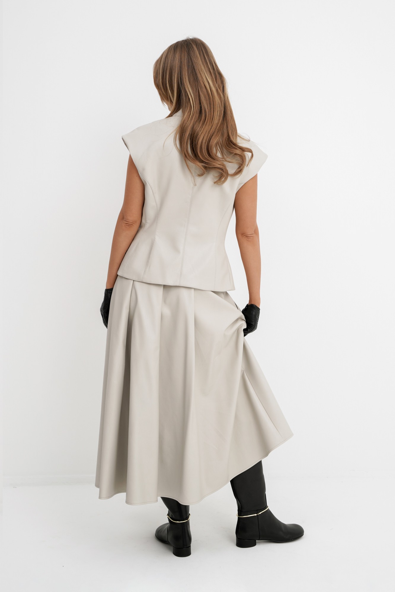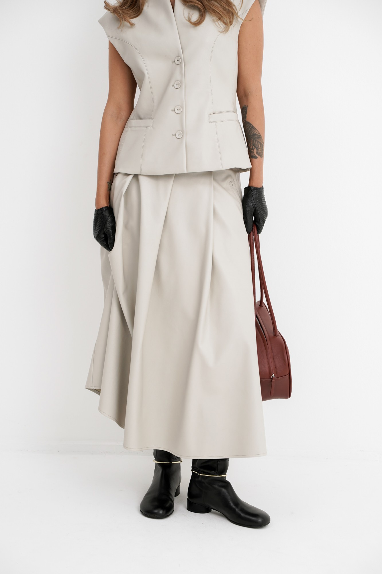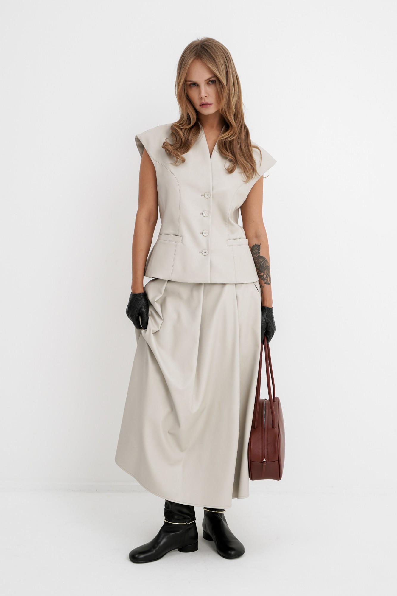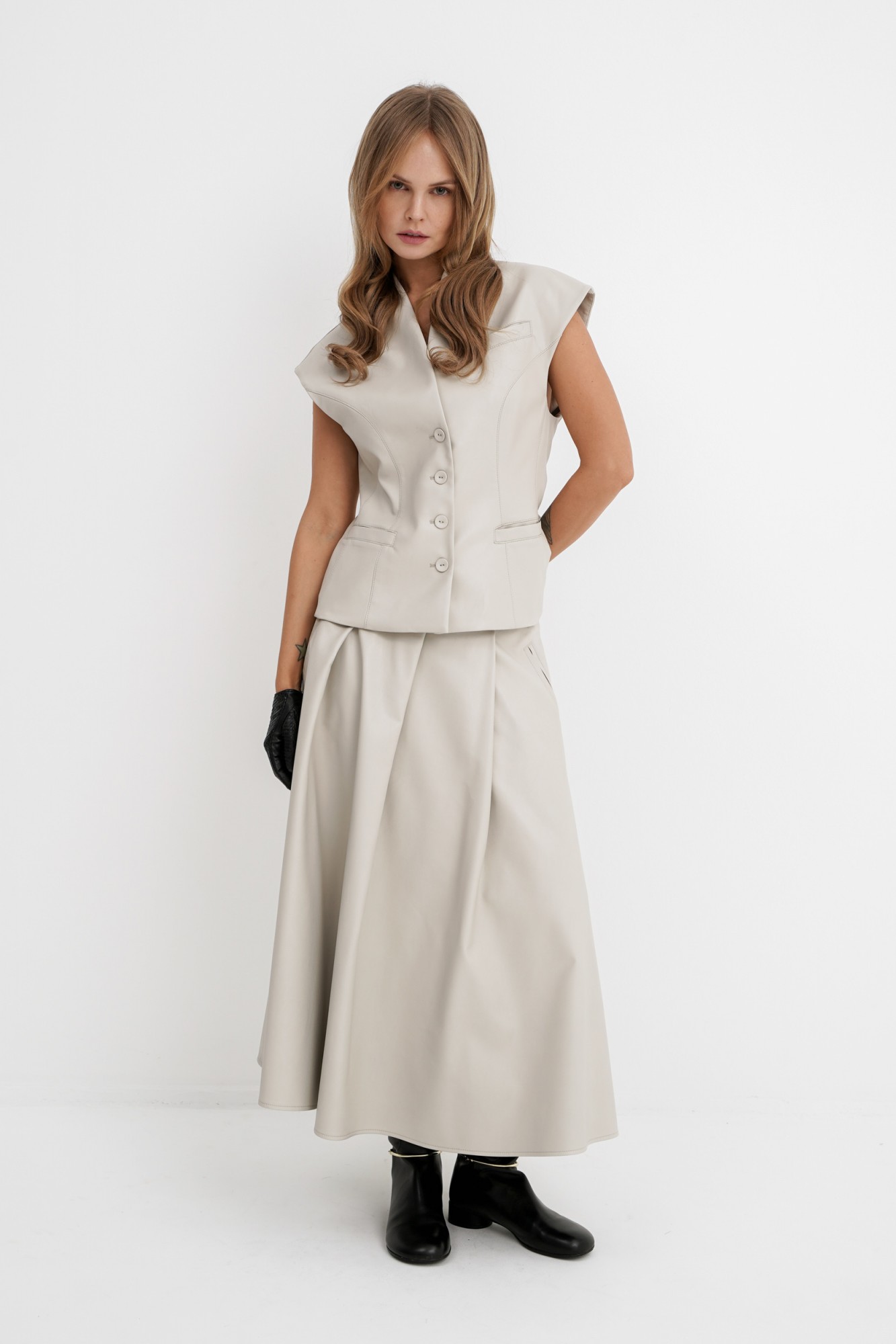 Юбочный костюм PiRS 5781 двойка серо-бежевый