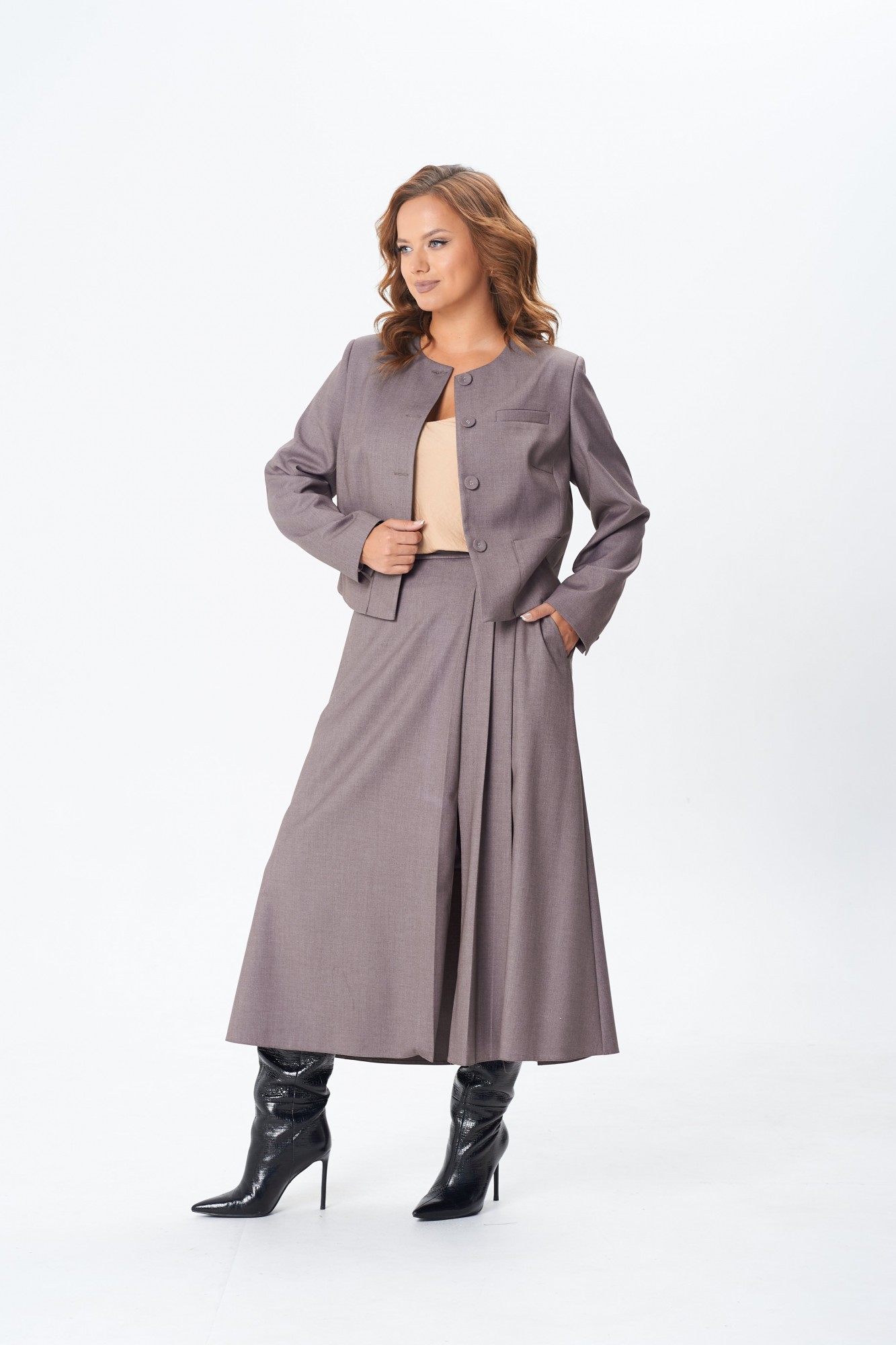Юбочный костюм TVIN 7871 кофе с молоком
