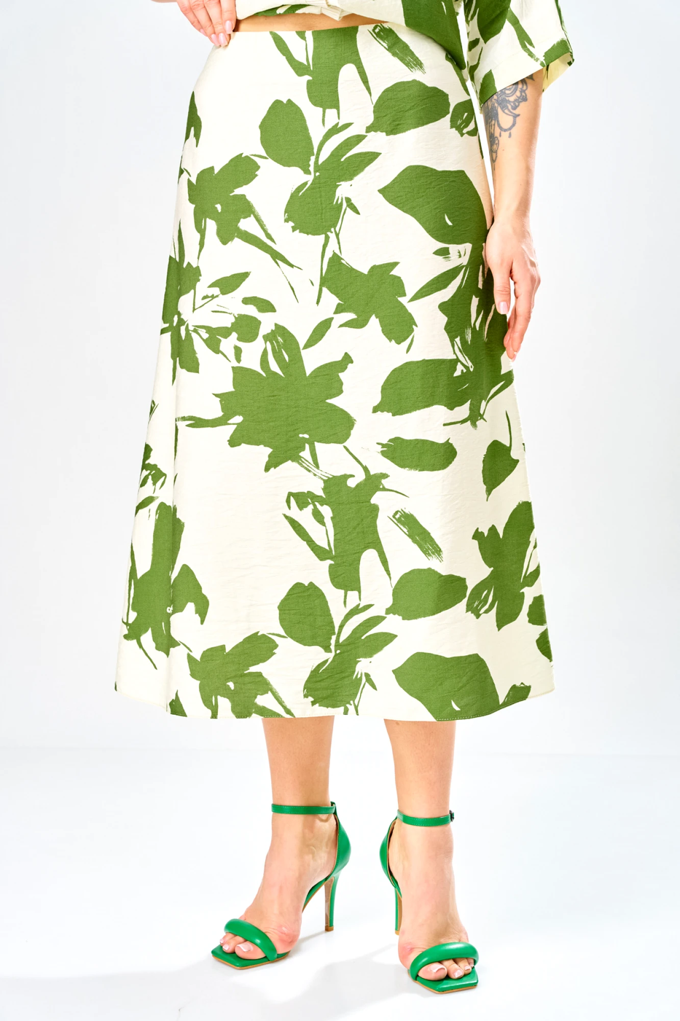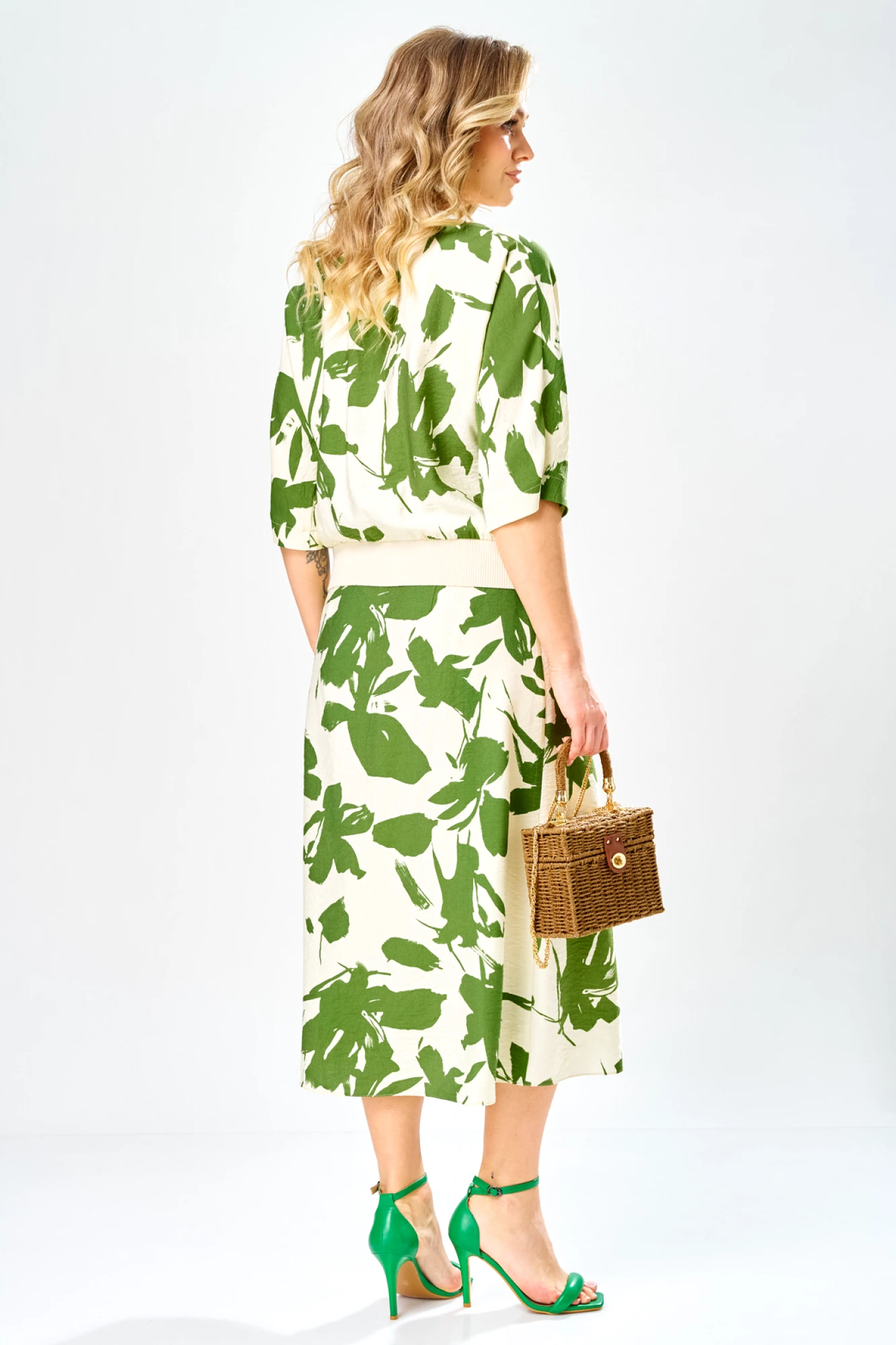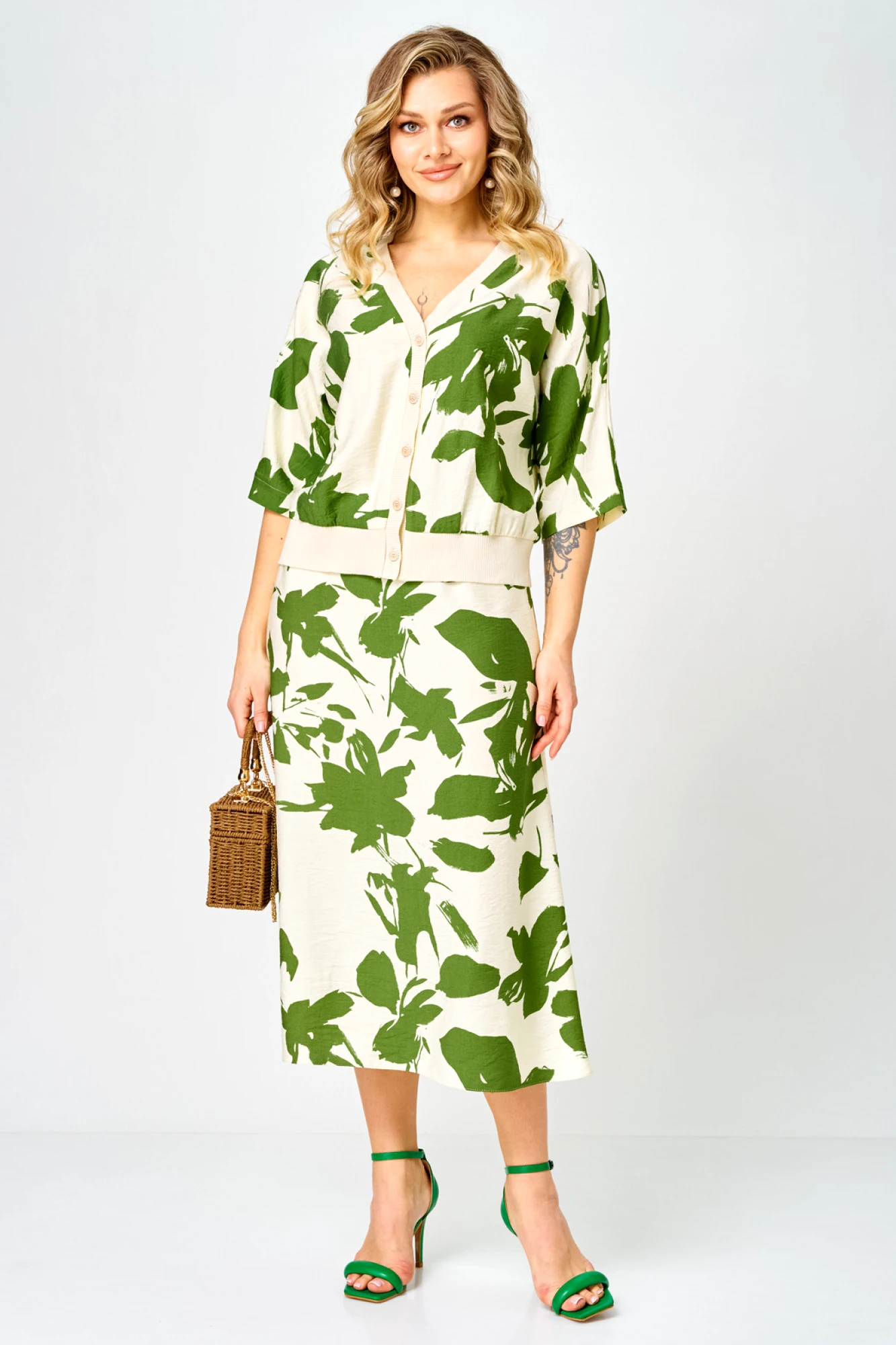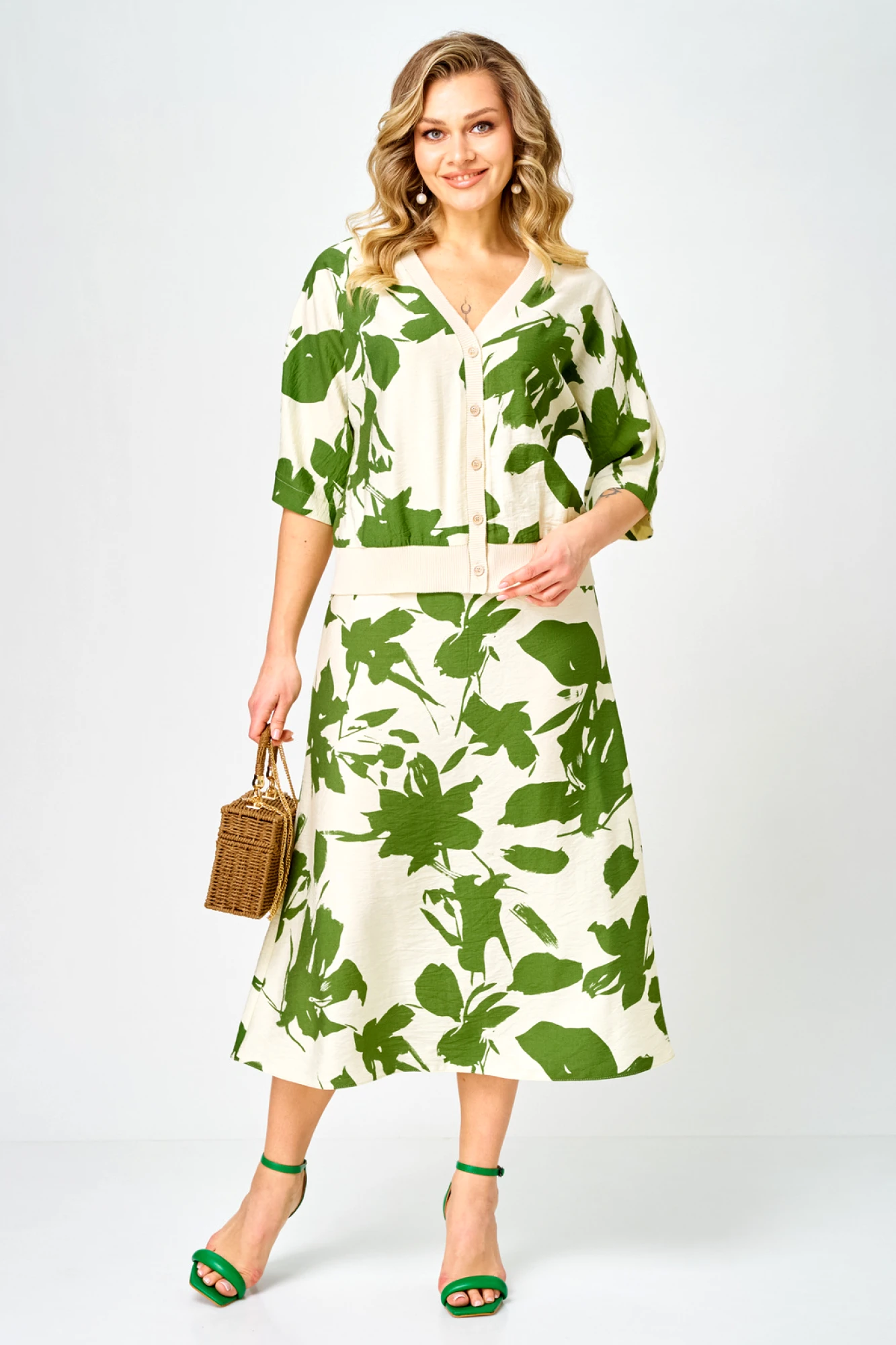 Юбочный костюм Твой Имидж 2386 двойка молочный с зеленым принтом