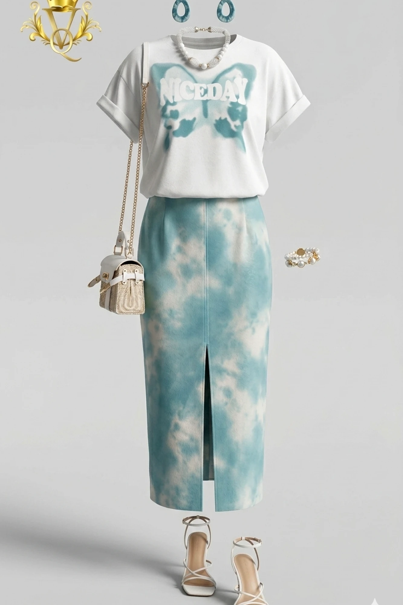 Юбочный костюм Vittoria Queen 29223 двойка молочный, синий