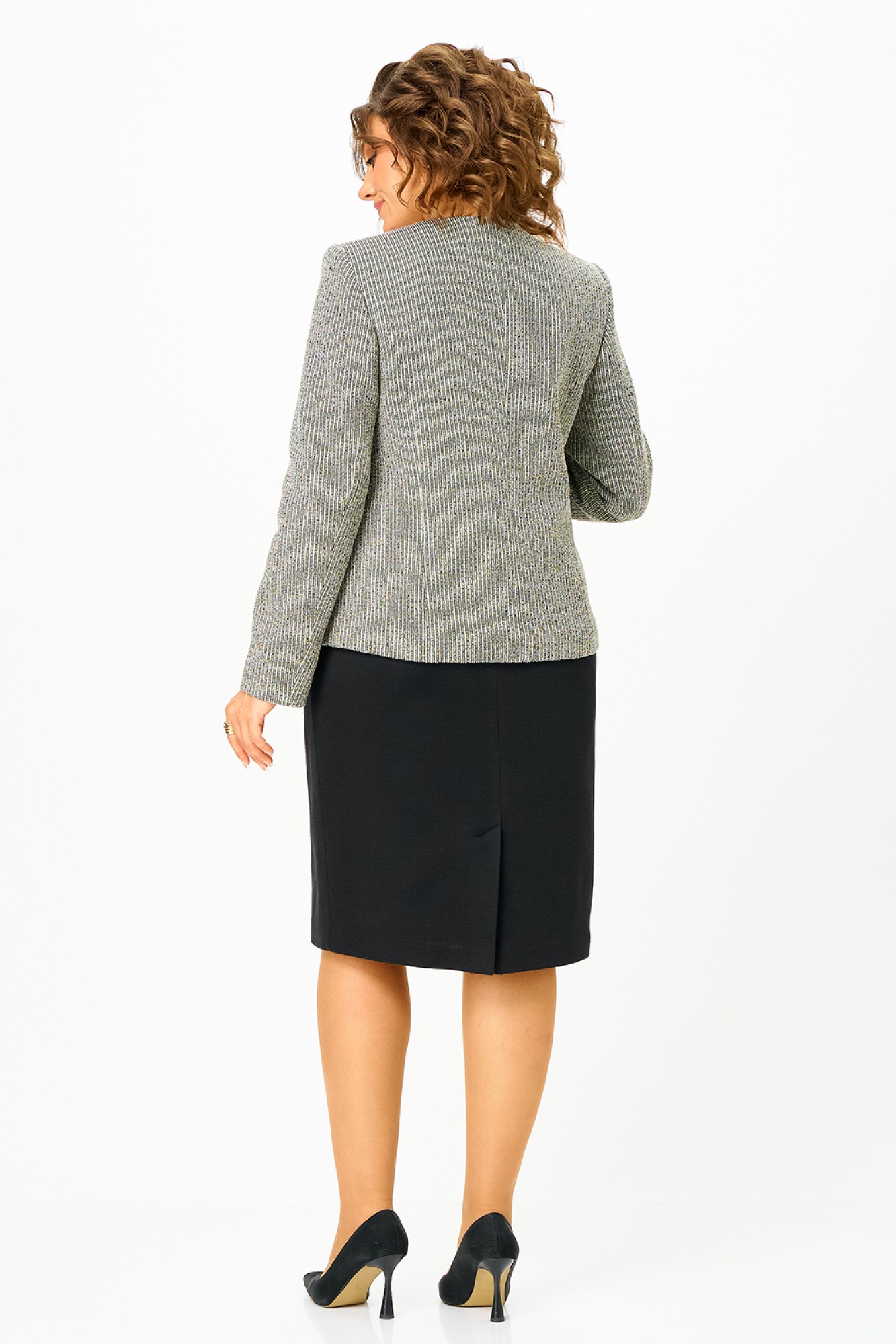 Повседневный трикотажный костюм из полотна собственного производства, состоящий из жакета и юбки. Он отлично подходит для осеннего и зимнего сезона и создает великолепный вид в вашем гардеробе. Жакет полу-прилегающего силуэта. Рукав втачной. По спинке средний шов, рельефы. Особенностью данной модели является асимметричная застежка. Костюм полностью на подкладке. Жакет костюма украшен клапанами, выполненными в одном стиле со своеобразной застежкой. Юбка прямого силуэта. В поясе, по бокам от вытачки до вытачки с эластичной лентой. На заднем полотнище юбки средний шов со шпицей и застежкой на пуговицу и молнию. Пуговицы могут отличаться от представленных на фото. Костюм подчеркнет вашу индивидуальность, хороший вкус, и подарит вам комфорт на протяжении всего дня. Пожалуйста, внимательно изучите таблицу с размерами, предоставленную на фото, для того, чтобы подобрать нужный костюм и радоваться заказу! Чтобы перейти в общий каталог моделей, нажмите на иконку бренда в карточке товара. Все изделия производятся в Республике Беларусь на собственной фабрике. Мы будем рады вашим отзывам и рекомендациям, благодаря им мы становимся лучше! Спасибо, что выбираете ZLATA!