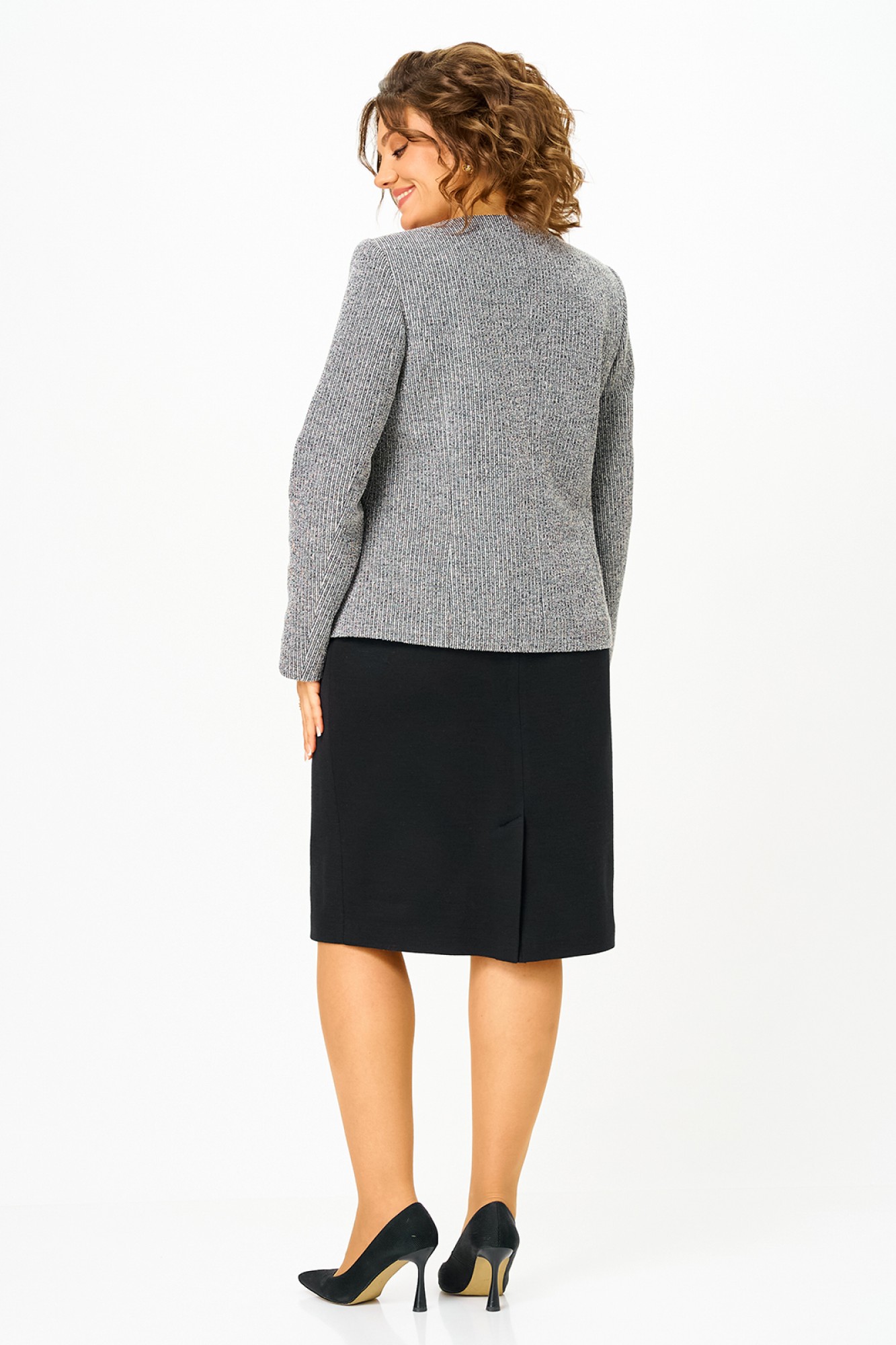 Повседневный трикотажный костюм из полотна собственного производства, состоящий из жакета и юбки. Он отлично подходит для осеннего и зимнего сезона и создает великолепный вид в вашем гардеробе. Жакет полу-прилегающего силуэта. Рукав втачной. По спинке средний шов, рельефы. Особенностью данной модели является асимметричная застежка. Костюм полностью на подкладке. Жакет костюма украшен клапанами, выполненными в одном стиле со своеобразной застежкой. Юбка прямого силуэта. В поясе, по бокам от вытачки до вытачки с эластичной лентой. На заднем полотнище юбки средний шов со шпицей и застежкой на пуговицу и молнию. Пуговицы могут отличаться от представленных на фото. Костюм подчеркнет вашу индивидуальность, хороший вкус, и подарит вам комфорт на протяжении всего дня. Пожалуйста, внимательно изучите таблицу с размерами, предоставленную на фото, для того, чтобы подобрать нужный костюм и радоваться заказу! Чтобы перейти в общий каталог моделей, нажмите на иконку бренда в карточке товара. Все изделия производятся в Республике Беларусь на собственной фабрике. Мы будем рады вашим отзывам и рекомендациям, благодаря им мы становимся лучше! Спасибо, что выбираете ZLATA!