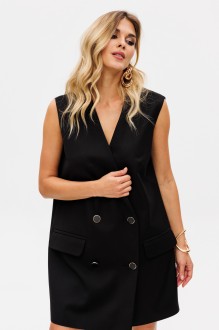 Платье-жилет выполнено из костюмной ткани. Платье прямого силуэта, длиной выше линии колена. Спереди прорезные карманы с клапанами и двубортная застежка на пуговицы. Спинка цельная. Горловина V-образной формы. Платье на притачной по низу подкладке.