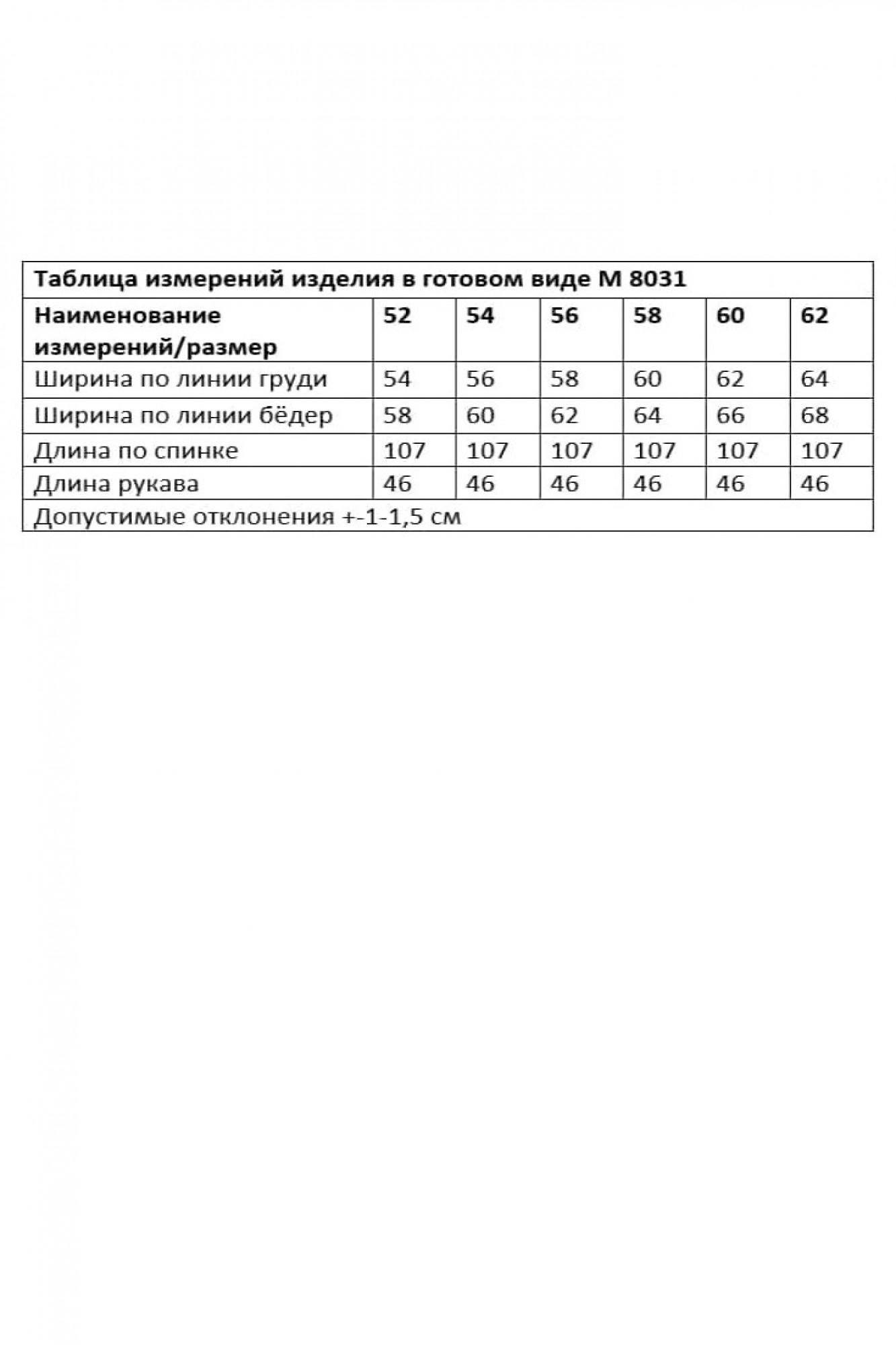 Таблица размеров