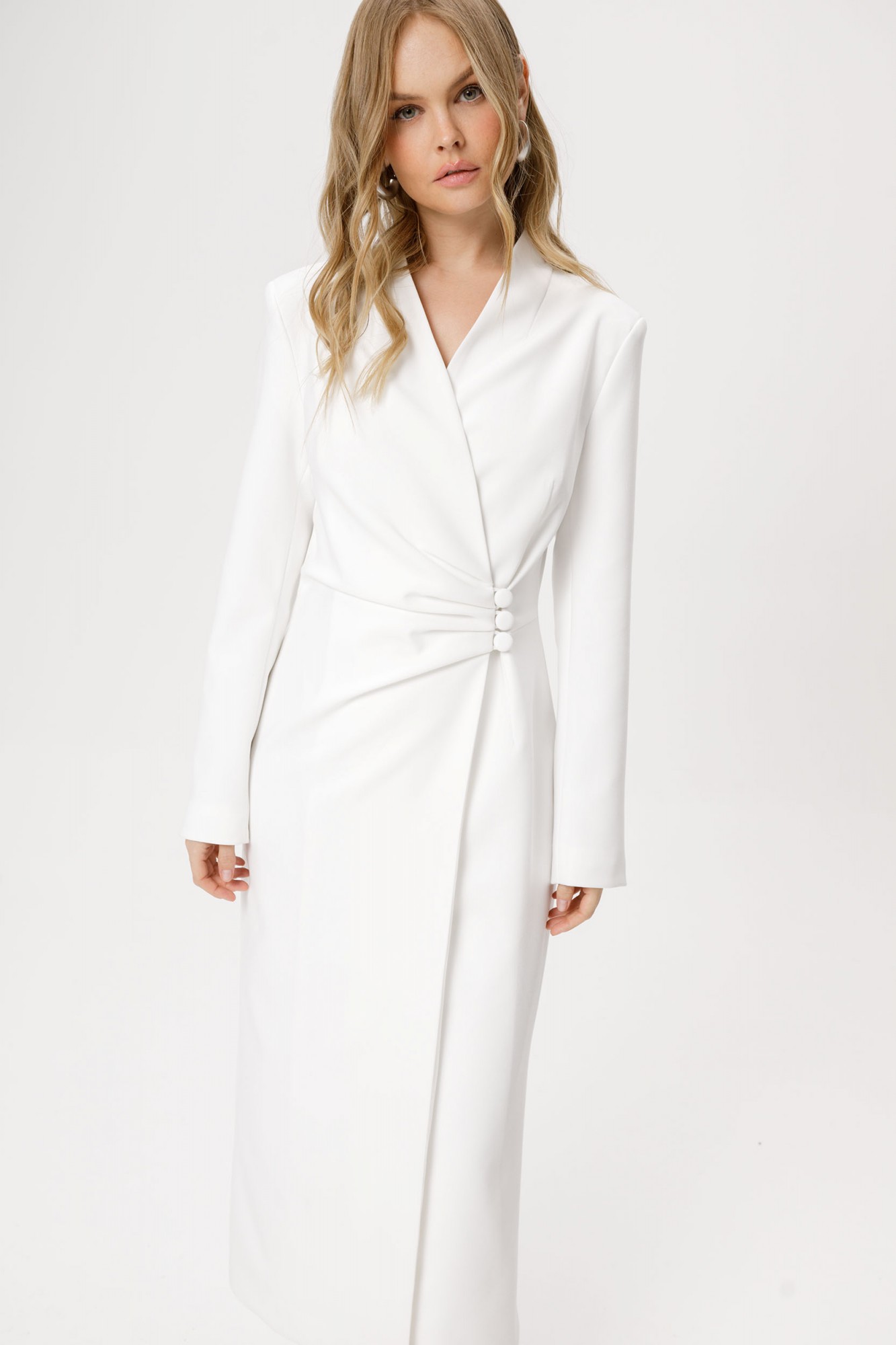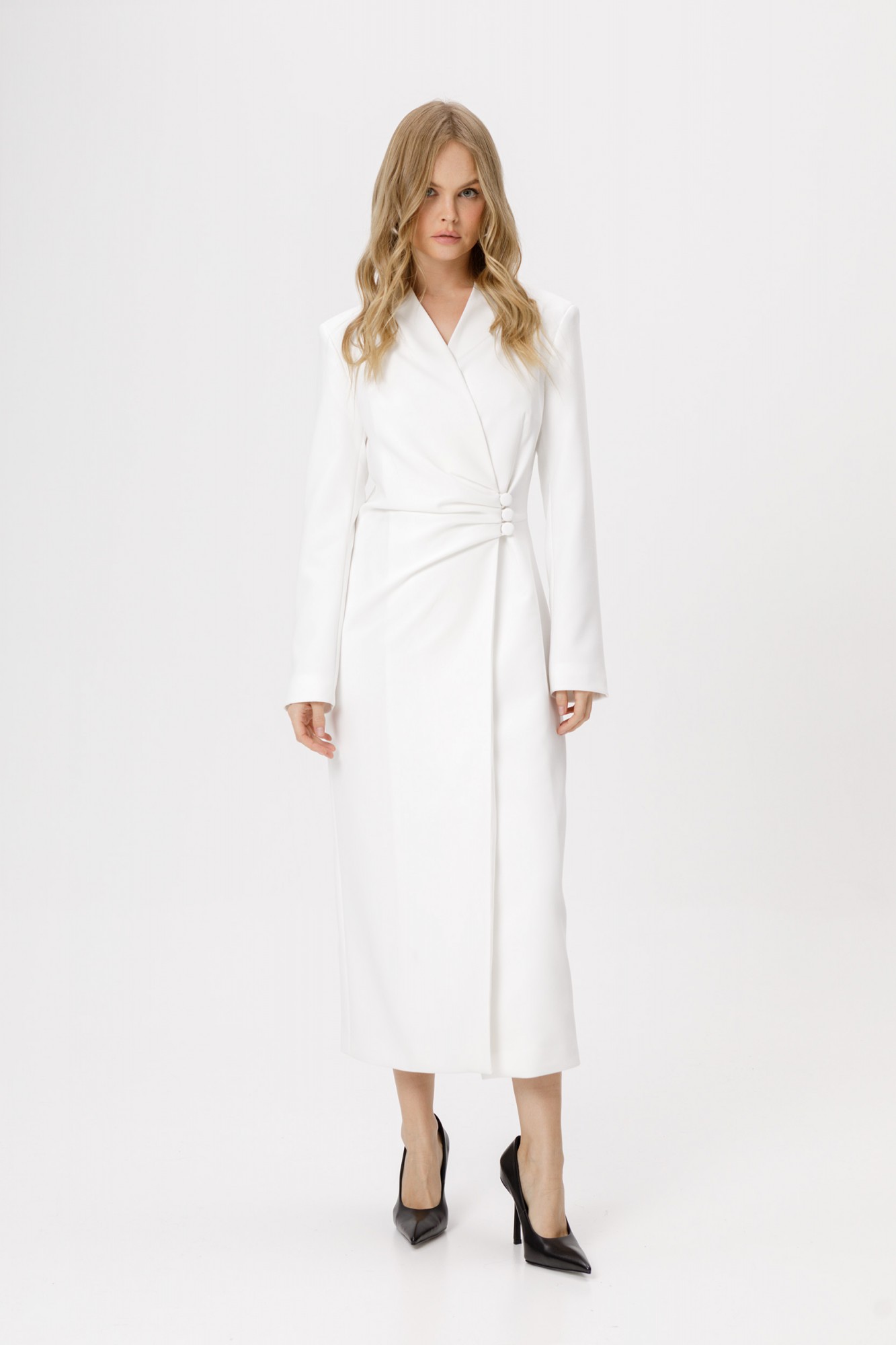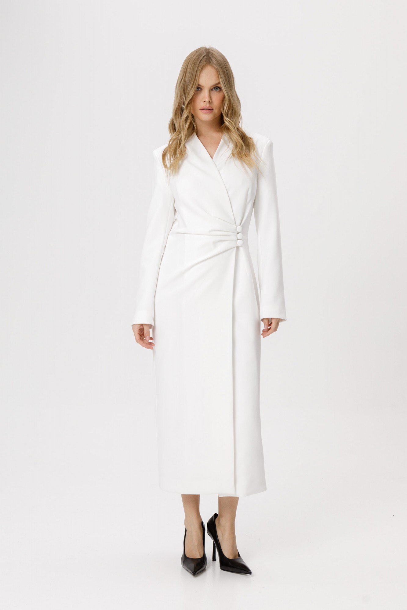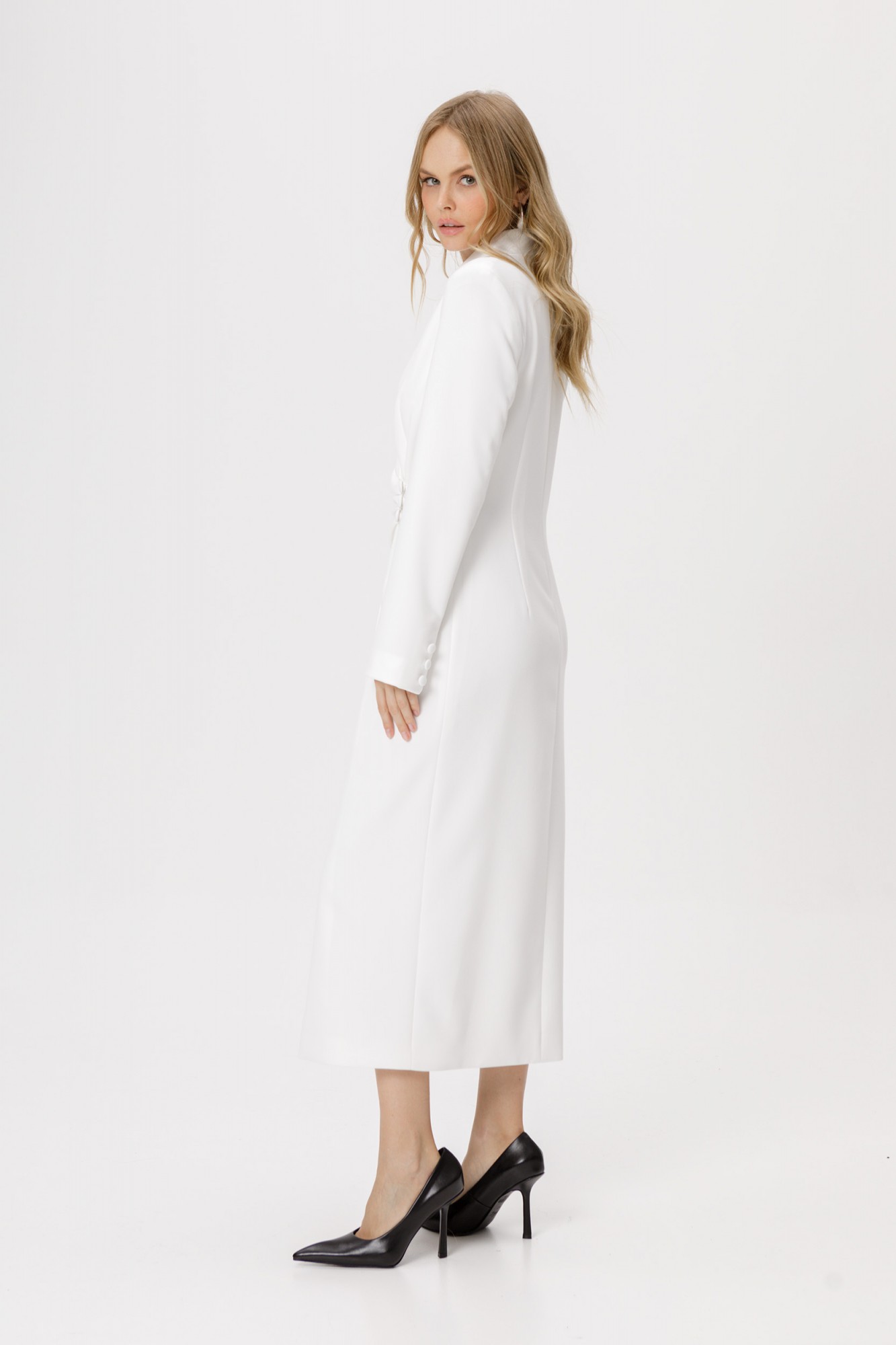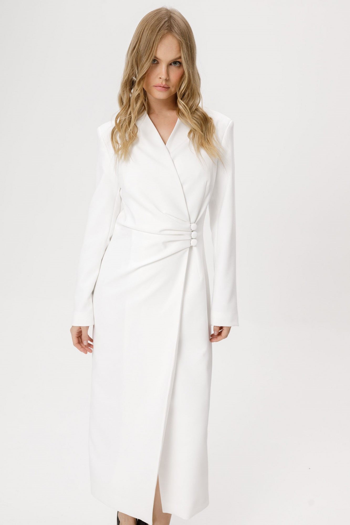 Асимметричное платье приталенного силуэта.