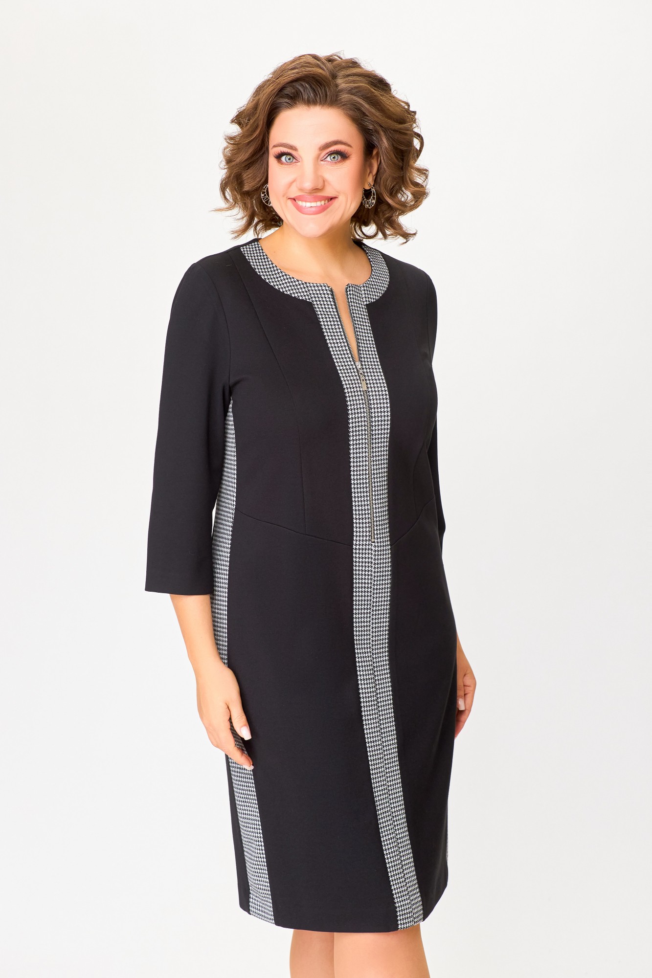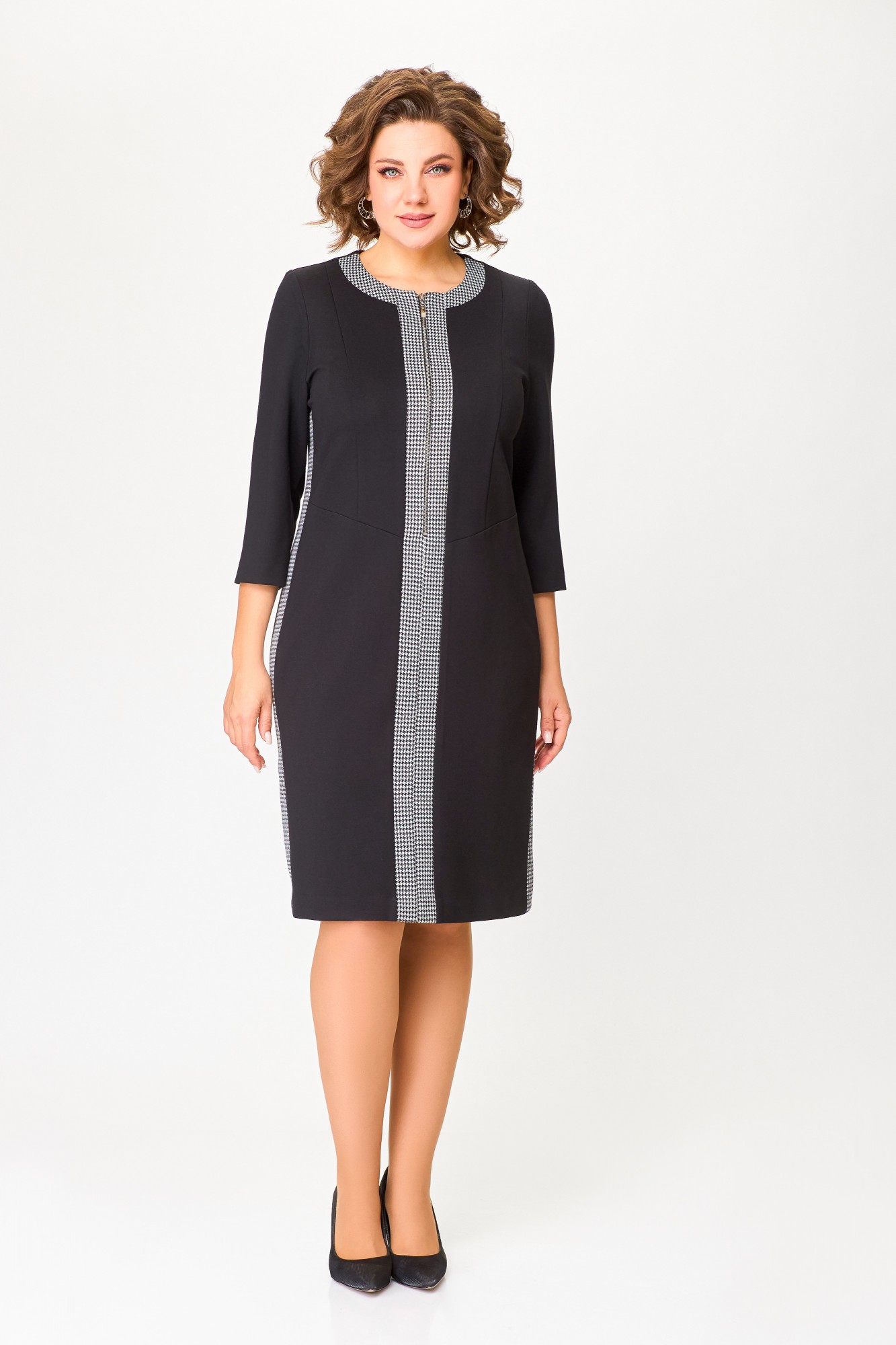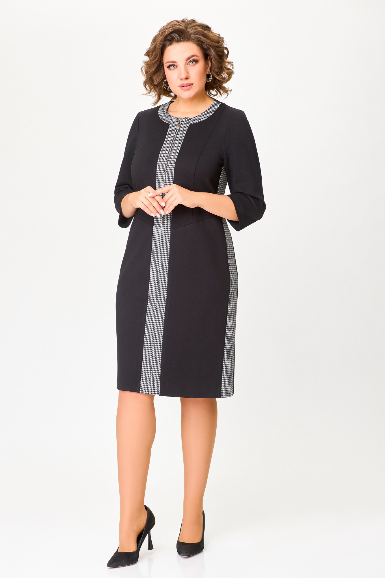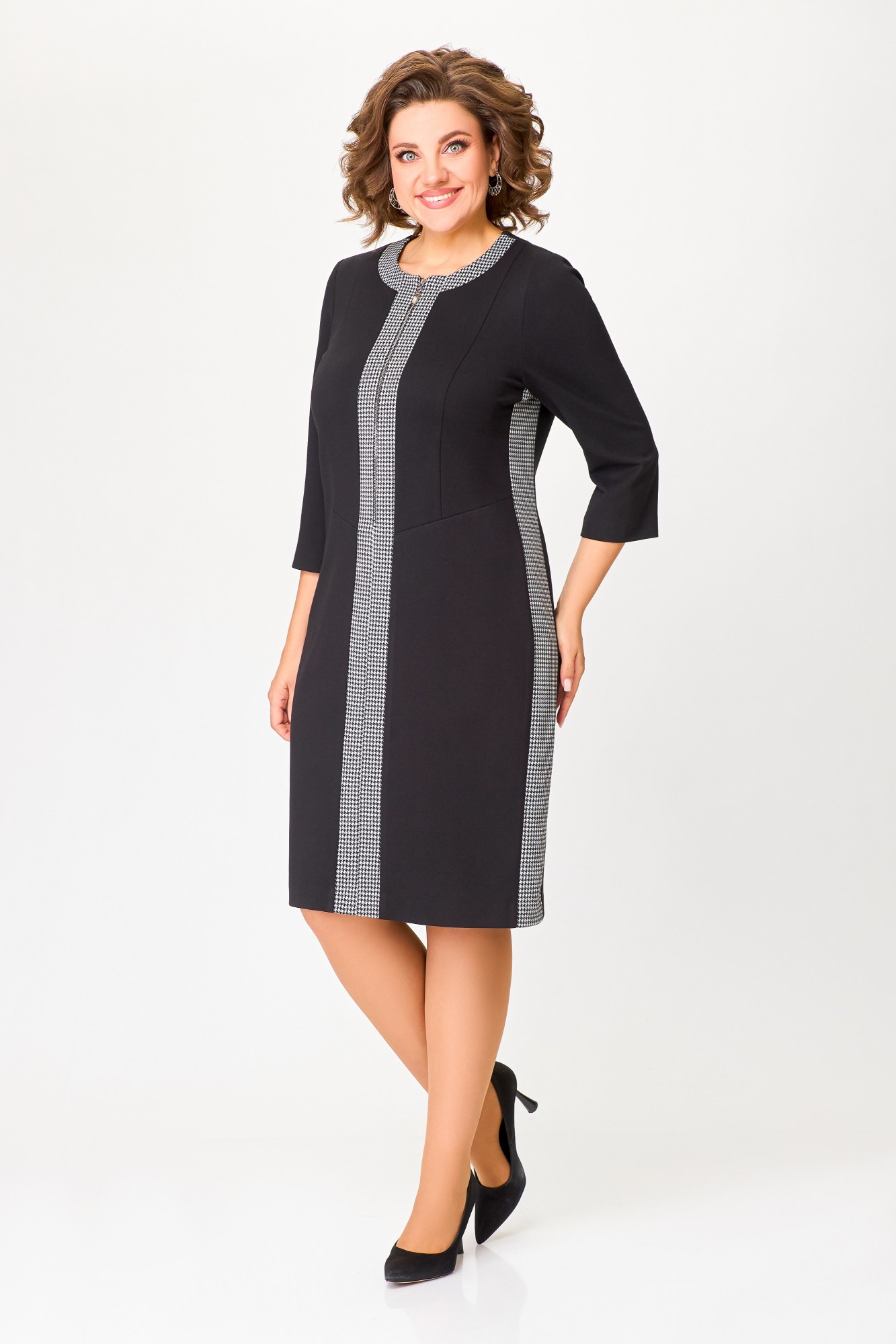 Платье Swallow 773 Чёрный, Чёрно-белая гусиная лапка