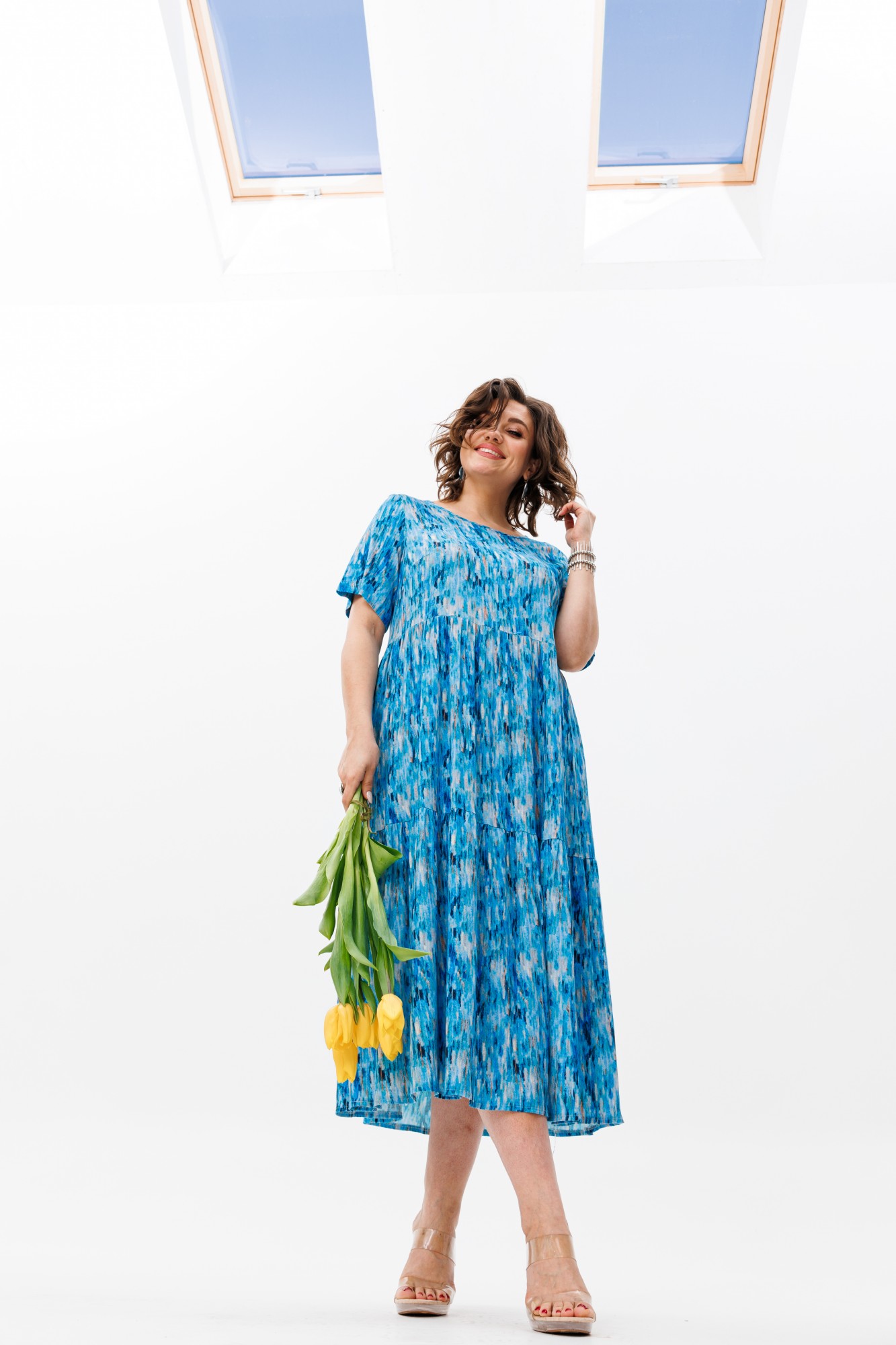 Его струящаяся ткань обеспечивает комфорт и свободу движений. Дизайн предусматривает большие размеры, чтобы каждая женщина могла найти подходящий вариант.