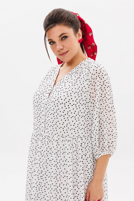 Рукава 3/4 с резинкой по низу создают легкость и игривость, а отрезное по талии с аккуратной сборкой обеспечивает идеальную посадку. Платье также имеет съемный чехол ,который обеспечивает комфорт и уверенность во время носки. Вы можете быть уверены, что ваше платье будет выглядеть безупречно и элегантно.