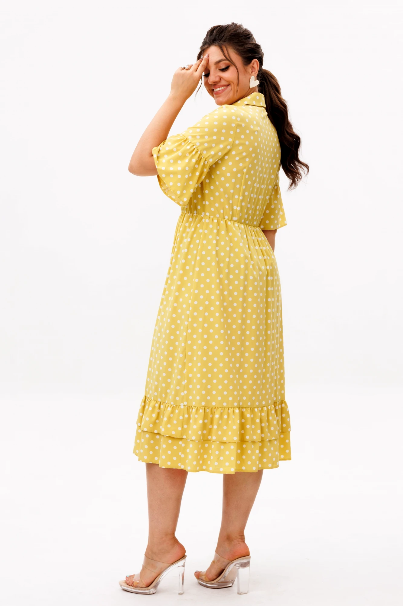 Воздушное и женственное, это платье станет жемчужиной вашего гардероба. Стильный горошек - вечный тренд, который никогда не выходит из моды, придаёт образу лёгкую игривость и очарование.