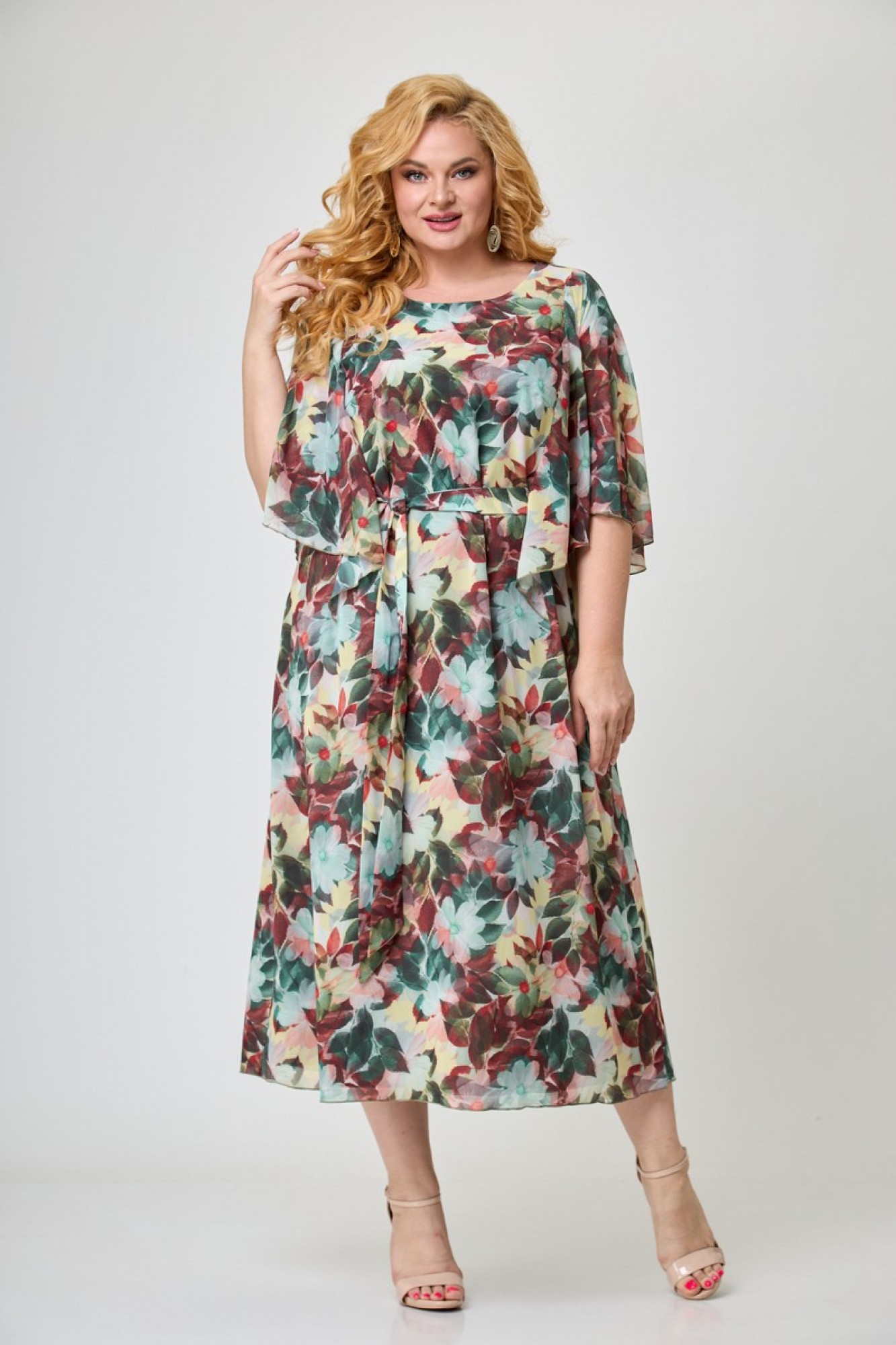 Особенность этого нарядного платья-рукав пелерина, вшитый в рельефы переда и спинки, который широко использовал в своих коллекциях Пьер Карден. Завершает образ подчёркивающий фигуру завязывающийся пояс выше линии талии.