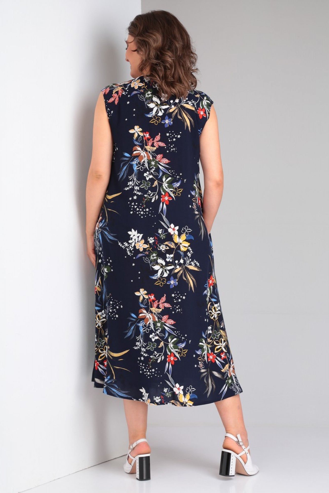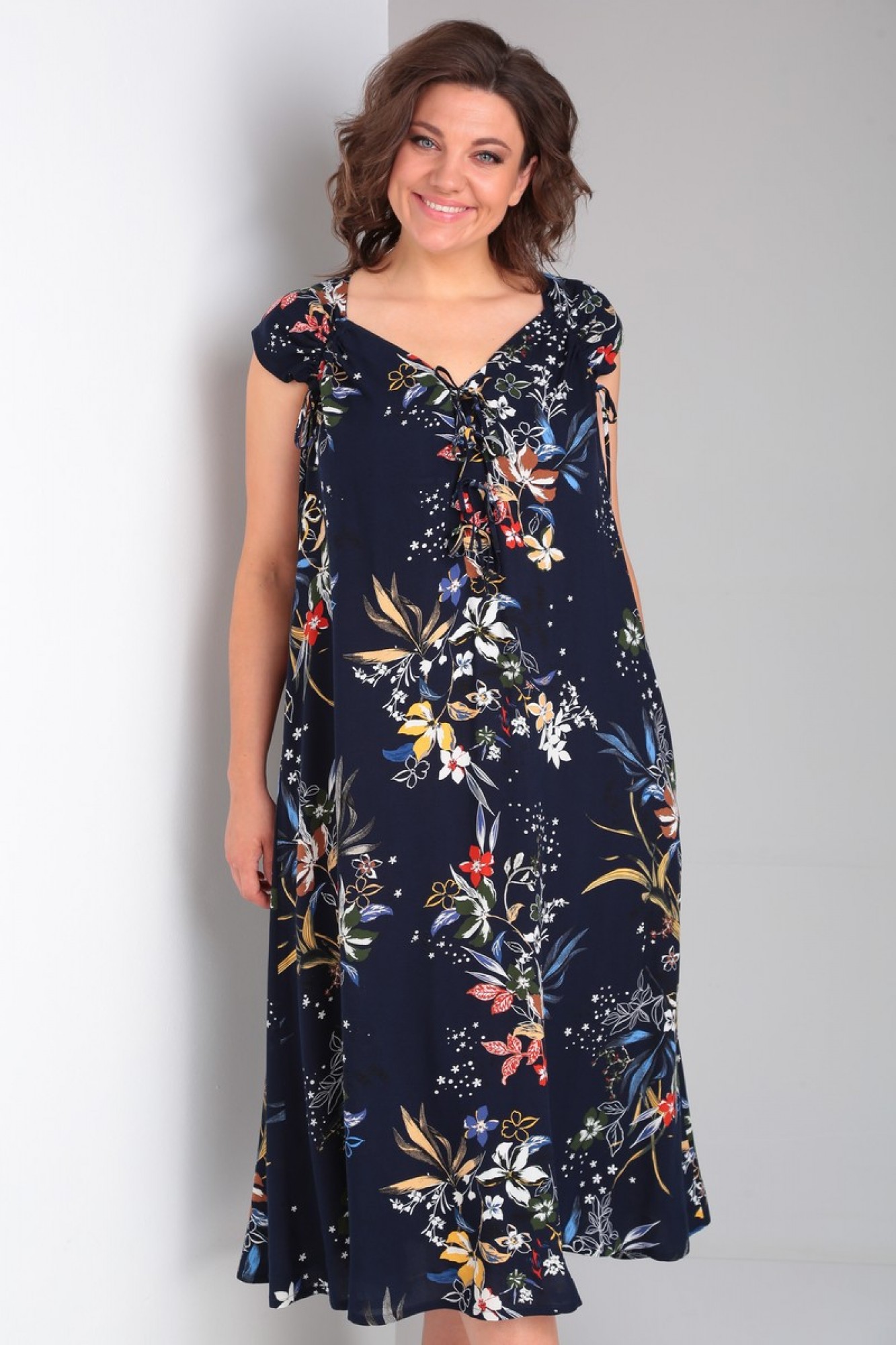 Платье выполнено из мягкой штапельной ткани устойчивой окраски. Рекомендуется вертикальная сушка.