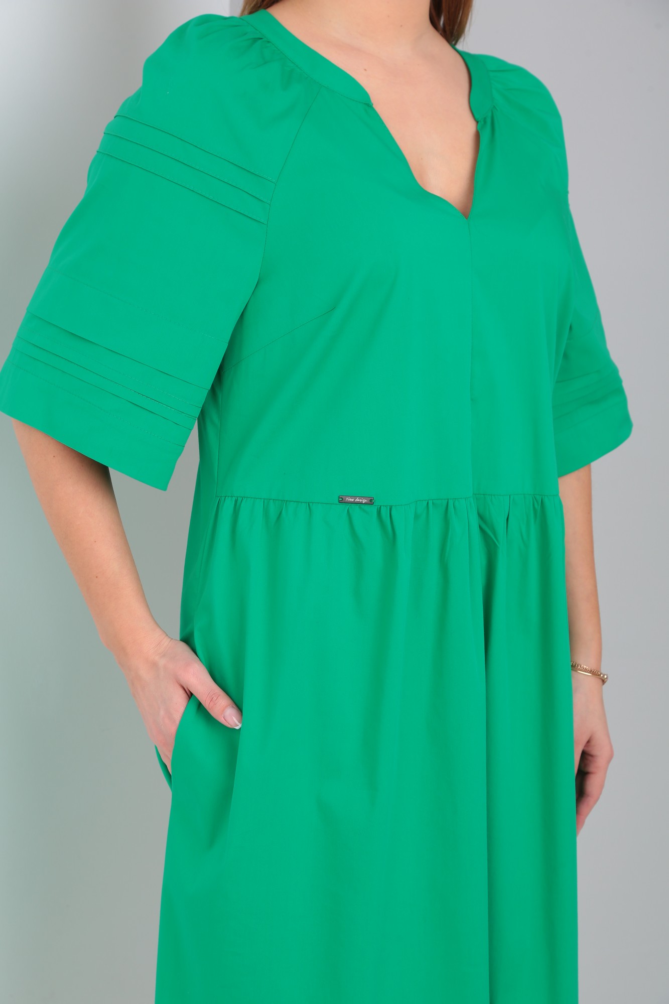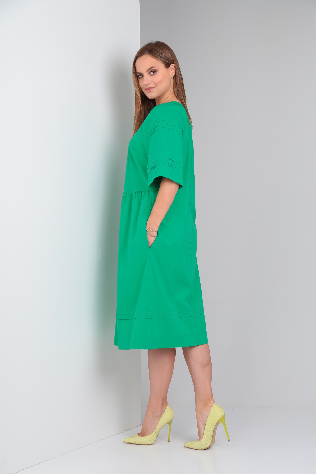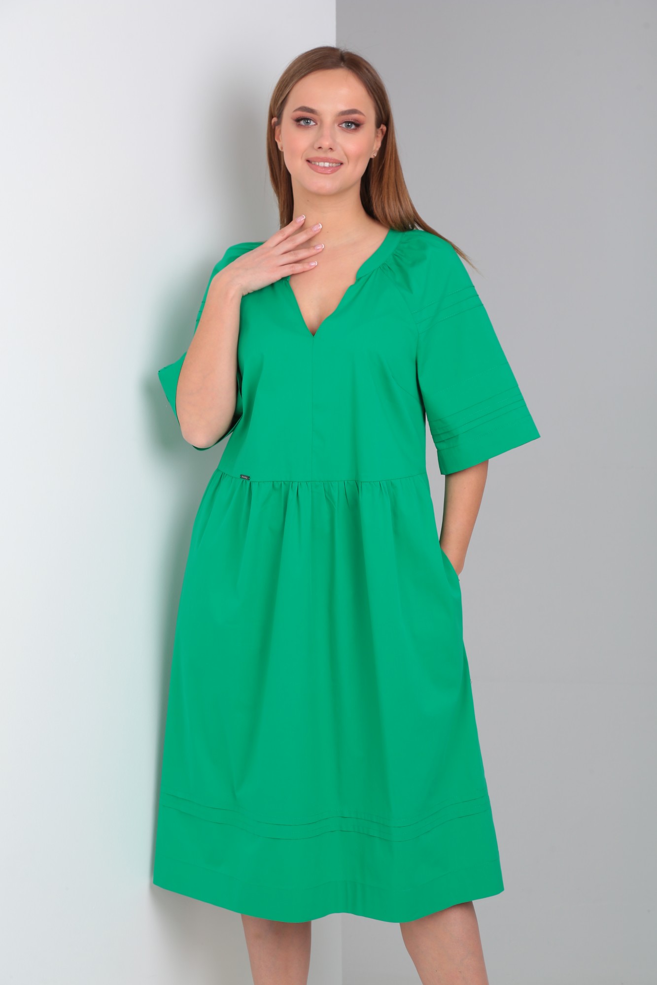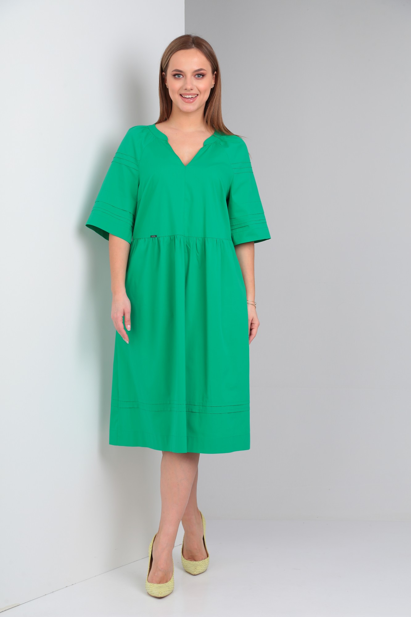 Платье женское свободного покроя из однотонной хлопковой ткани.