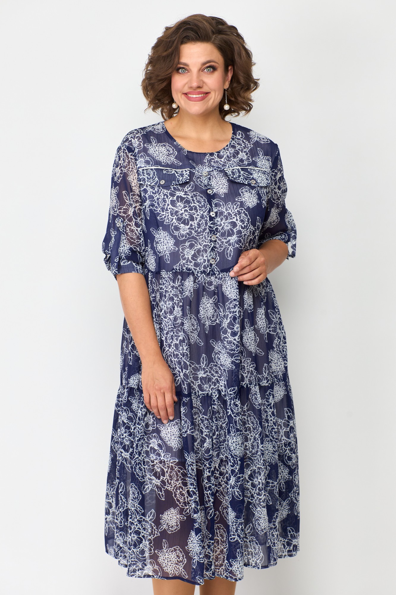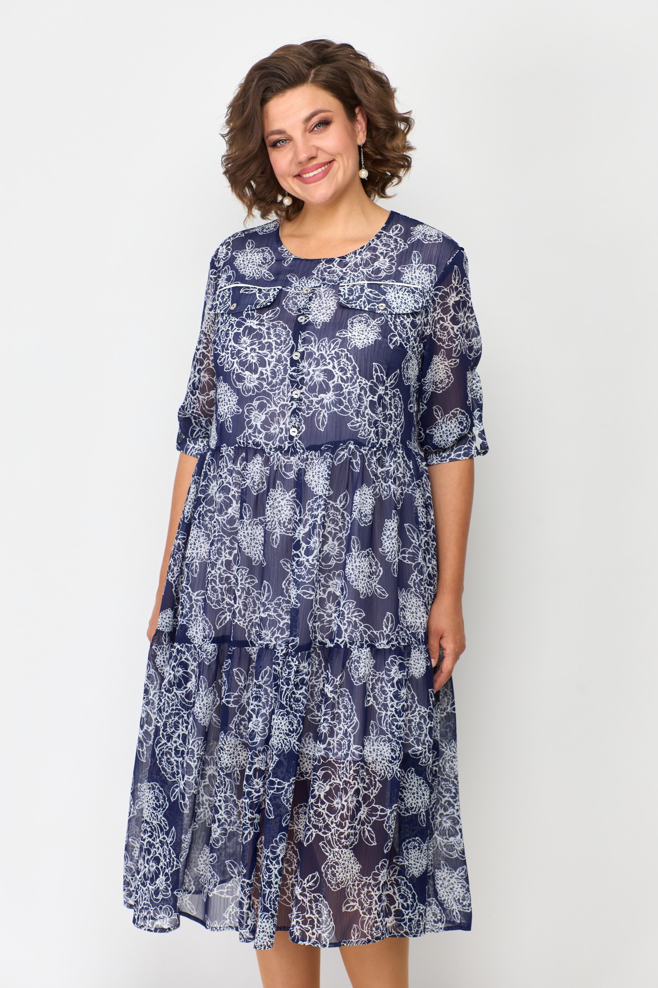 Платье SolomeaLux 884 синий с белым