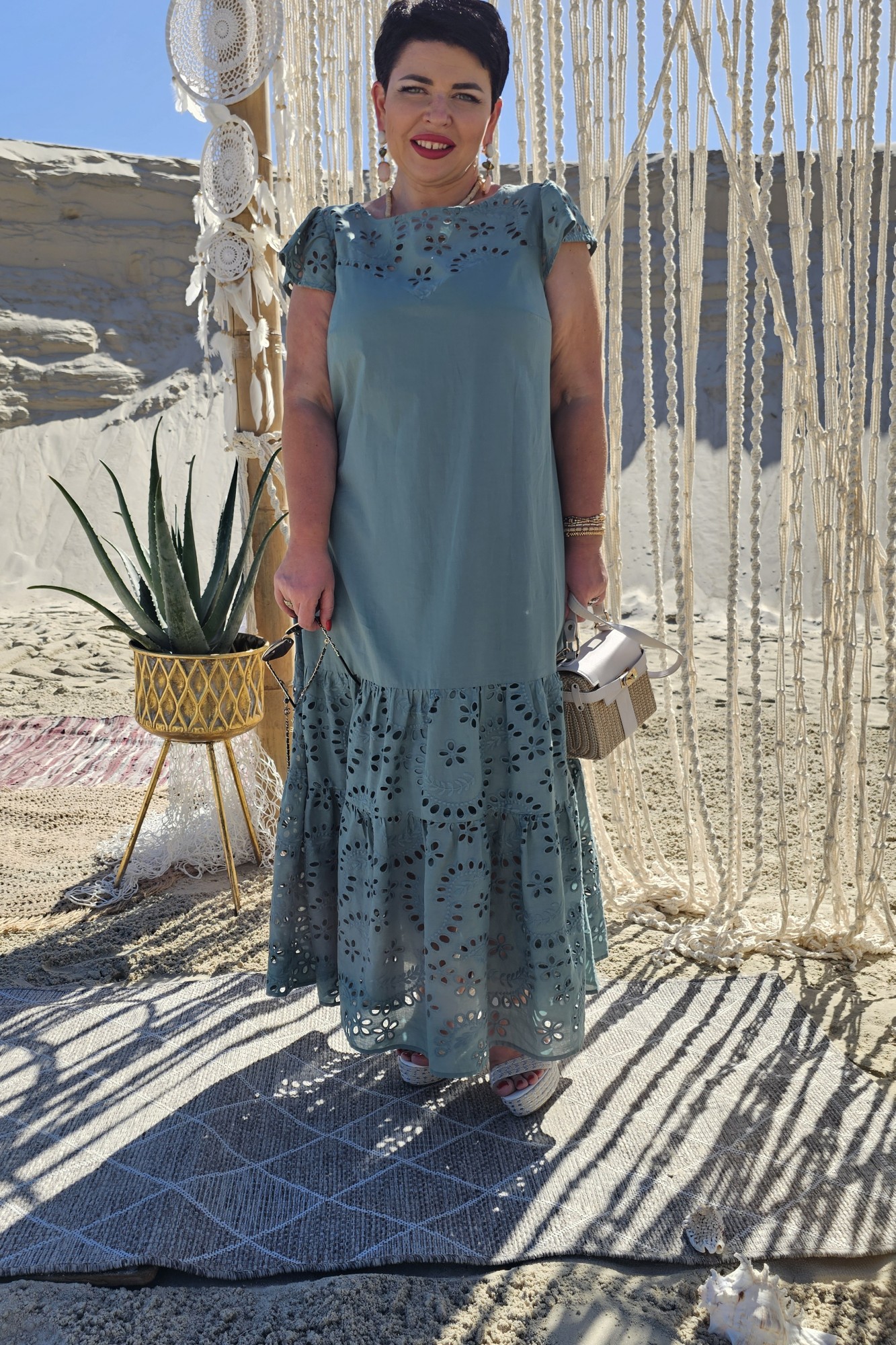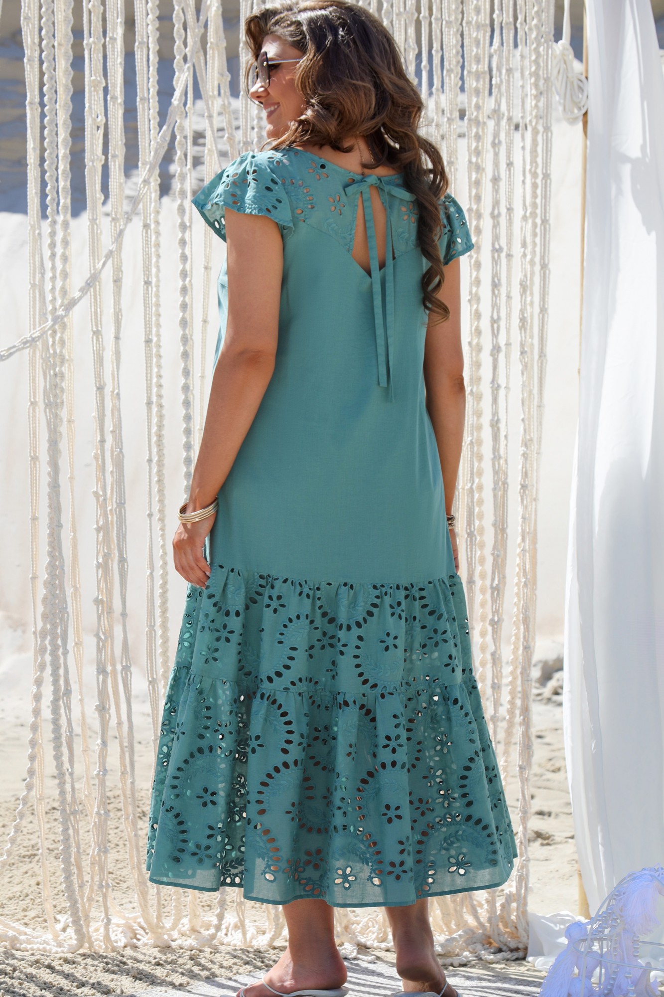 Изящное платье в модном цвете этого сезона, с красивым ришелье, которое не может остаться незамеченным! Очень комфортное с разведением к низу.
