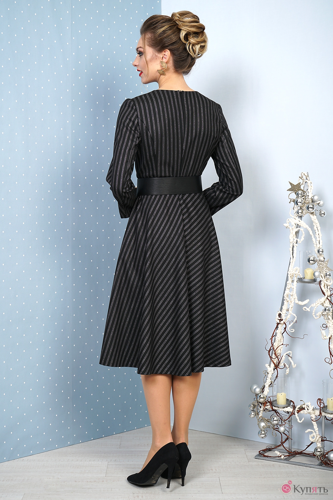 Платье ALANI COLLECTION 1027 черный в серебристую полоску с ID товара 198734