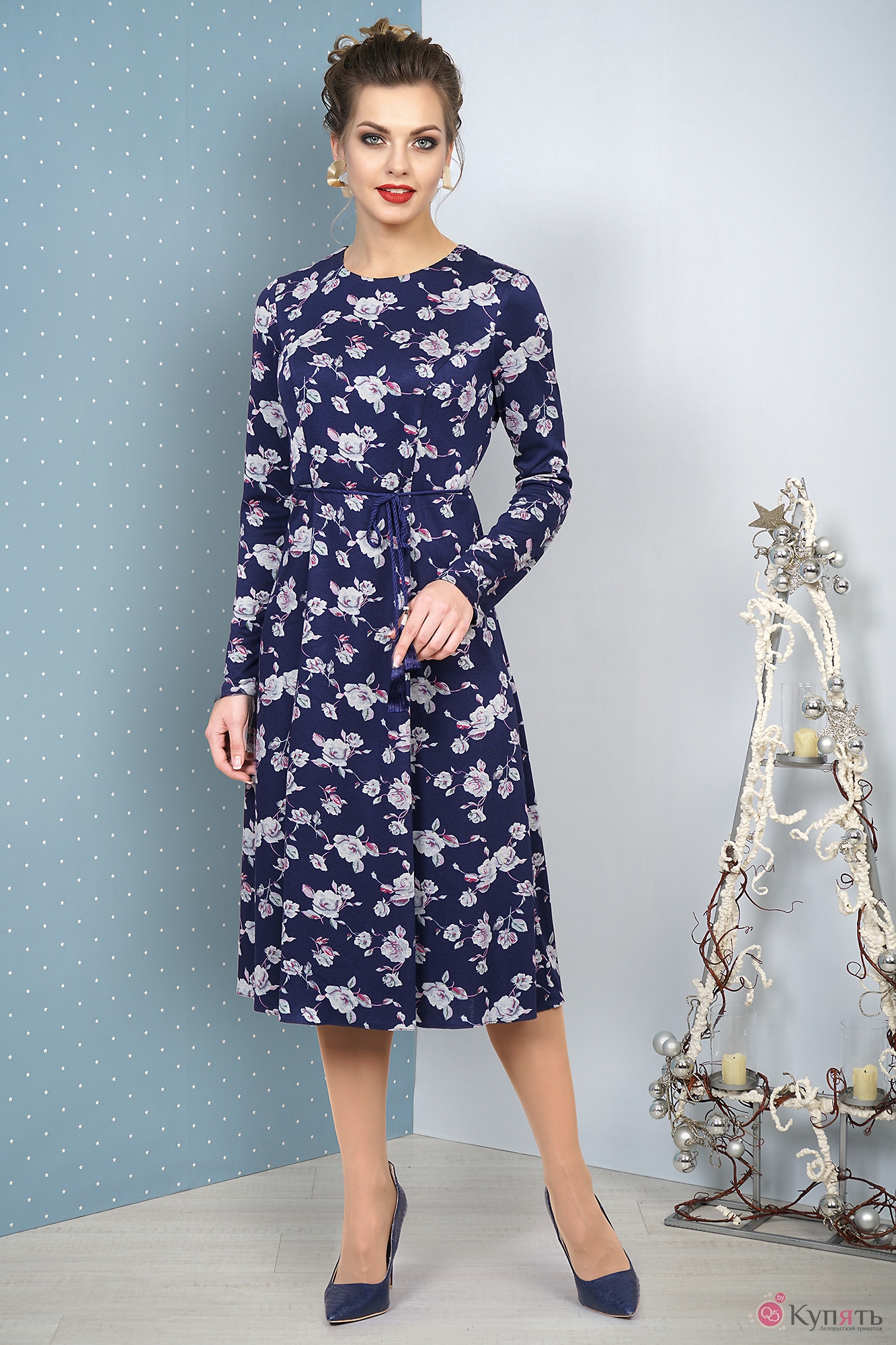 Платье ALANI COLLECTION 1057 темно-синий цветы с ID товара 199856