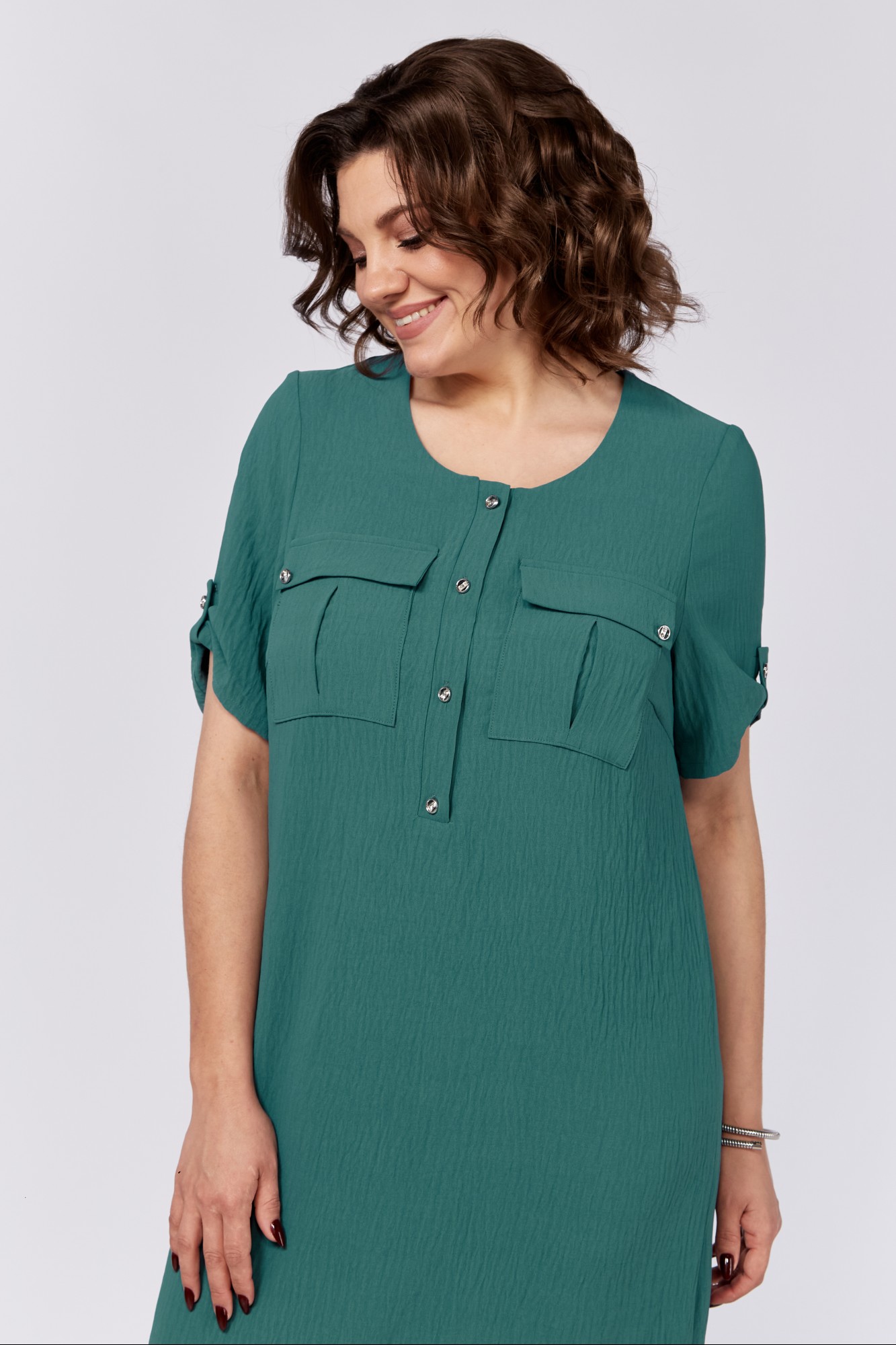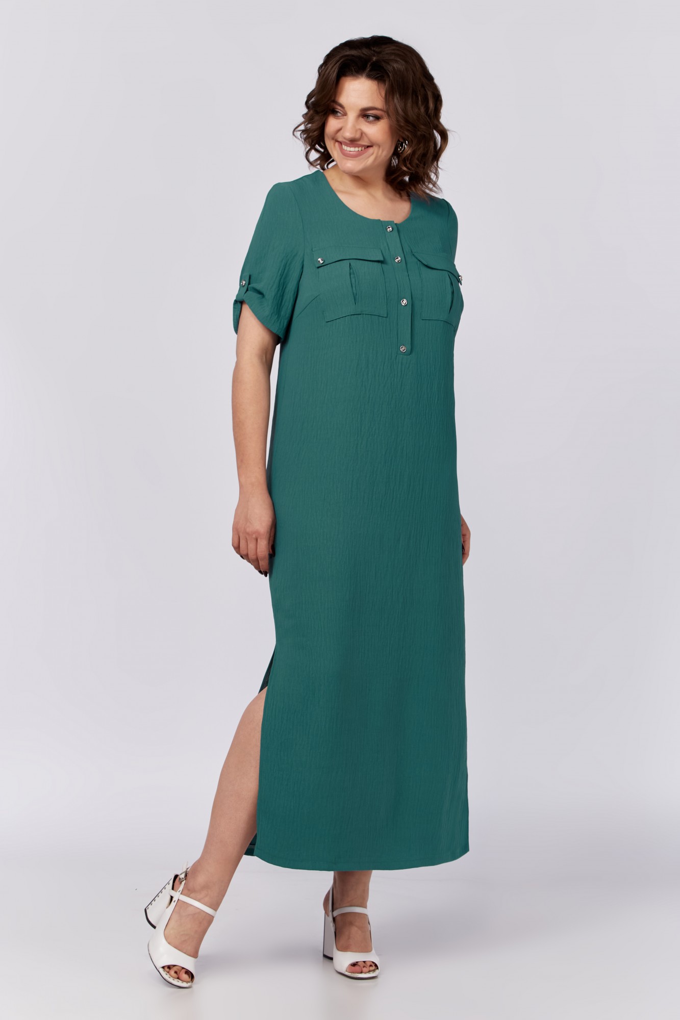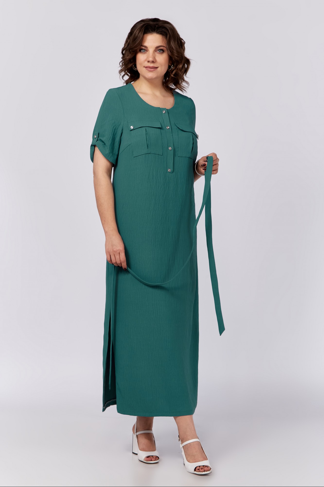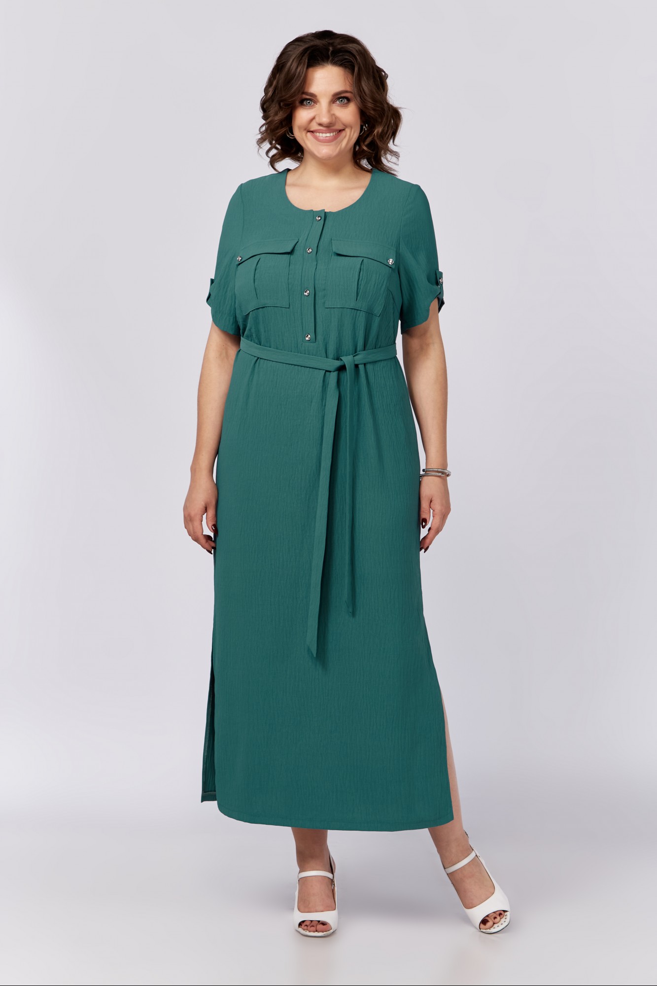 Платье с застежкой на петли и пуговицы - это классика. На первый взгляд - простое, но, как говорится, в простоте - красота. Нарядно-повседневное платье выгодно подчёркивает фигуру. На полочке обработаны клапаны. По боковым швам есть разрезы. В комплект входит съёмный пояс. Рукава длиной чуть ниже локтя, декорированы патой. Платье подходит для весны, лета, осени. Оно актуально как для взрослых женщин, так и для девушек.