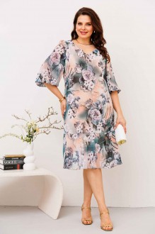 Платье женское, выполнено из шифоновой ткани, на подкладке, полуприлегающего силуэта, расклешенного к низу. Рукав – реглан, верх и низ которого собран на резинку. В шов втачивания рукава по спинке вставлена репсовая лента контрастного цвета, которая по спинке перекрещивается, а по переду завязывается на бант. Вырез горловины овальный. Спинка со средним швом. В боковых швах платья выполнены карманы. Платье очень женственное и стильное, удобное, не сковывает движения, может подойти на все случаи в жизни, как для вечерних прогулок по городу, так и для торжеств.