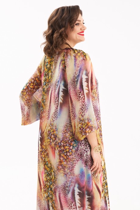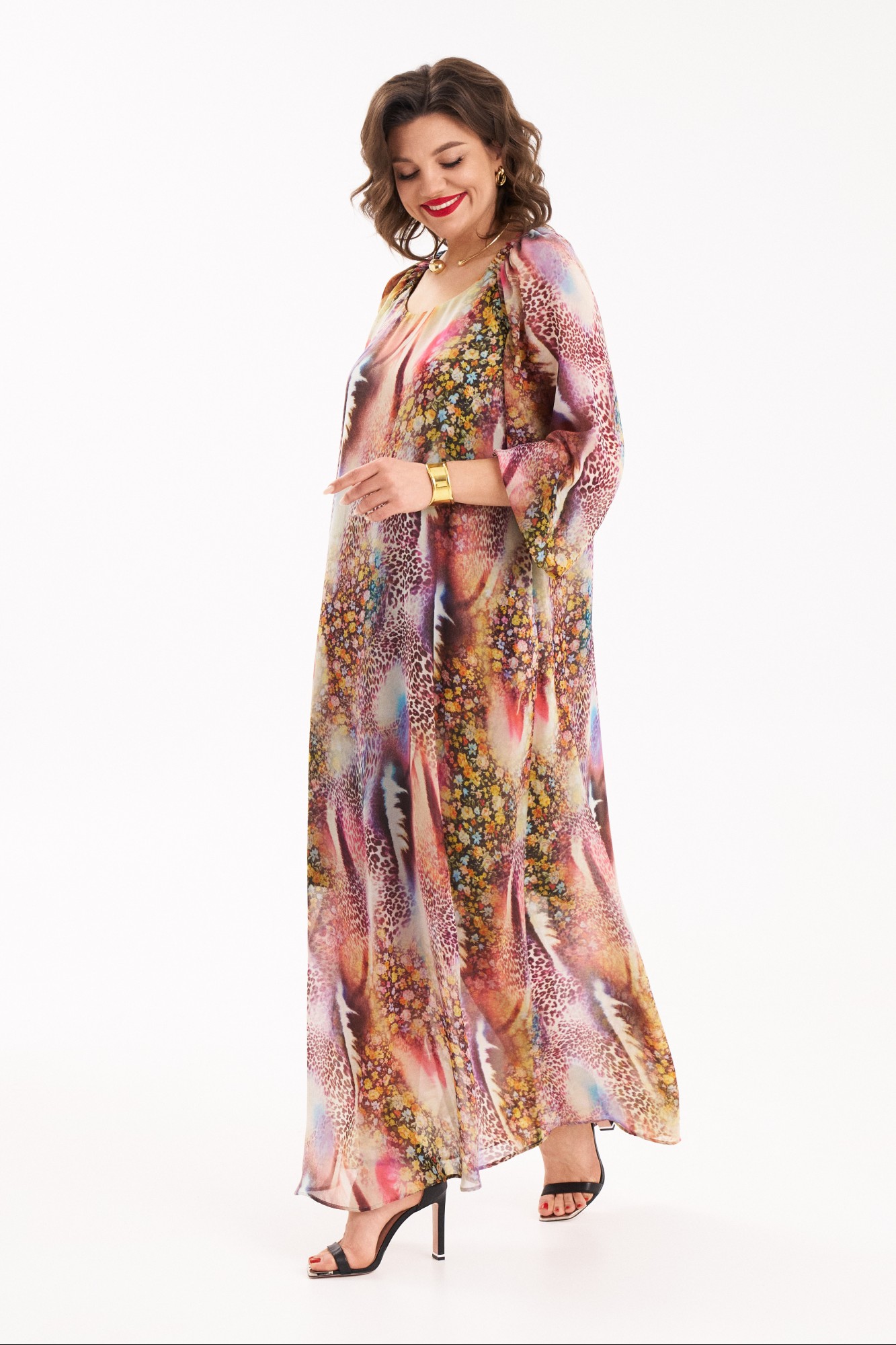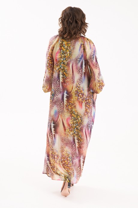 Длина платья по спинке 141 см, длина рукава с манжетой 70 см от горловины. Параметры в 50 размере: ОГ 108 см, ОТ116см, ОБ 130см, параметры в 52 размере ОГ 112 см, ОТ120 см, ОБ 134 см, параметры в 54 размере: ОГ 116см, ОТ 124см, ОБ138см.