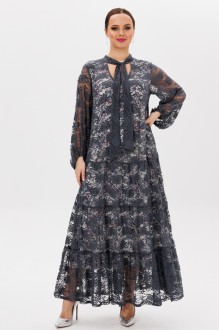 Вечернее платье макси из кружевного полотна, на подкладке, трапециевидного силуэта — дополнение любого образа. Отличный вариант на любое торжество. По горловине V-образный вырез и стойка переходящая в бант. Рукав расширенный к низу, на резинке, фигурный. По полочке и спинке идут 3 присобранных волана.