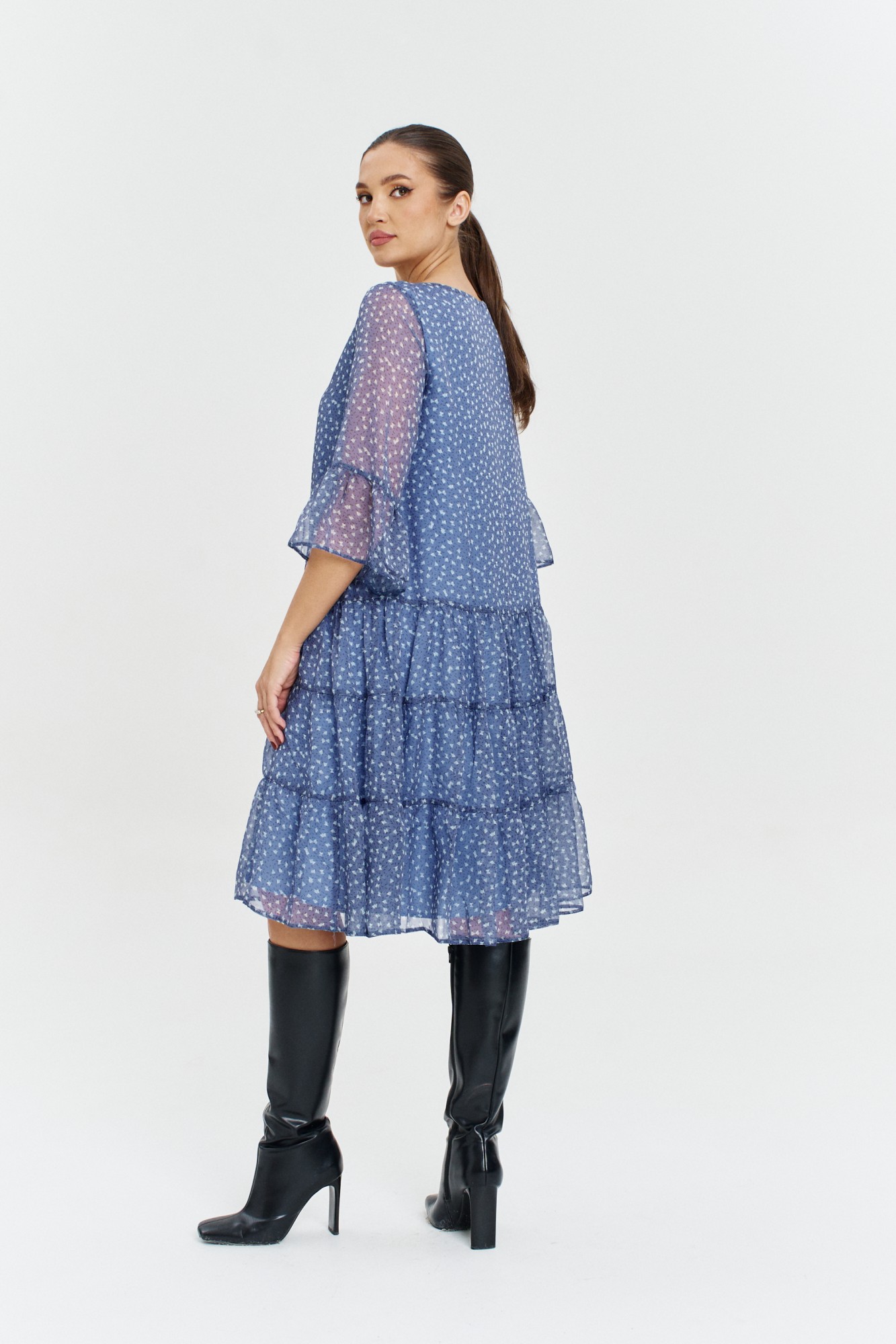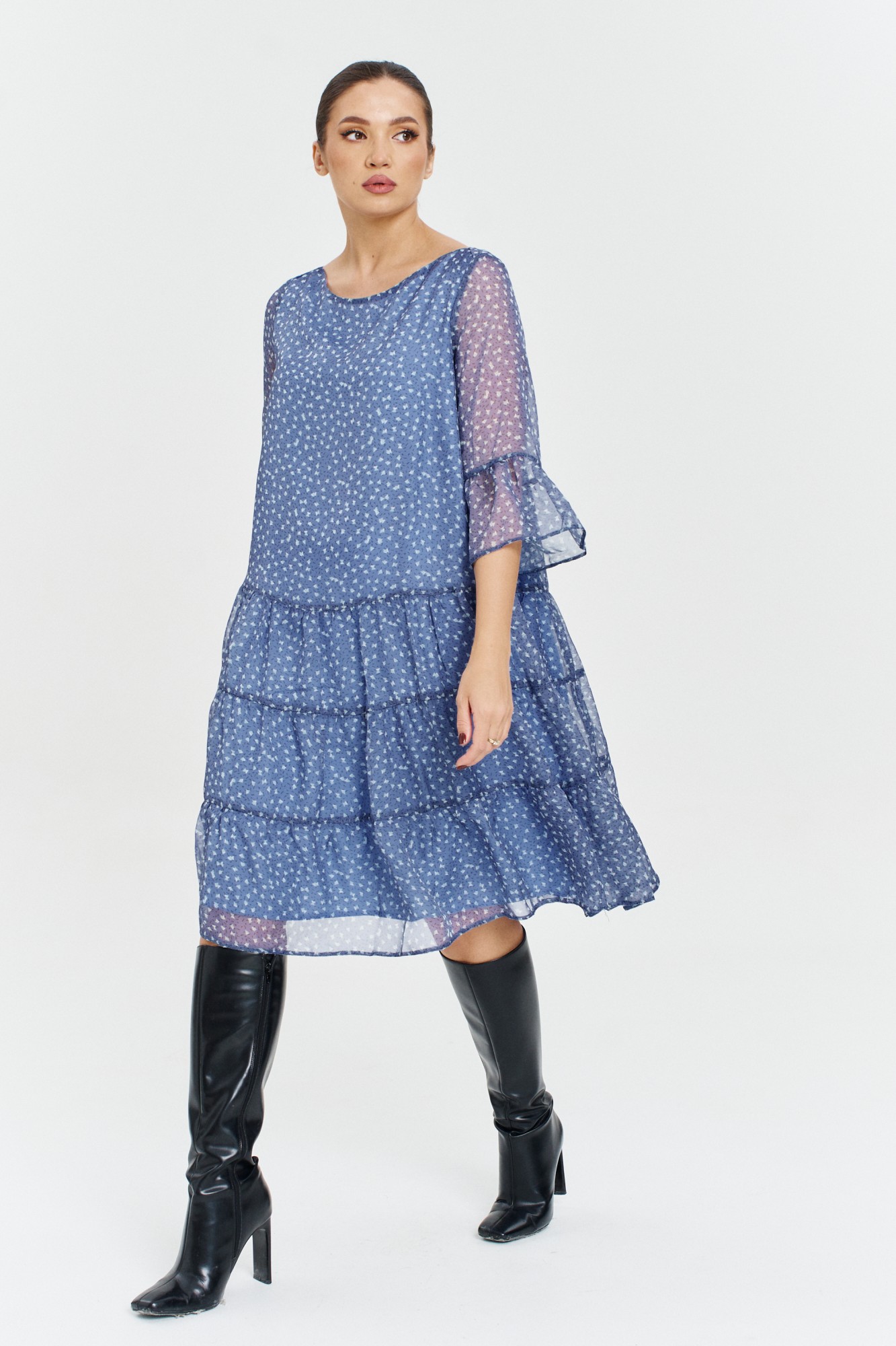 Комфортное, стильное женское платье от бренда Anastasia, идеальный выбор для офиса, на прогулку для повседневной носки и для торжества. Платье шифоновое больших размеров идеально подойдет на носку под сапоги так и под босоножки. Наше платье для женщин с размером плюс, в меру закрытое и широкое, подойдет на любую фигуру. Стройнит. Свободный крой, рукав расширенный на сборке, длина миди подойдет для высоких и невысоких дам. Идеально на работу в офис (офисное), повседневное или на торжественное событие, на выход, корпоратив. Стильная и легкая, базовая модель, горловина удобного покроя-лодочка. Такое платье женское больших размеров подойдет под любой образ: оверсайз, винтаж или молодая мама. Цветочный принт делает его подходящим нарядом для похода в театр, на юбилей бабушки, в ресторан или для фотосессии жены. Выбирайте и носите наше легкое платье женское большие размеры, как пляжное макси, праздничное, воздушное на торжество, день рождения подружки, выписку из роддома или свидание на вечер. Отличная идея - купить красивое коктейльное платье бохо скрывающее недостатки- живот. Взрослое, но не возрастное, расклешенное ниже и скромное, идеально для беременных. Подойдет для любой фигуры плюс сайз и стиля oversize. Этот изумительной красоты шифоновое платье женское большие размеры, подойдет для полных женщин. Можно носить как для дам в прекрасном возрасте. Приятных вам покупок в бренде «Анастасия» . Модель трапециевидной формы с 3-мя воланами. Рукав 3/4 длины также с воланом. Вырез горловины в форме лодочки.