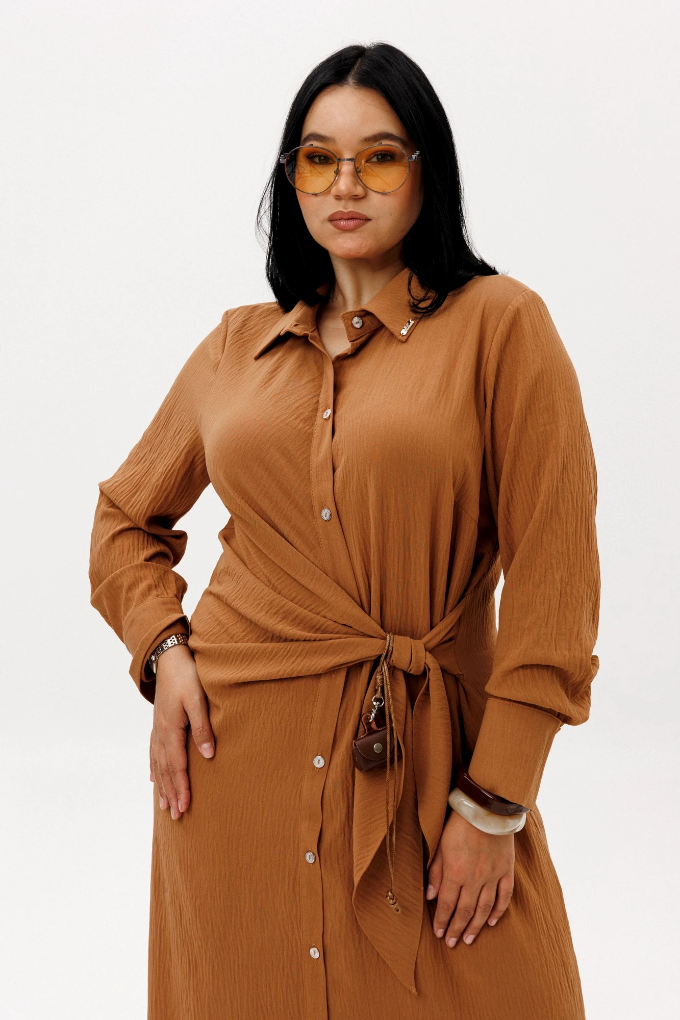 Платье рубашка от бренда «Анастасия» - создано для тех, кто ценит комфорт и элегантность. Изготовленное из турецкой ткани, оно обеспечивает мягкость и легкость при носке. Платье оригинального кроя. Полочка ассиметричная: с одной стороны идет драпировка, переходящая в пояс, со второй стороны: пояс-завязка из бокового шва. Застежка -планка на петли и пуговицы. Платье миди дополнено отложным воротником и длинными рукавами на манжете. Платье с пуговицами спереди подходит практически всем. Нарядное платье идеально для повседневной носки и стиля casual кэжуал. Повседневное платье рубашка - необычный вариант на каждый день, для прогулок, встреч в кафе и даже для работы, если позволяет дресс-код. Наряд надевают не только на повседневку, но и на фотосессию, на праздничные мероприятия – день рождения, новый год, новогодняя вечеринка. Модное платье с длинными рукавами можно комбинировать с разной обувью и одеждой для создания молодежных образов. Стильное платье идеально подойдет для повседневных выходов, особенно когда нужно добавить шарма и изящности в ваш образ. Оно также станет отличным выбором для особых случаев, таких как свадьба подруги, новогодний вечер или другие праздничные мероприятия. Универсальная длина миди и классический фасон рубашки делают его отличным выбором как для повседневного, так и для делового образа. Идеальное сочетание стиля и удобства для тех, кто ценит изысканность в каждой детали. Нам важно ваше мнение отзывы.
