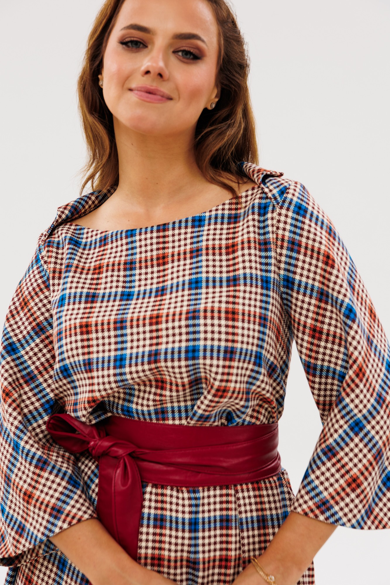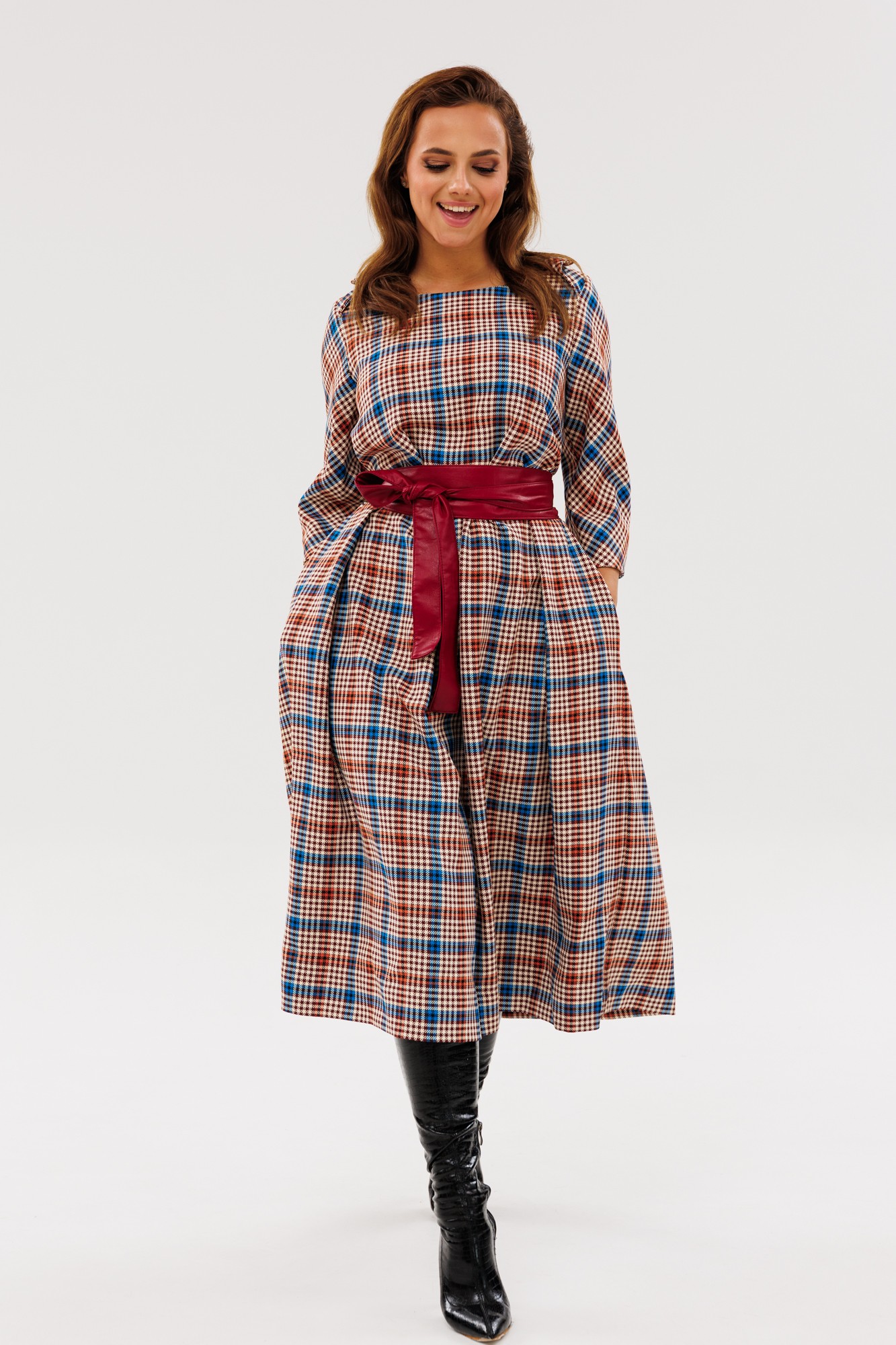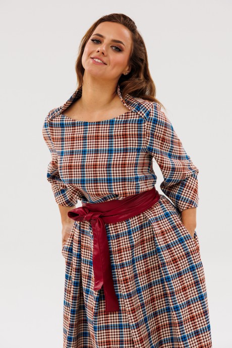 Платье Anastasia М-1136 марсала, принт клетка