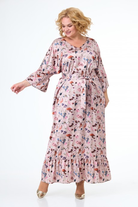 Низ платья украшает притачной волан.Дополнено съёмным поясом.