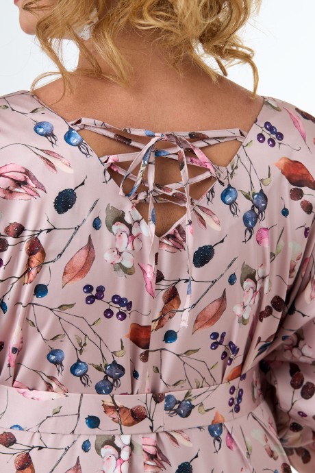 Прямой свободный силуэт с цельнокроенными рукавами с воланами по низу.Элегантный v-образный вырез горловины со шнуровкой по спинке.