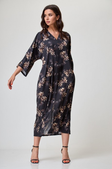 Настоящая жемчужина в мире моды - элегантное платье из шелковой принтованной ткани! Это платье идеально подчеркнет вашу индивидуальность и придаст вам неповторимый шик на любом мероприятии. С прямым силуэтом и цельнокроеными рукавами оно обеспечивает вам максимальный комфорт и свободу движений. Великолепный V-образный вырез горловины добавляет изящества и подчеркивает вашу шею и декольте. Перед платья украшен средним швом и изящным разрезом, который придает изюминку этому шедевру моды. И чтобы подчеркнуть вашу талию и добавить акцент в образе, платье дополнено съемным кожаным ремнем.