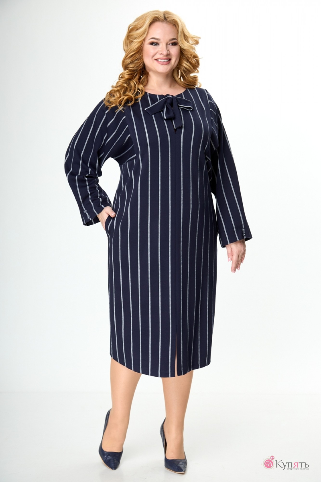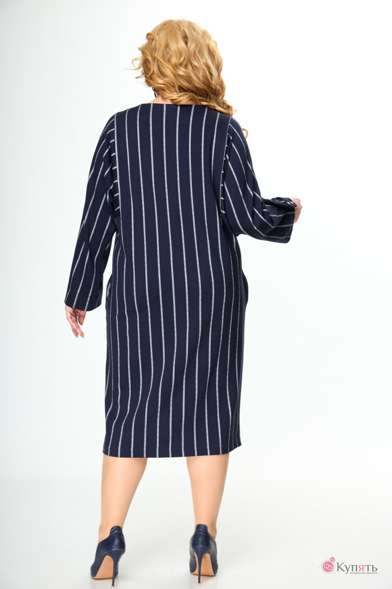 Прямой силуэт, заниженная квадратная линия проймы-особенность модели платья. В среднем шве переда разрезы- от линии округлой горловины и от линии низа. Рукав длинный, расширенный со складкой и пуговицами по низу. В боковых швах функциональные карманы. Дополняет образ завязывающиеся детали вверху.