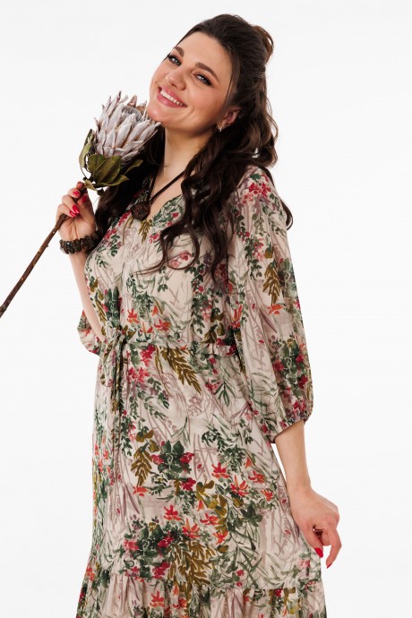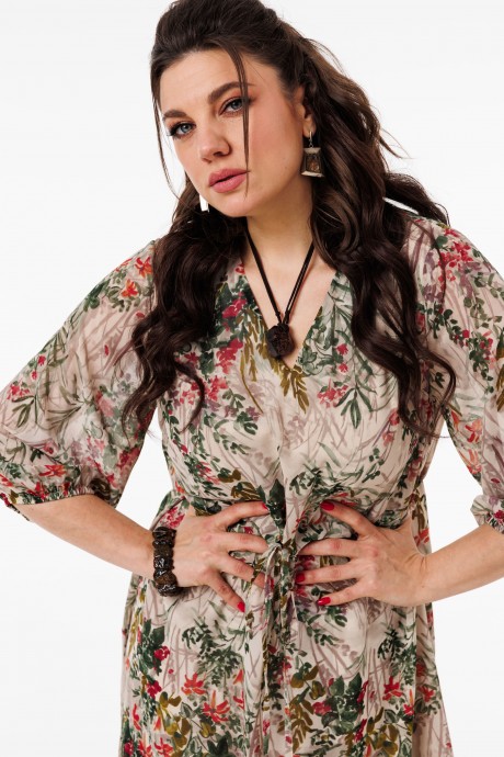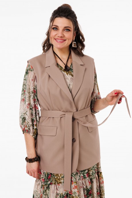 Погрузитесь в мир элегантности и утонченности с этим потрясающим платьем А-силуэта. Его изысканный V-образный вырез нежно обрамляет шею, придавая образу особую грацию и шарм. Рукава длиной 3/4, выполненные с легким расширением к низу, добавляют воздушности и романтики, а резинка на рукавах обеспечивает комфорт и свободу движений. Завышенная линия талии подчеркивает вашу фигуру, создавая эффект удлиненных ног и придавая силуэту современный вид. Умело скроенная кулиска позволяет легко регулировать объем в области талии, что делает платье не только стильным, но и удобным для любой фигуры. Подкладка из мягкого материала обеспечивает комфорт при носке, предотвращая просвечивание и создавая идеальную структуру. А волан по низу платья добавляет игривости и динамичности, придавая вашему образу легкость и романтичность. Это платье от Анелли станет вашим верным спутником на любом мероприятии, подчеркивая вашу индивидуальность и стиль. Ощутите себя королевой в этом великолепном наряде, который сочетает в себе красоту, комфорт и изящество. На модели в платье цвета «рябина» жилет из эко кожи 1502.1 и жилет 1502.