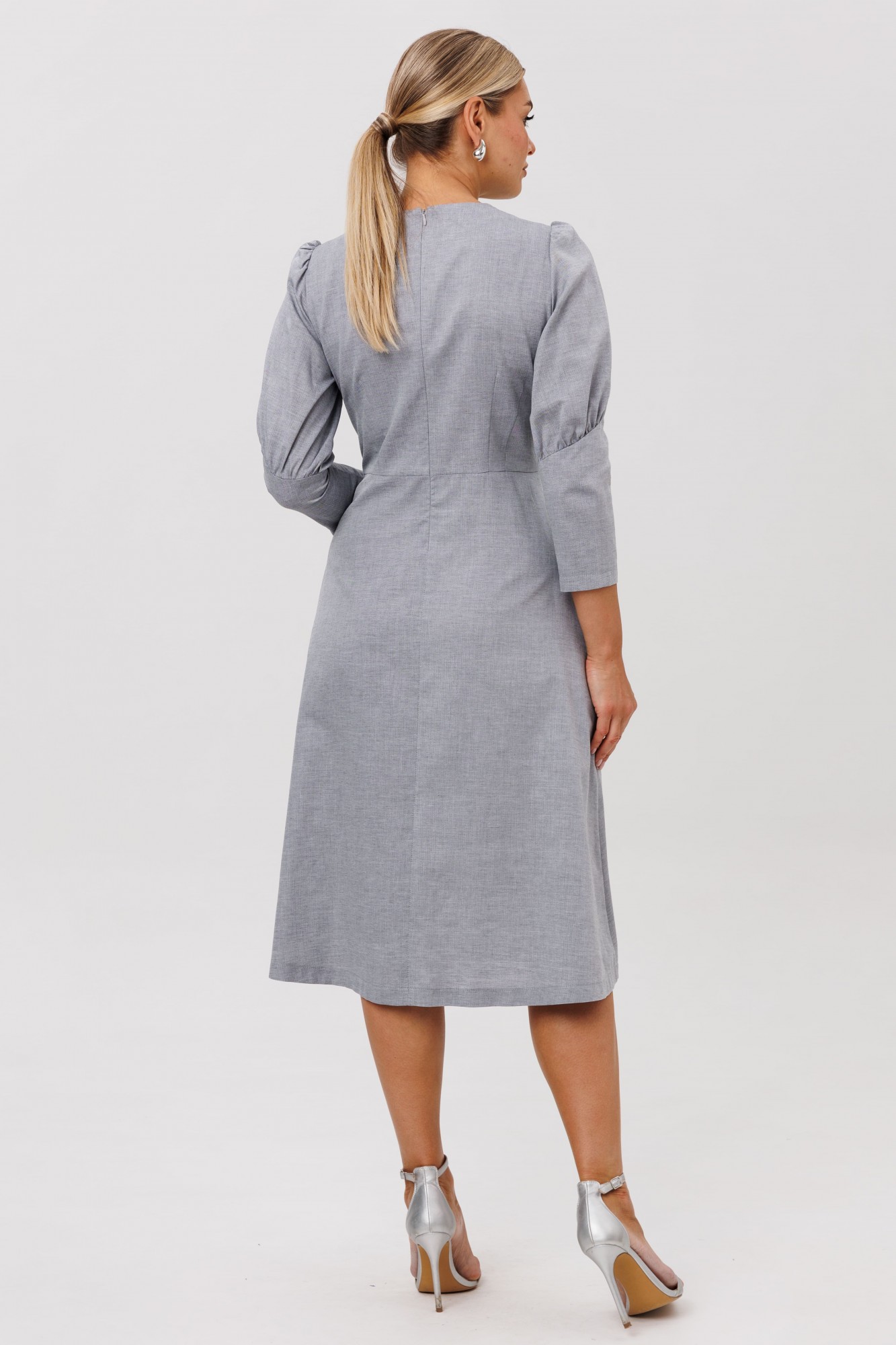 Застежка-капля по центру переда с навесной петлей придает платью особый шарм, в то время как потайная молния на спинке обеспечивает идеальную посадку по фигуре. Это по-настоящему красивое и универсальное платье, которое станет изысканным выбором для любого дня.