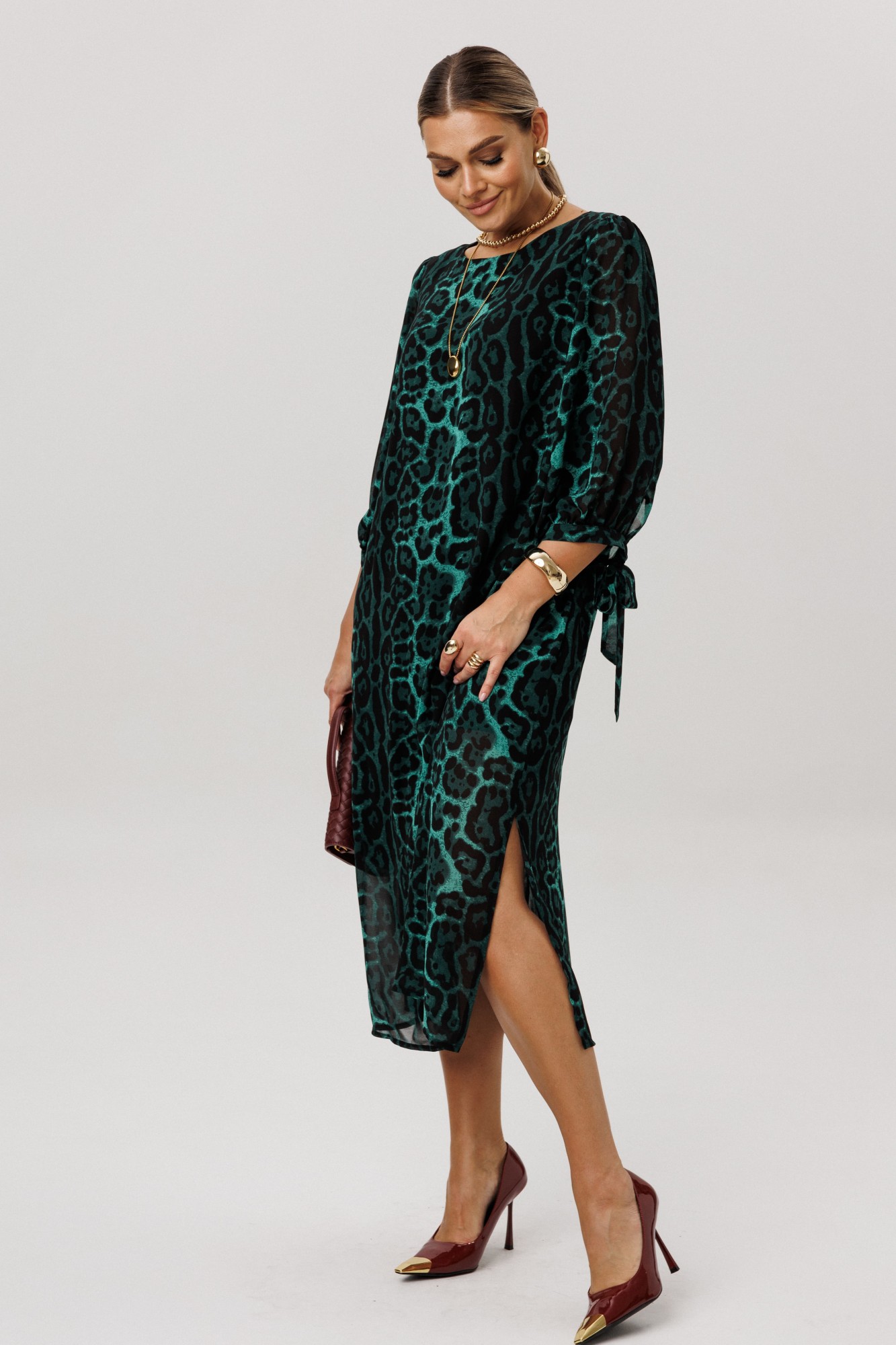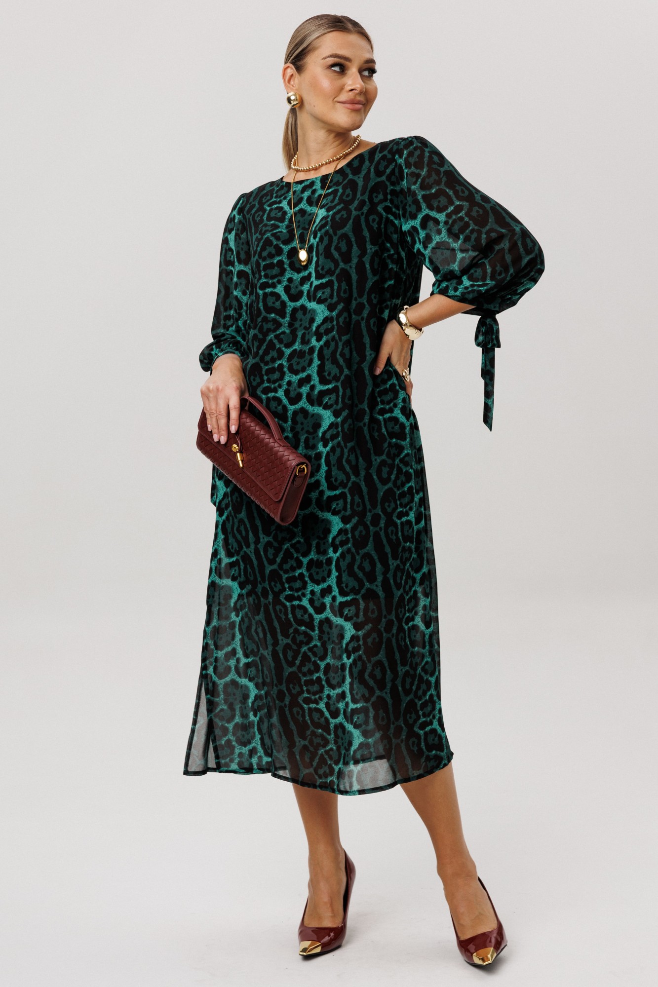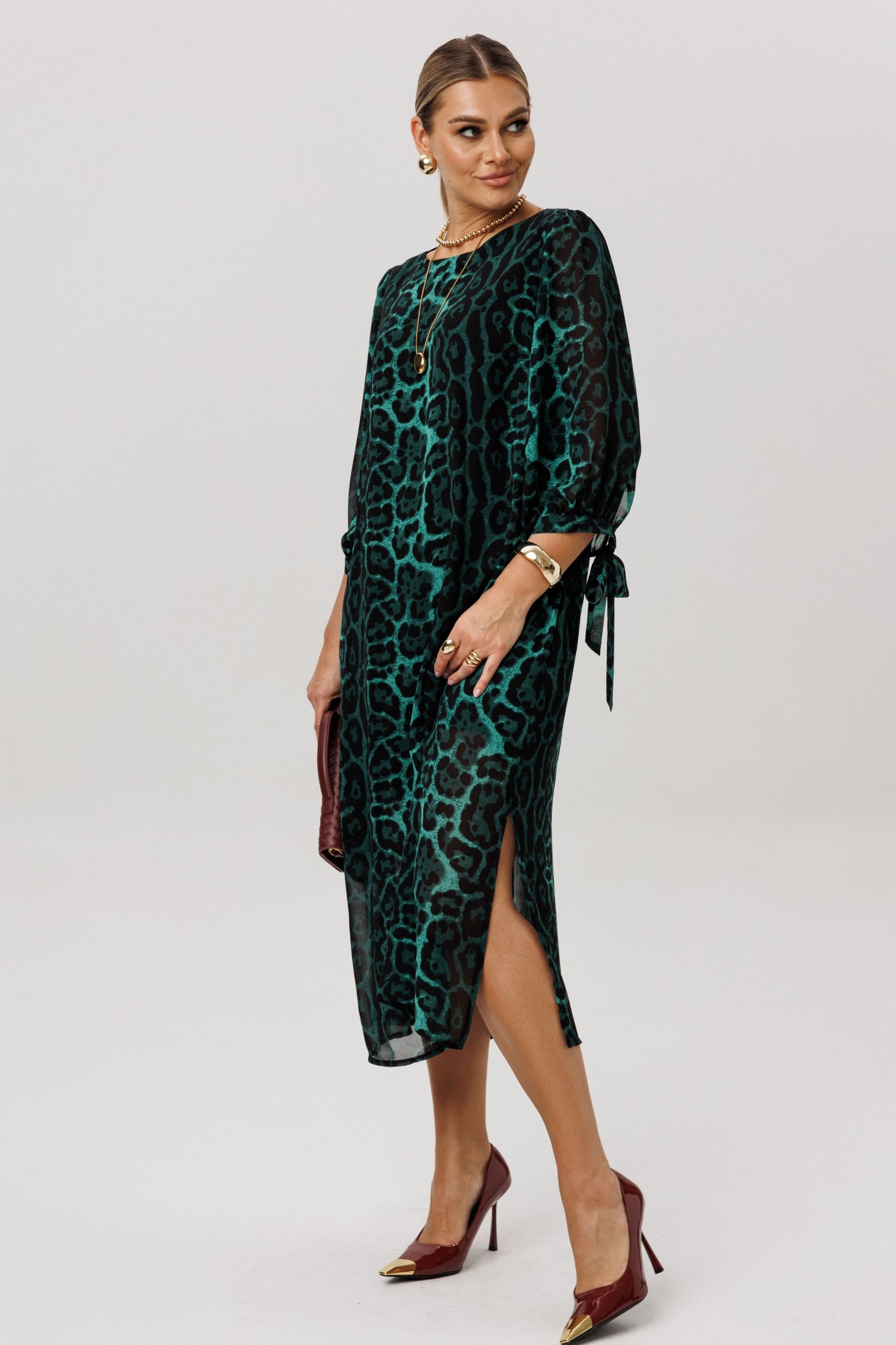 Нежная текстура материала в сочетании с дерзким принтом создаёт ощущение лёгкости, воздушности и одновременно страсти, что делает его незаменимым для особых случаев.