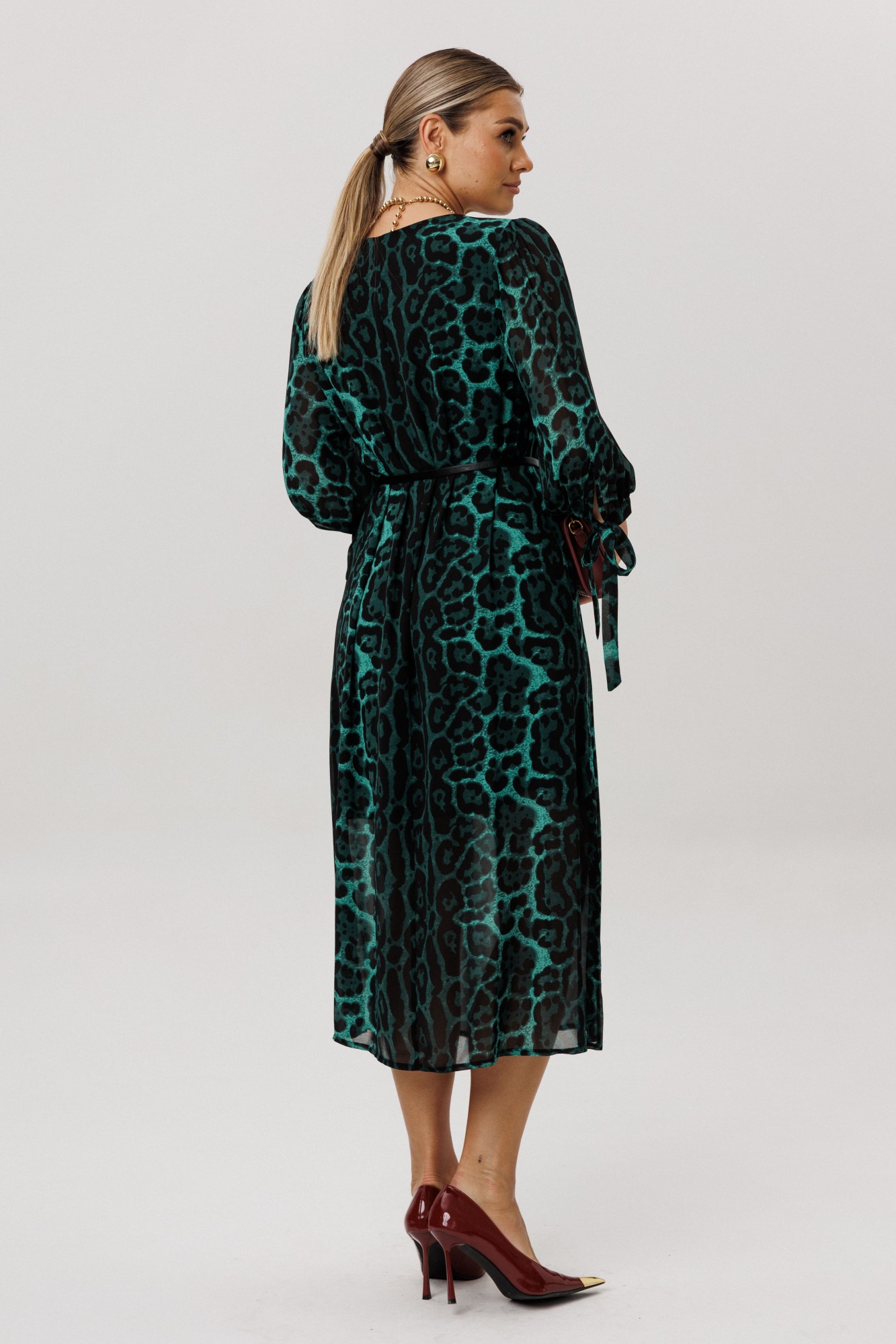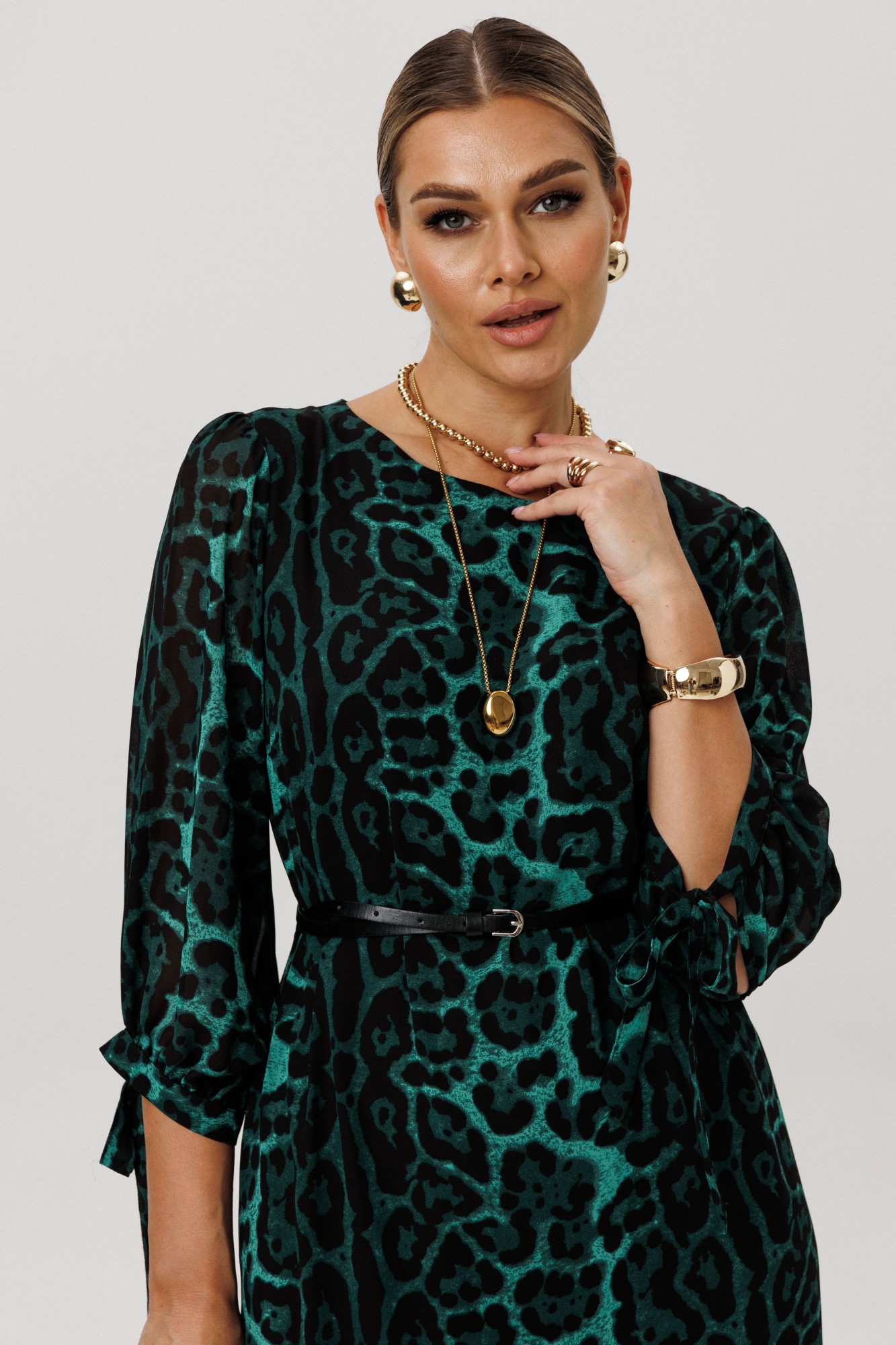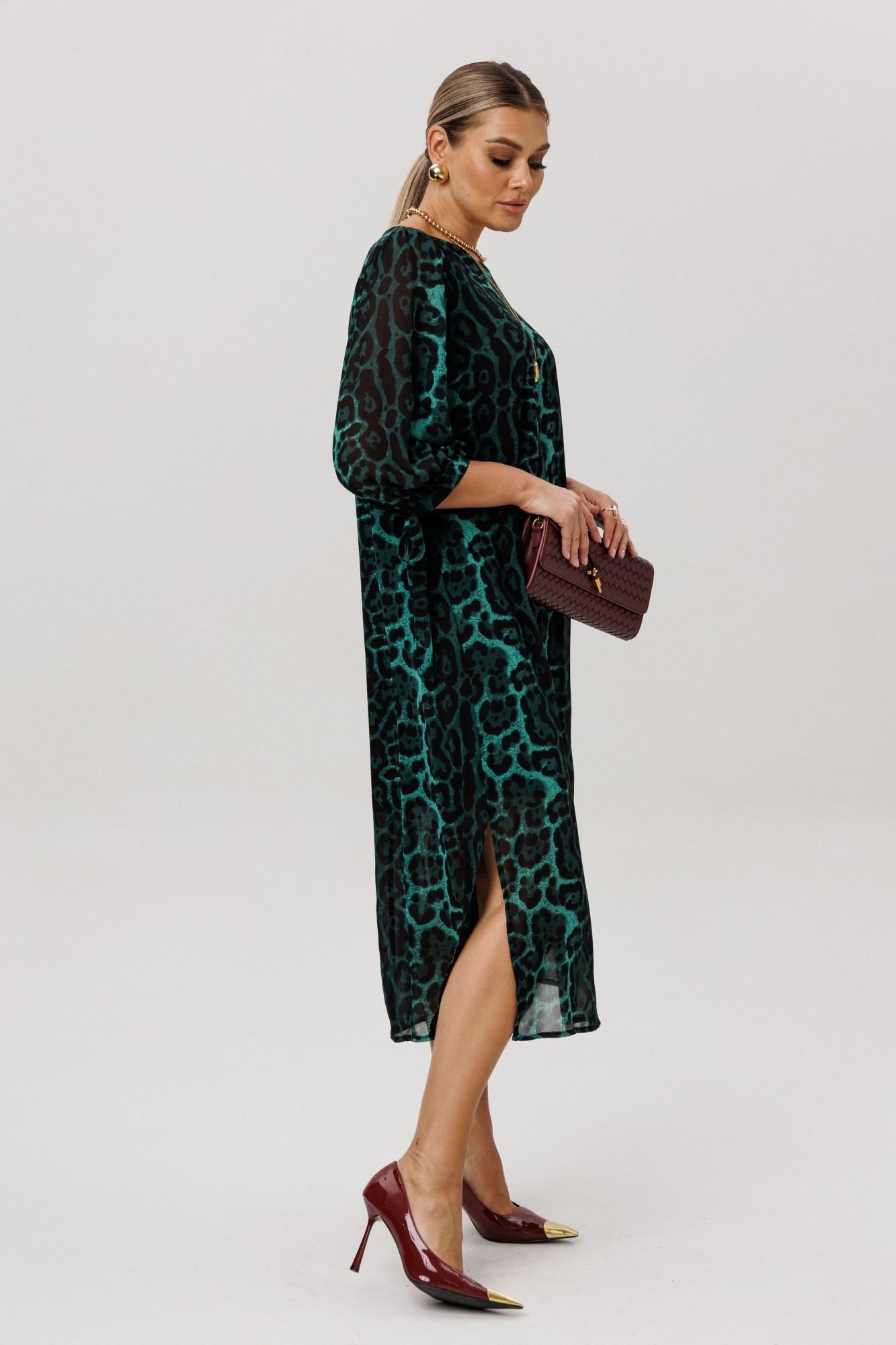 Нежная текстура материала в сочетании с дерзким принтом создаёт ощущение лёгкости, воздушности и одновременно страсти, что делает его незаменимым для особых случаев.