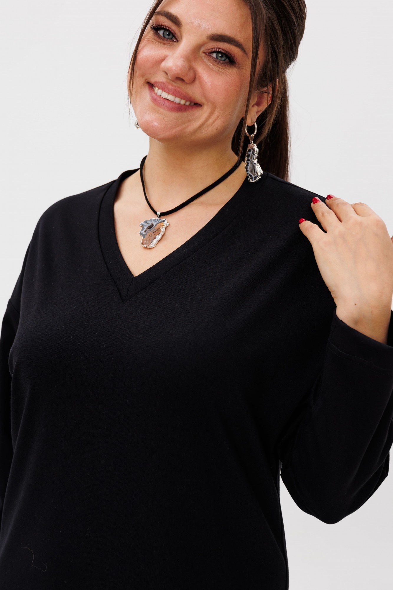 Уютное платье с V-образным вырезом и спущенным плечом — выбор для тех, кто ценит стиль и комфорт в каждой детали.