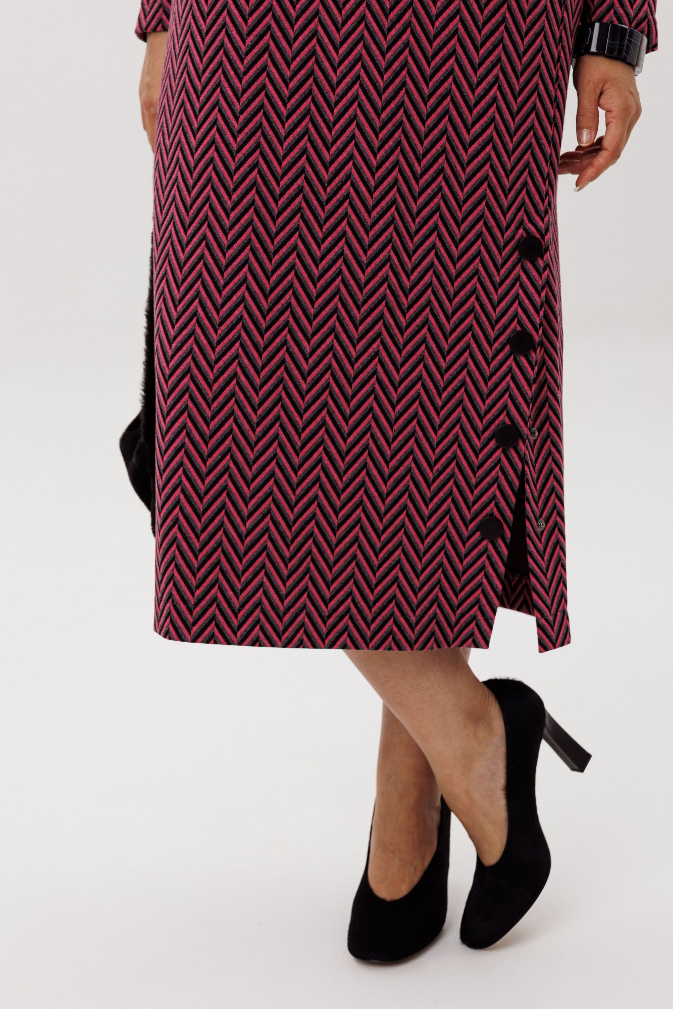 Элегантное трикотажное платье от Анелли, прямого силуэта, созданное для комфорта и уверенности в повседневной жизни. Изготовлено из мягкой и приятной к телу ткани, которая дарит ощущение лёгкости и тепла. Втачной рукав придаёт образу классический акцент, делая платье универсальным и стильным выбором на каждый день. Особенность модели — стильная шлица на кнопках, расположенная сбоку, которая не только добавляет оригинальности, но и позволяет варьировать образ: расстегнув несколько кнопок, можно создать лёгкий, игривый акцент. В боковых швах предусмотрены карманы, что делает платье ещё более практичным и удобным. Этот повседневный наряд отлично подойдёт для самых разных ситуаций — от утренней прогулки до встреч с друзьями или походов в кафе. Яркий и необычный принт привлекает внимание и выделяет ваш образ, подчеркивая вашу индивидуальность. В таком платье вы всегда будете выглядеть стильно и чувствовать себя уверенно, сохраняя при этом комфорт и лёгкость движений. На модели в платье цвета «рябиновая волна» жакет 1524.2.