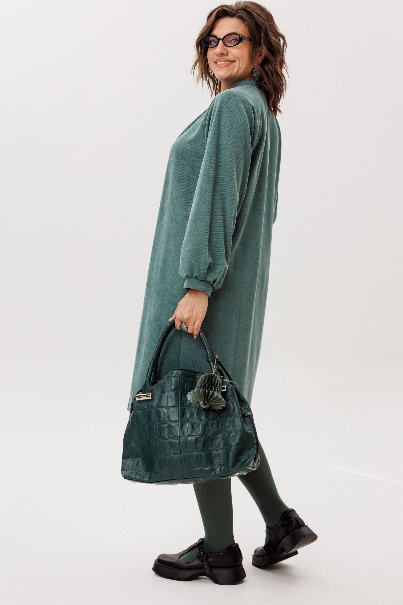 Универсальный фасон, дополненный скрытыми карманами и классической застежкой, дарит ощущение лёгкости и комфорта. Спокойный и глубокий зеленый цвет «анахата» наполняет образ свежестью и умиротворением. Платье легко принять как есть, в его струящейся свободе, или же тонким поясом мягко обозначить талию, создавая идеальный образ для любого дня.